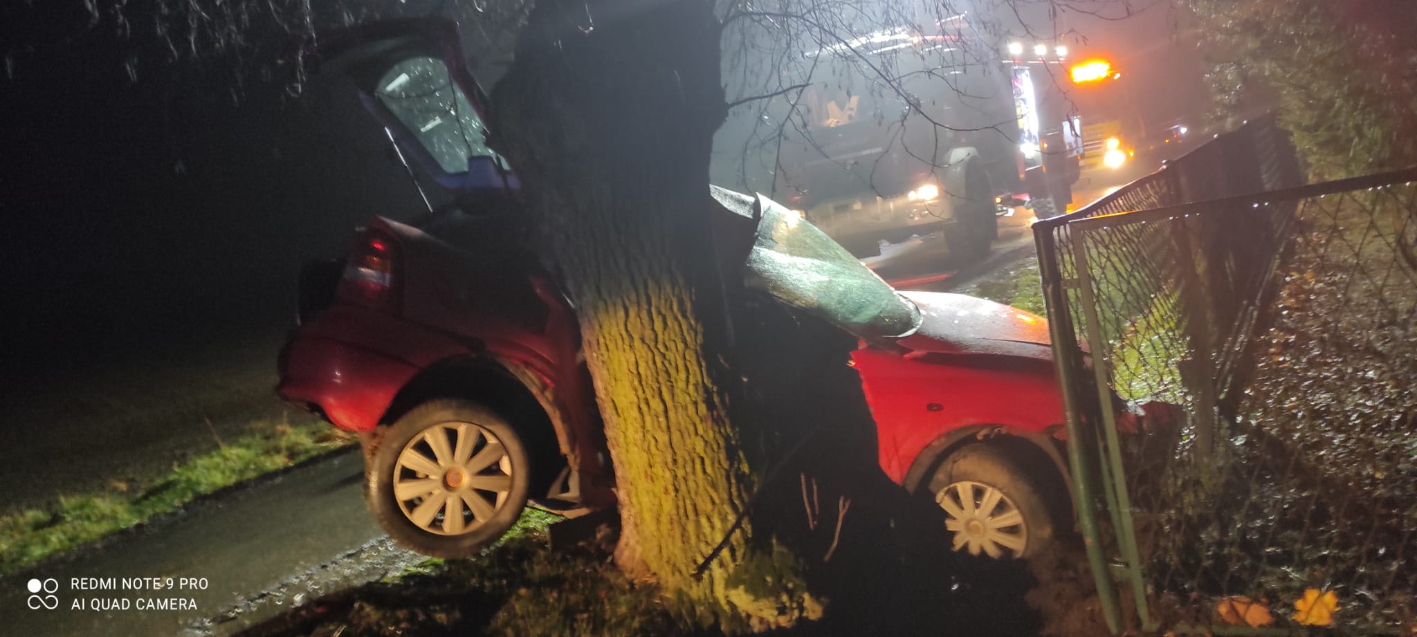 Przed godziną 22:00 do Stanowiska Kierowania Komendanta Powiatowego w Cieszynie wpłynęło zgłoszenie dotyczące wypadku samochodu osobowego, który w miejscowości Chybie na ul. Świerkowej miał wypaść z drogi.