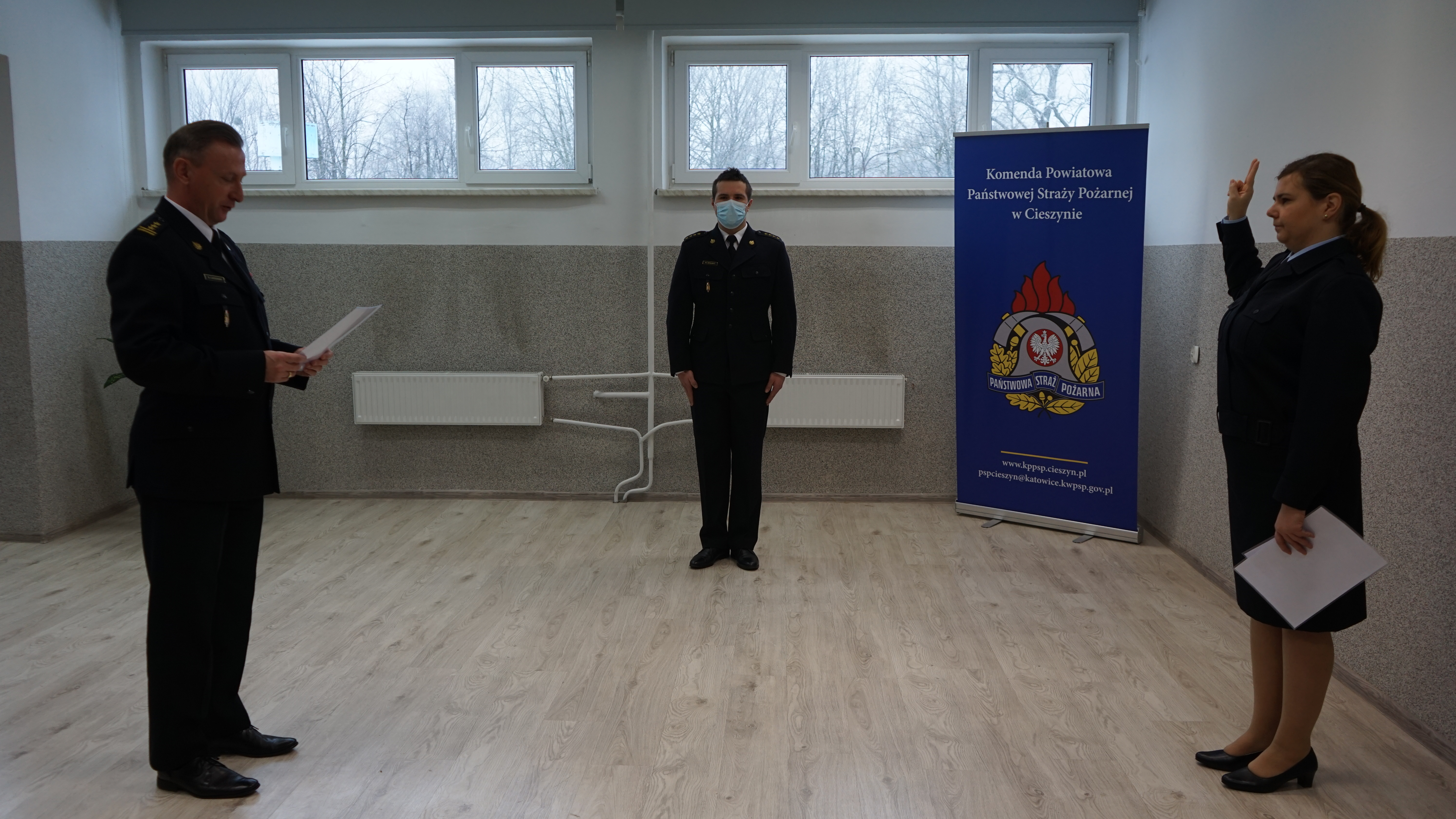 W dniu 10.12. br. Komendant Powiatowy PSP w Cieszynie st. bryg. Damian Legierski wraz z przedstawicielami Komendy Powiatowej PSP w Cieszynie, oficjalnie powitał w szeregach funkcjonariuszy PSP str. Agnieszkę Czech, która złożyła uroczyste ślubowanie i z dniem 15 października rozpoczęła służbę w KP PSP.