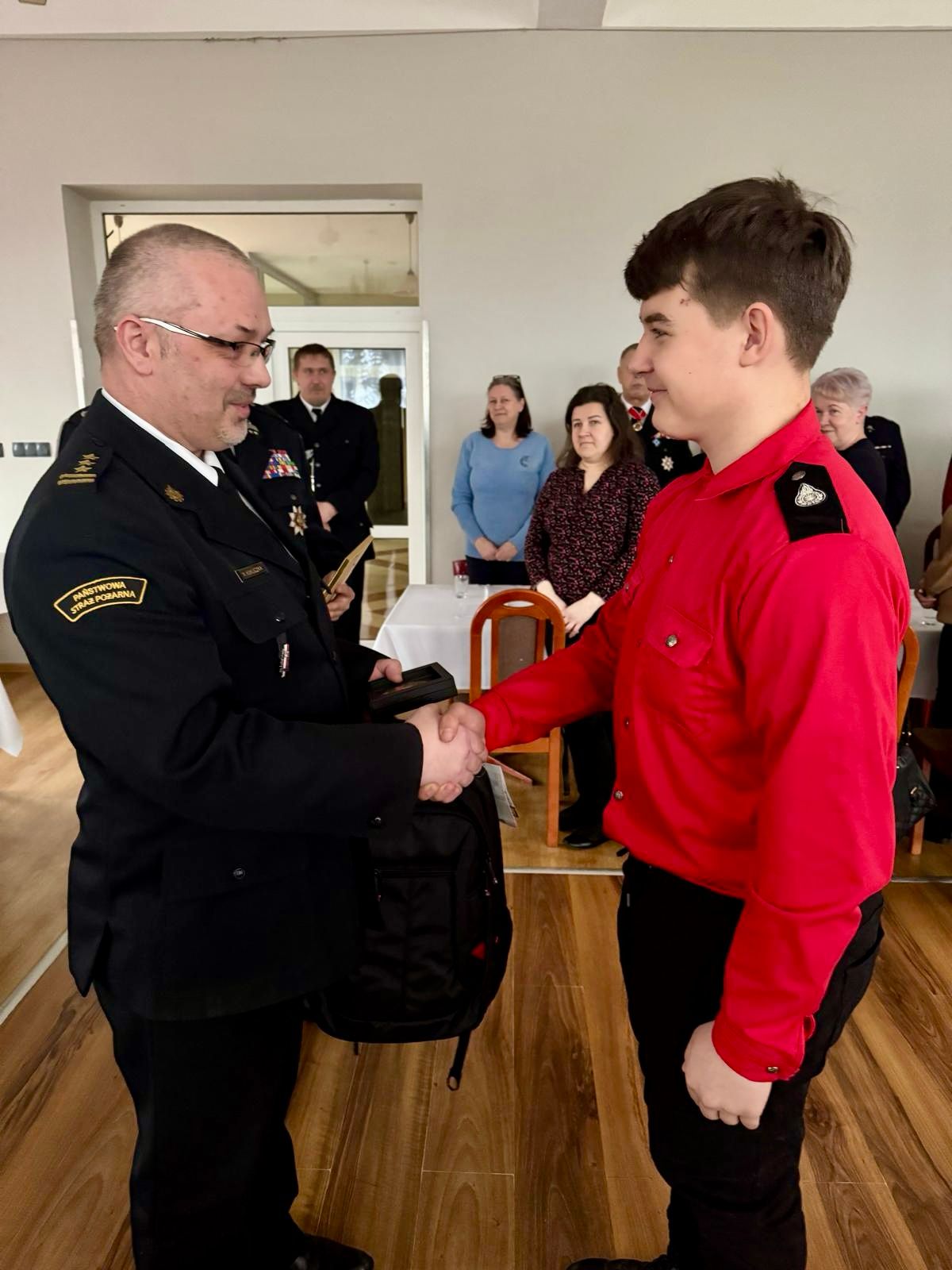 Uroczyste wręczenie odznaczenia Komendanta Głównego Państowej Straży Pożarnej "Iuvenis Forti"