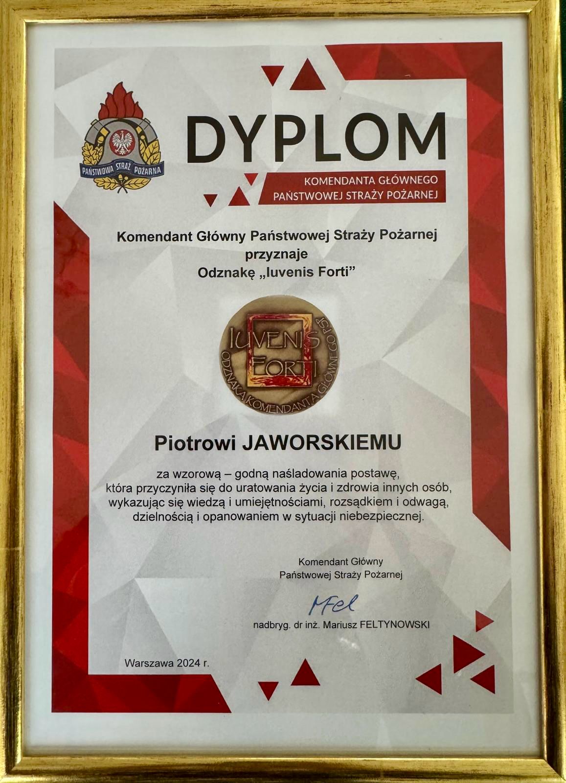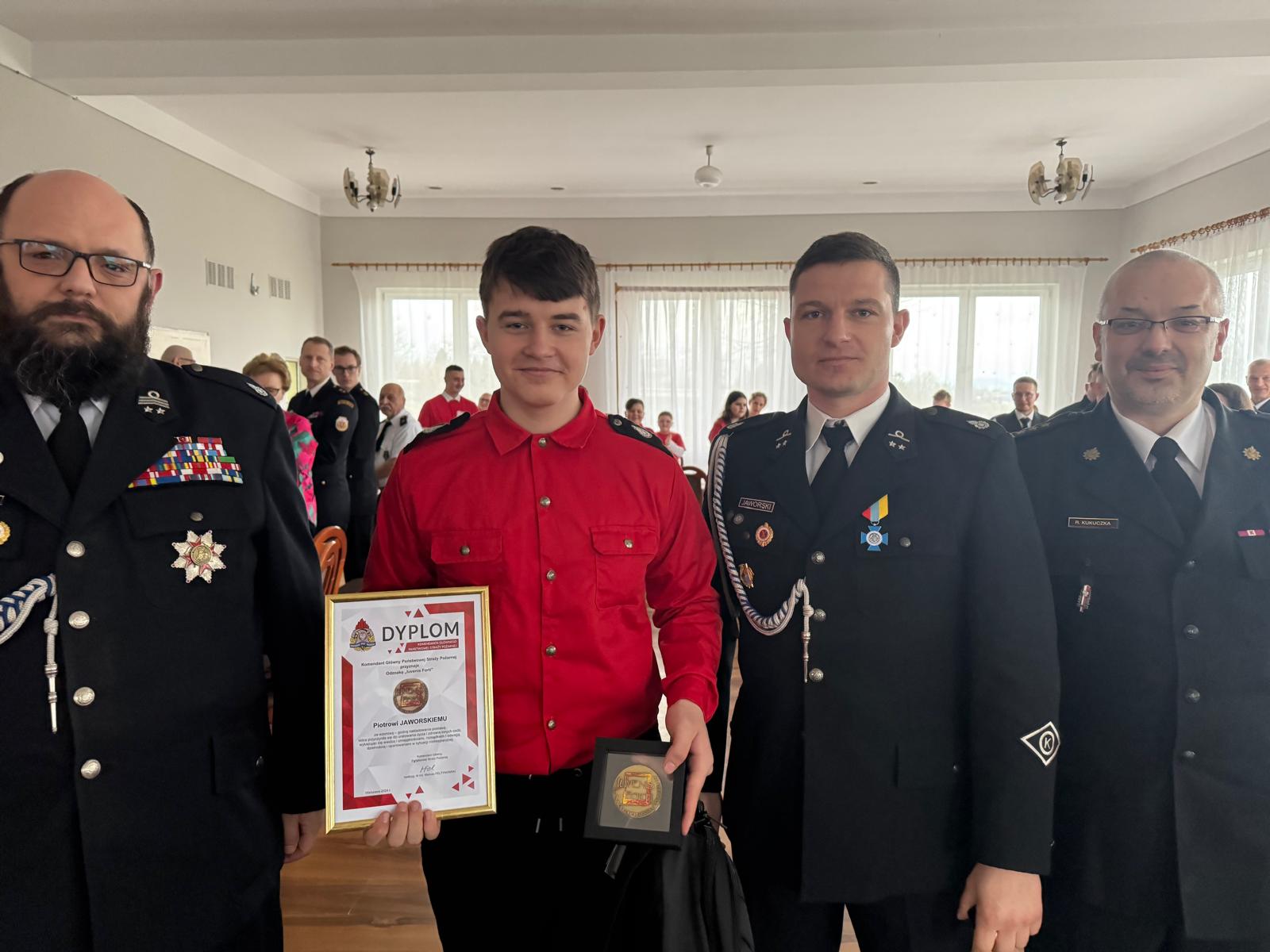 Komendant Główny PSP ustanowił odznakę „Iuvenis Forti” jako wyraz uznania dla dzieci i młodzieży do 18. roku życia, które swoją wzorową, godną naśladowania postawą przyczyniły się do uratowania życia i zdrowia innych osób. Odznaczenie to jest symbolem odwagi, rozsądku oraz umiejętności działania w sytuacjach kryzysowych. Wyróżnienie Piotra to dowód na to, że pomoc drugiemu człowiekowi jest dla niego najwyższą wartością.
