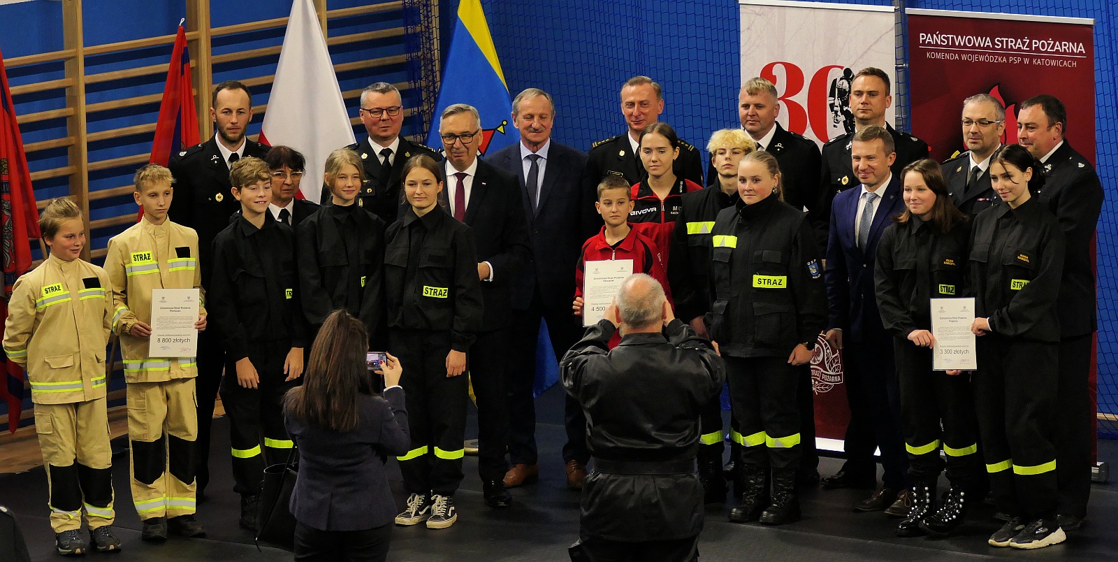 Uroczystość wręczenia promes dotacji celowej dla Ochotniczych Straży Pożarnych na zakup sprzętu dla członków Młodzieżowych Drużyn Pożarniczych z terenu powiatu cieszyńskiego