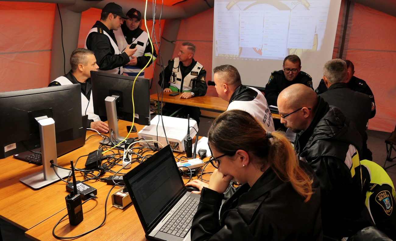 Wspólne ćwiczenia służb powiatu cieszyńskiego pk. "Powódz"