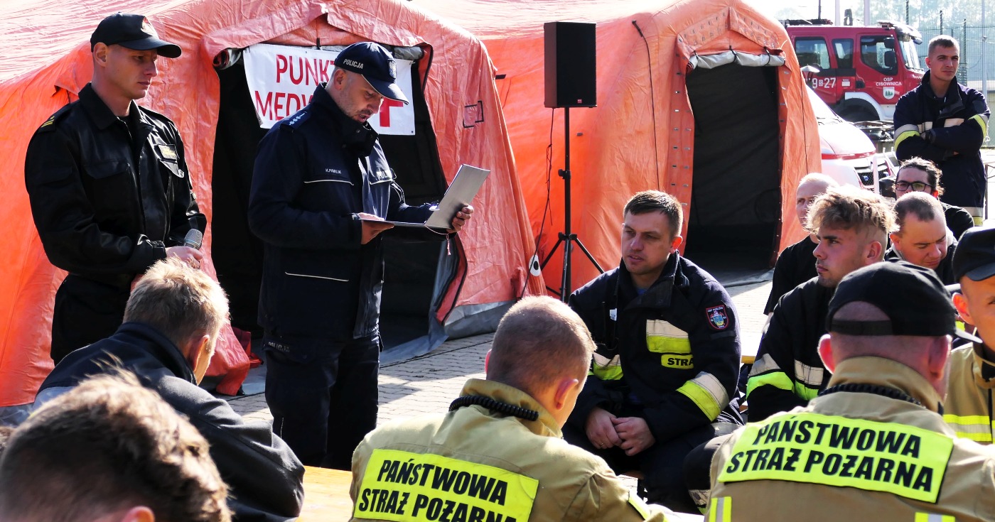 Na zakończenie działań głos zabrali Burmistrz Miasta Cieszyna Pani Gabriela Staszkiewicz oraz Komendant Powiatowy PSP w Cieszynie st. bryg. Damian Legierski, którzy podziękowali wszystkim uczestniczącym za włożony w ćwiczenia trud i poświęcony czas.