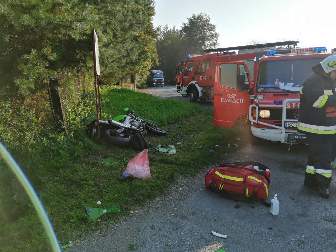 Wczoraj tj. 8 września w godzinach porannych doszło do niebezpiecznego zdarzenia drogowego z udziałem samochodu osobowego oraz motocykla na skrzyżowaniu DW 938 w miejscowości Hażlach.