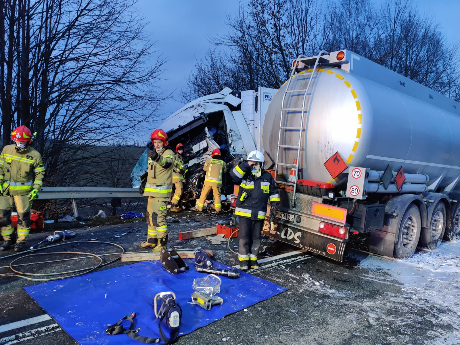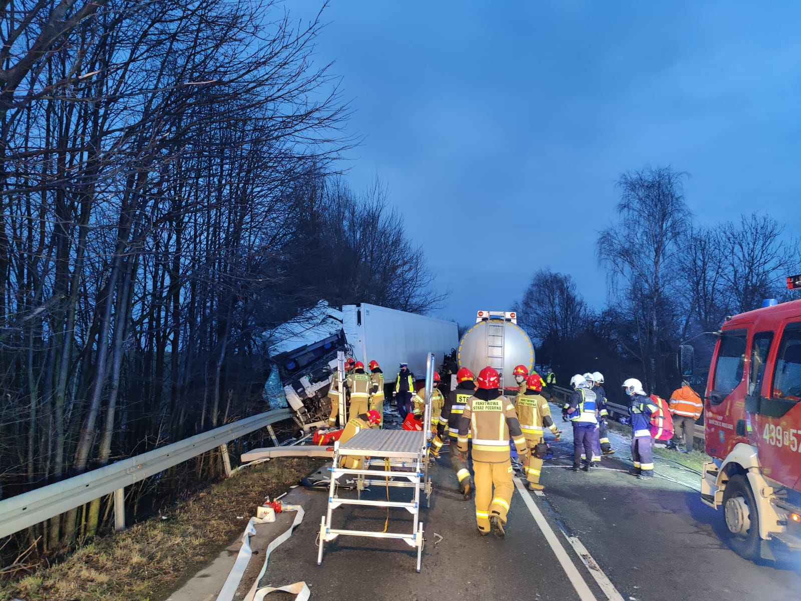 Wypadek zestawów ciężarowych w Kończycach Wielkich