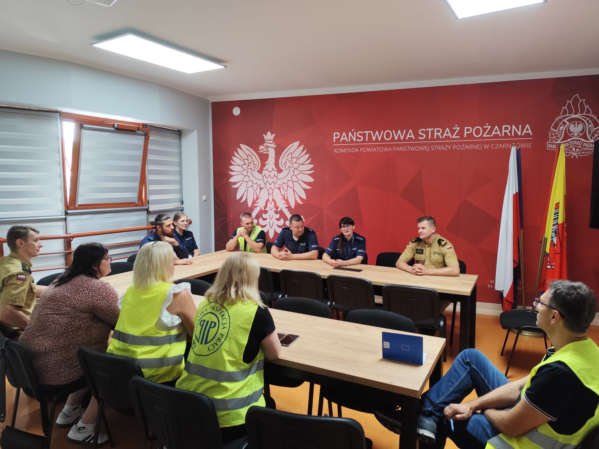 28.07.2025 r. w trosce o bezpieczeństwo mieszkańców wsi i rolników podczas rozpoczynającego się intensywnego okresu żniw płodów rolnych, funkcjonariusze z JRG PSP Nr 1 w Czarnkowie wspólnie z funkcjonariuszami Policji z KPP w Czarnkowie jak i przedstawicielami Państwowej Inspekcji Pracy w Pile oraz placówki terenowej Kasy Rolniczego Ubezpieczenia Społecznego w Czarnkowie, przeprowadzili akcję profilaktyczną na terenie wybiórczych miejscowości w powiecie czarnkowsko-trzcianeckim. Działania zostały poprzedzone spotkaniem organizacyjnym z Komendantem Powiatowym PSP w Czarnkowie mł. bryg. Michałem Macyszynem, na okoliczność wzajemnej współpracy z innymi służbami i instytucjami. Podczas spotkania Komendant przekazał funkcjonariuszom i przedstawicielom instytucji kluczowe i istotne założenia prowadzonej profilaktyki, a zarazem podziękował za wspólne zaangażowanie w tego rodzaju przedsięwzięciach.