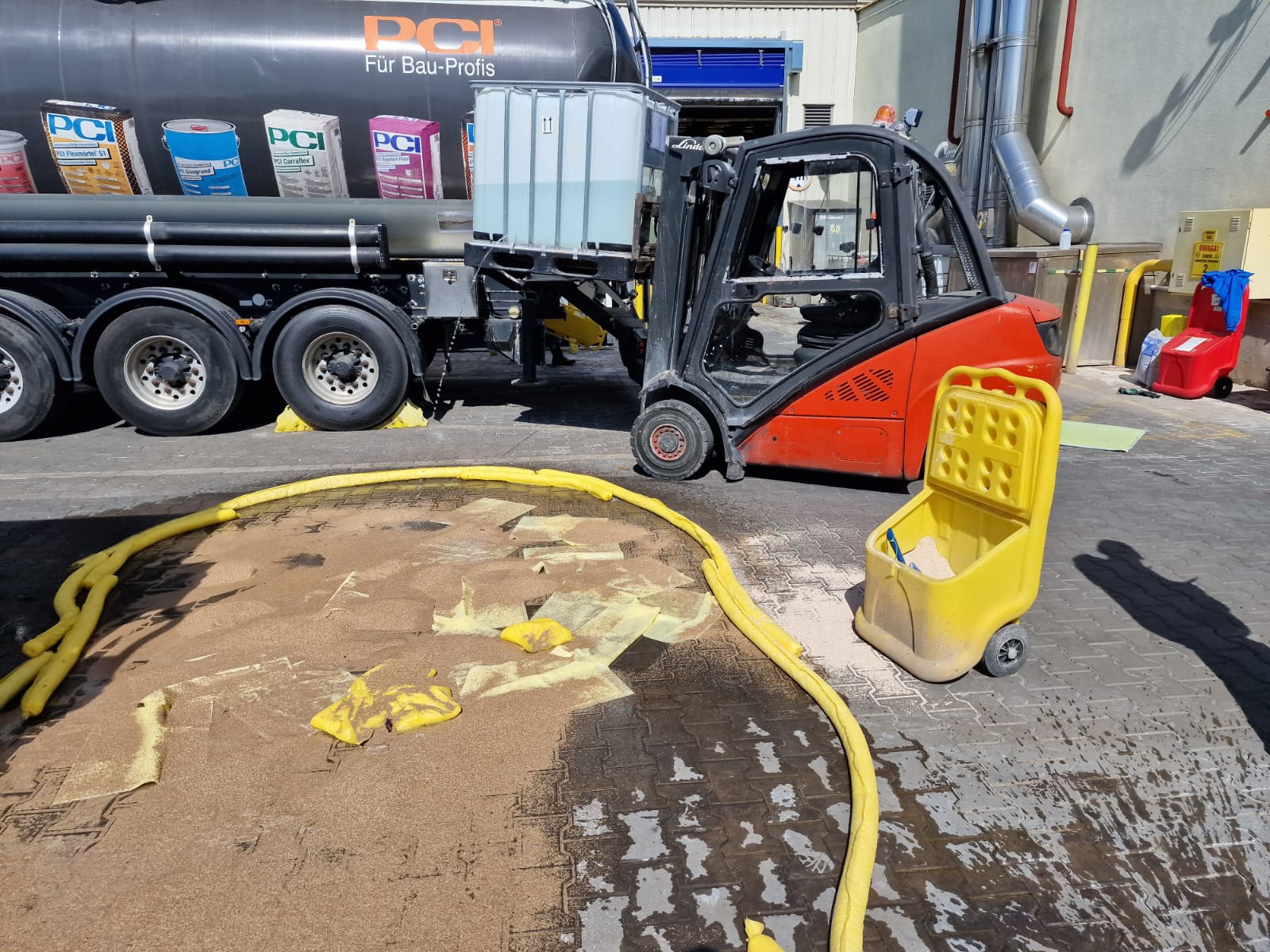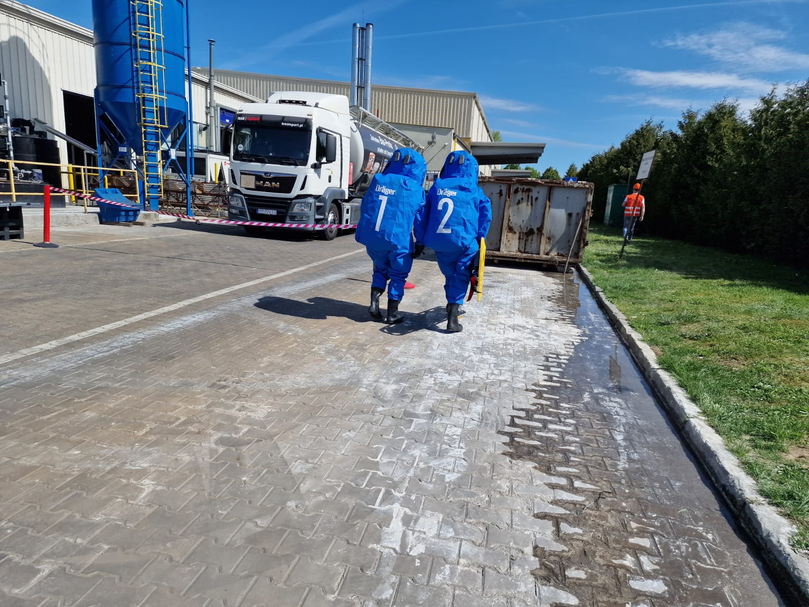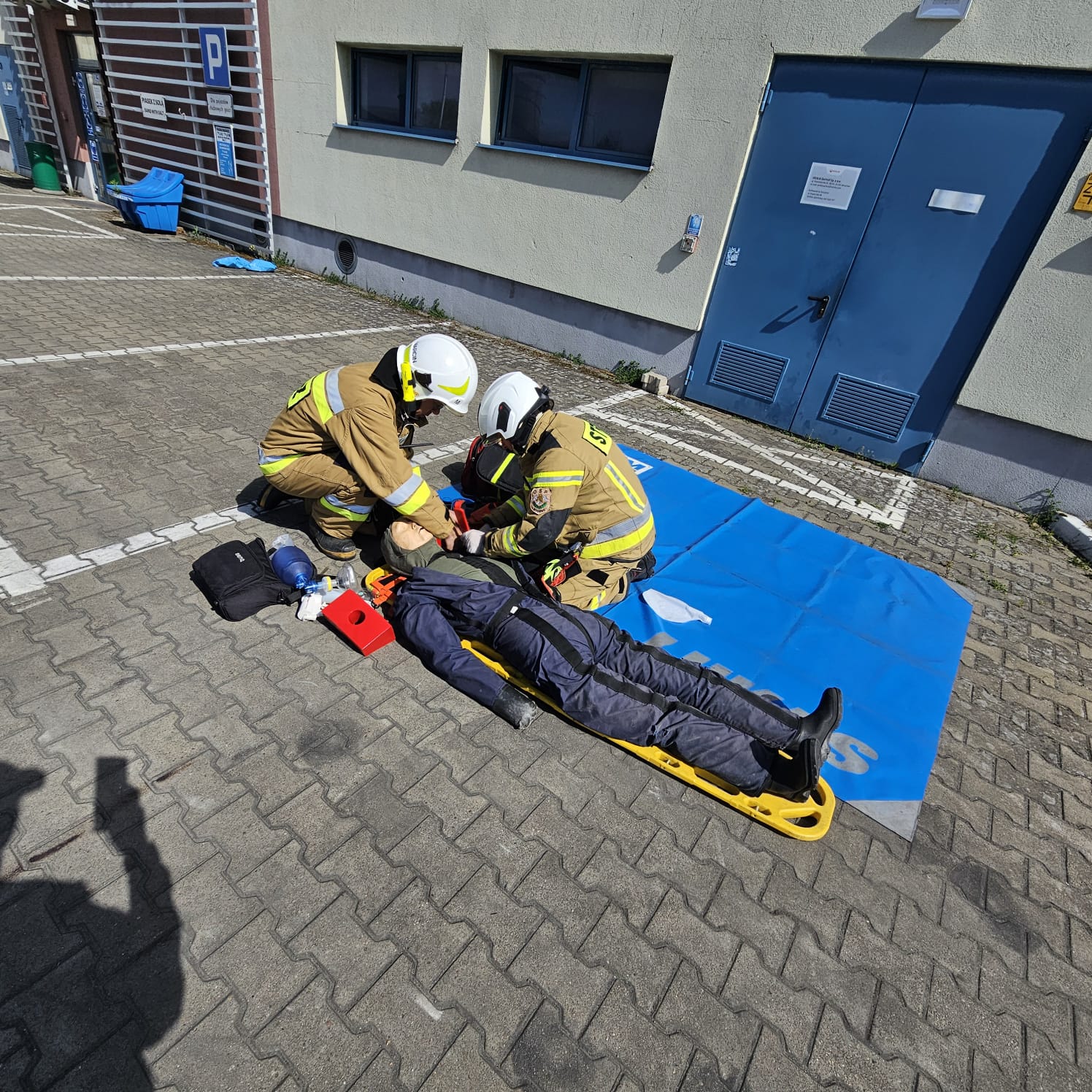W dniach 28-30 kwietnia 2025 roku odbył się cykl ćwiczeń połączonych z rozpoznaniem operacyjnym obiektów hali anodowni w zakładzie produkcyjnym Hydro Extrusion Poland w Trzciance. W ćwiczeniach brali udział strażacy z Jednostki Ratowniczo-Gaśniczej PSP Nr 2 z Trzcianki; Specjalistycznej Grupy Ratownictwa Chemiczno-Ekologicznego wchodzącej w skład struktury organizacyjnej JRG PSP Nr 1 w Pile oraz druhowie z jednostek Ochotniczych Straży Pożarnych z terenu gm. Trzcianka, w tym m.in. z OSP KSRG w Białej, OSP w Stobnie oraz OSP w Niekursku. W pierwszym dniu ćwiczeń scenariusz przewidywał udzielenie pomocy i ewakuację osobie, która została przejechana przez wózek widłowy w hali magazynowej. W kolejnym dniu zmiana służbowa zmagała się z udzieleniem KPP i ewakuacją z wysokości pracownika, który doznał zawału serca podczas prac konserwacyjnych na dachu obiektu. W ostatnim dniu doskonalenia, plan przewidywał uszkodzenie płaszcza cysterny przez jadący wózek widłowy. W wyniku tego zdarzenia doszło do wycieku substancji żrącej, a poszkodowanych zostało 5 osób. Po przeprowadzeniu ewakuacji przez osobę odpowiedzialną, zadaniem ratowników było zlokalizowanie wycieku, ewakuacja ze strefy zagrożenia osób poszkodowanych oraz udzielenie im kwalifikowanej pierwszej pomocy. Następnie wraz z ratownikami z SGRChem-Eko dalsze działania polegały na uszczelnieniu rozerwanego płaszcza cysterny oraz neutralizacji rozlanej substancji. Każdego dnia po zakończeniu ćwiczeń strażacy przeprowadzili rozpoznania operacyjne obiektu, w trakcie których pozyskiwali istotne informacje na temat procesu technologicznego, oraz ewentualnymi zagrożeniami występującymi na terenie zakładu.