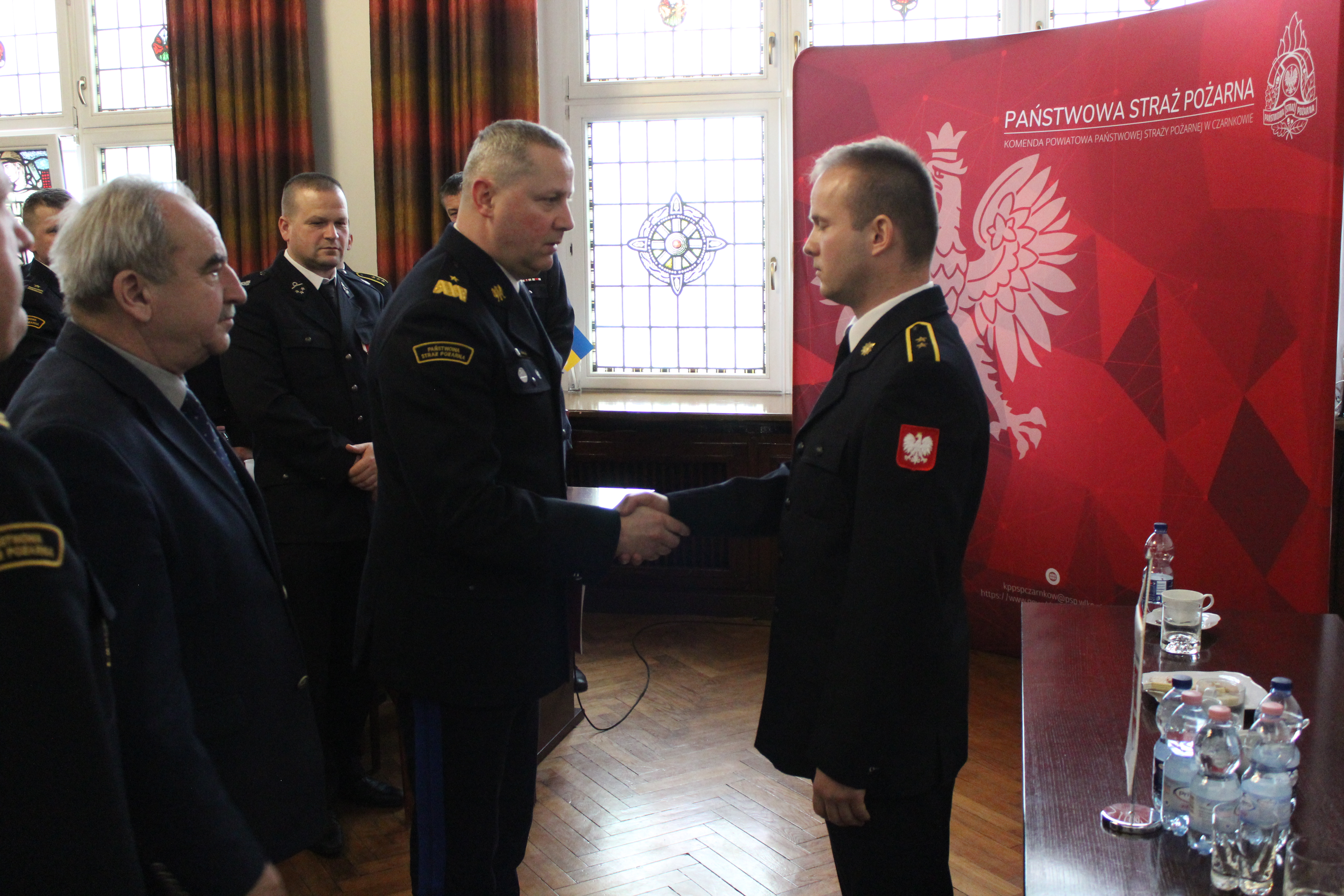 Na zakończenie Narady w dowód uznania za ofiarną i profesjonalną postawę Wielkopolski Komendant Wojewódzki PSP wręczył list gratulacyjny st. asp. Przemysławowi Grzybowskiemu. Strażak ten 24.12.2022 r. udzielił pomocy nieprzytomnemu sąsiadowi, podjął resuscytację krążeniowo-oddechową, powiadomił służby, a następnie wspierał działania Zespołu Ratownictwa Medycznego. Taka postawa jest godna naśladowania oraz stanowi powód do dumy dla całego społeczeństwa strażackiego