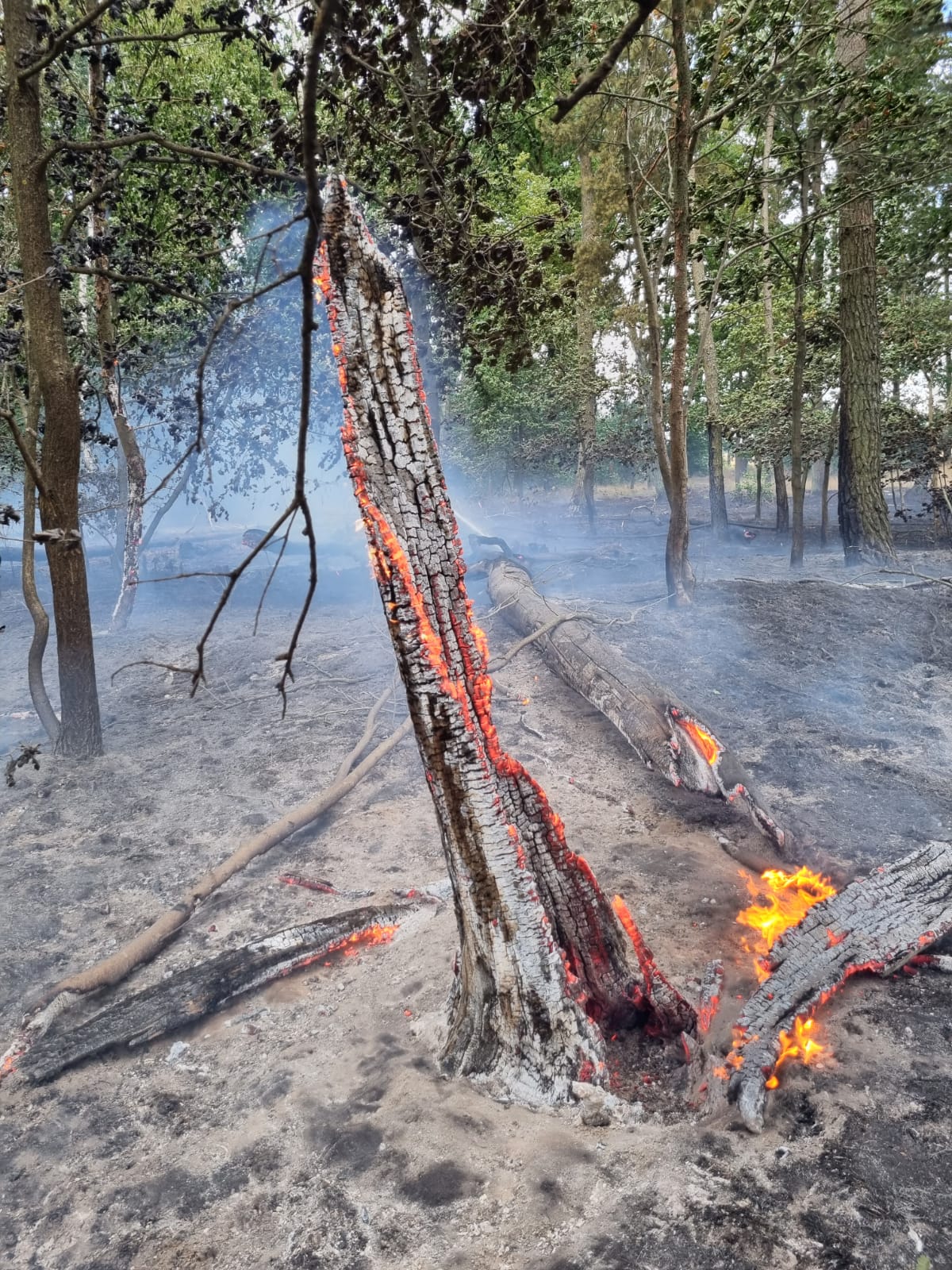 W trakcie dojazdu zastępów na miejsce pożaru kierujący działaniem ratowniczym widząc areał objęty pożarem poprosił o zadysponowanie dodatkowych sił i środków. SKKP zadysponowało zastępy z JRG Czarnków oraz OSP z gmin Trzcianka, Czarnków, Wieleń, Krzyż Wlkp. i Drawsko, łącznie do pożaru zadysponowano 24 zastępy całego powiatu.