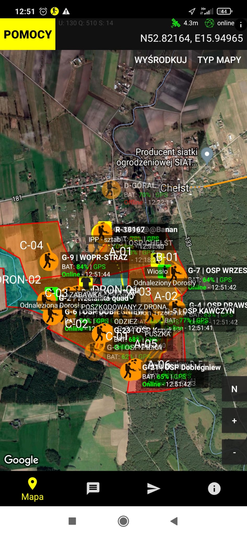 z powyższą aplikacją jak również koordynację działań Policji, Państwowej Straży Pożarnej, Ochotniczych Straży Pożarnych z terenu gminy Drawsko, Wieleń i Krzyż Wielkopolski, Lasów Państwowych oraz WOPR.