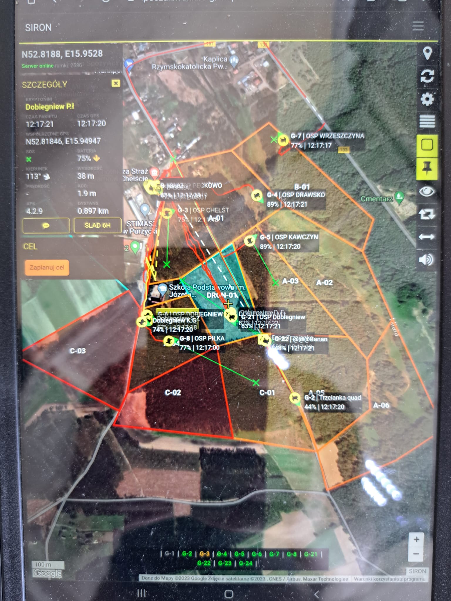 W dniu 6 czerwca 2023 roku na terenie gminy Drawsko odbyły się ćwiczenia taktyczno – bojowe mające na celu przećwiczenie działań poszukiwawczo – ratowniczych na znacznym obszarze, na którym w wyniku gwałtownych zjawisk atmosferycznych doszło do wypadku kajakarzy na rzece Miałka. Do ćwiczeń, których współorganizatorem był wójt Gminy Drawsko i regionalne firmy kajakarskie, zaproszona została Wielkopolska Grupa Poszukiwawczo – Ratownicza, przedstawiciele której zaprezentowali autorską aplikację ratowniczą SIRON.