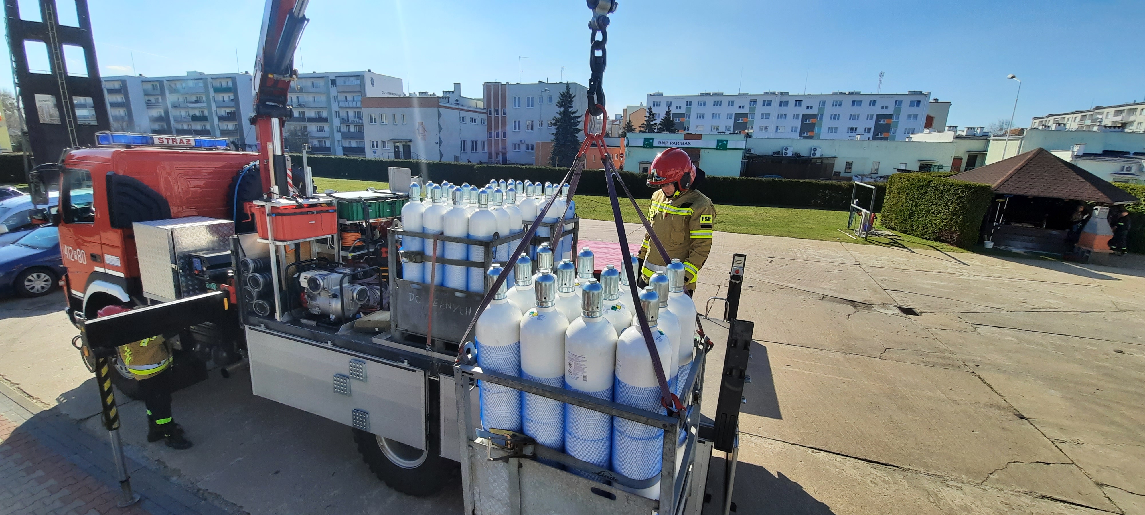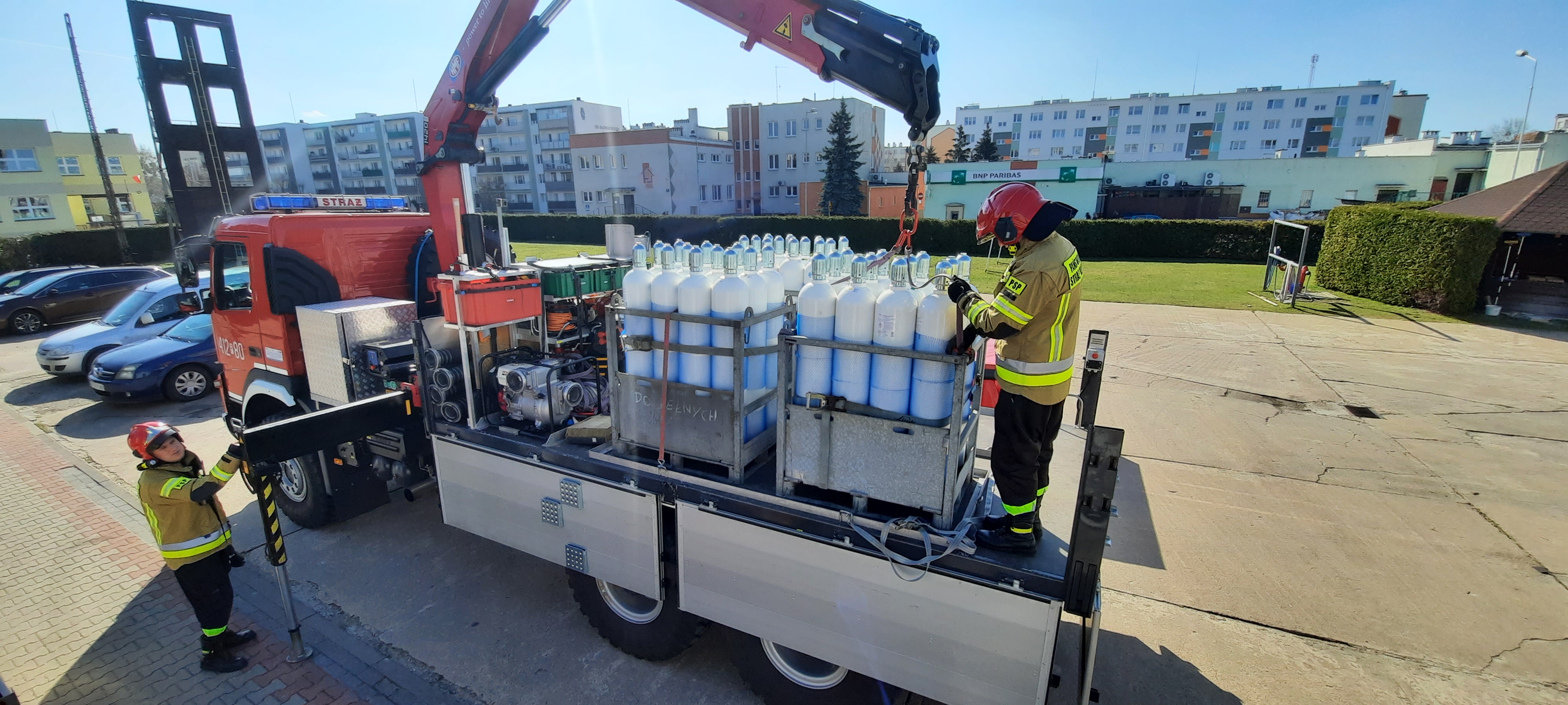 W czasie trwania epidemii wirusa SARS Cov2 KOMENDA Powiatowa PSP w Czarnkowie realizuje zadania związane z dystrybucją tlenu. 30 marca br. zastęp SCW 300 z JRG PSP nr 2 w Trzciance po raz kolejny został zadysponowany do realizacji zadania w tym zakresie. po odbiór36 butli o pojemności 40 litrów ze Szpitala Powiatowego w Chodzieży. Puste butle tymczasowo trafiły do „Banku Tlenu” znajdującego się w trzcianeckiej jednostce, gdzie w godzinach nocnych zostały wymienione na pełne, dostarczone specjalnym transportem z Zakładów Polfa S.A..