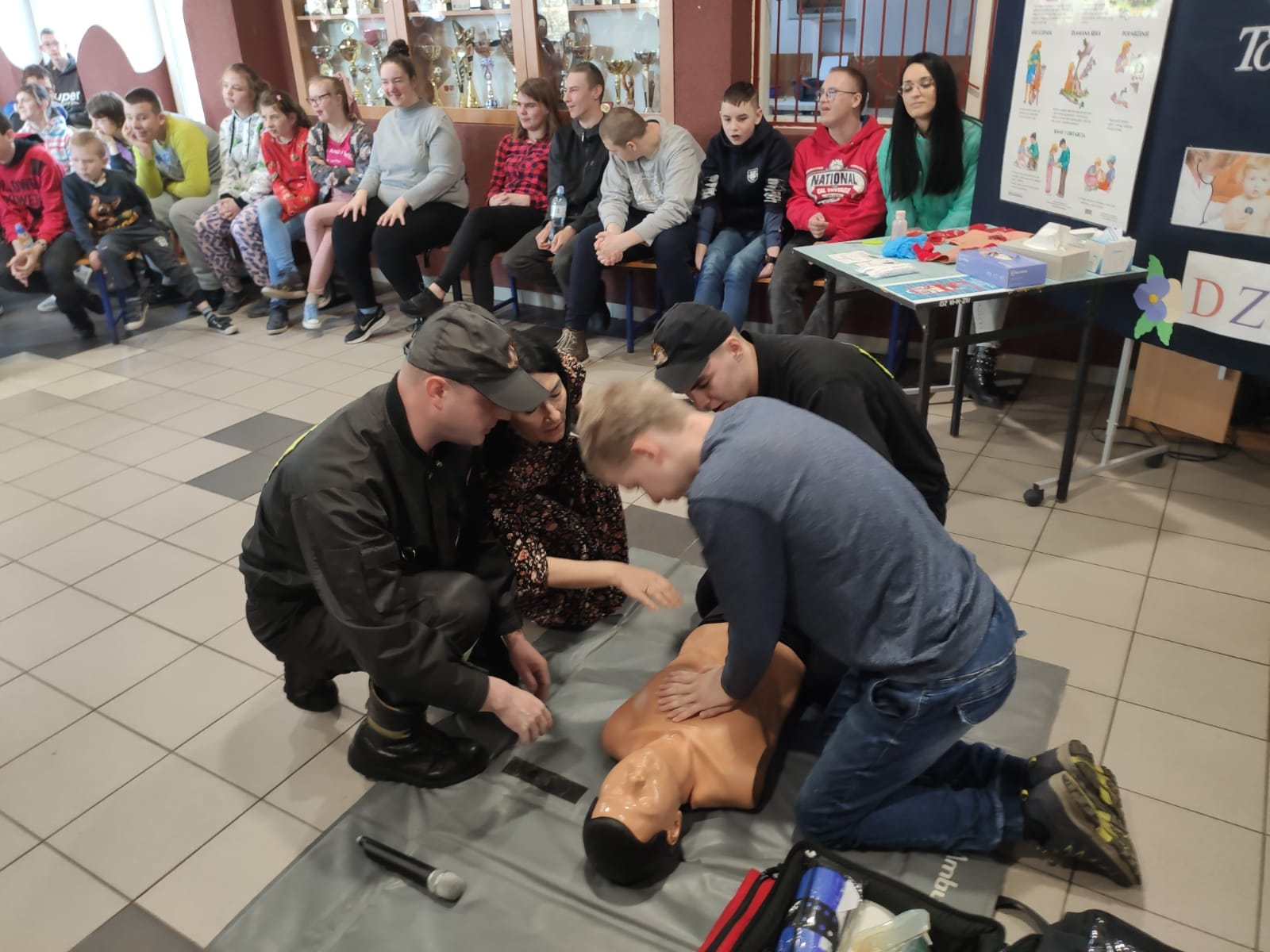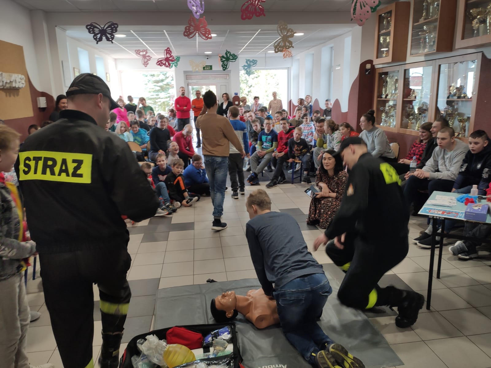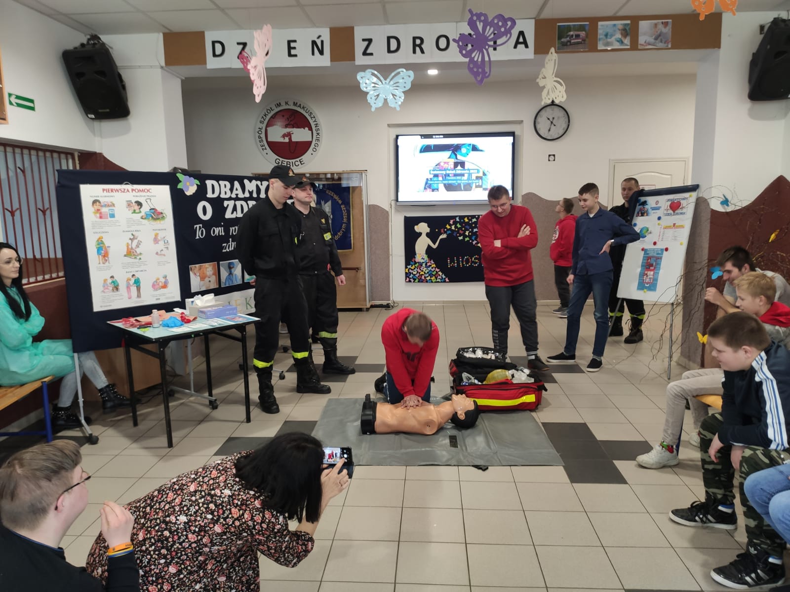 W dniu 7 kwietnia 2022 funkcjonariusze Jednostki Ratowniczo – Gaśniczej w Czarnkowie odwiedzili Zespół Szkół Specjalnych im. Kornela Makuszyńskiego w Gębicach, gdzie z okazji „Światowego Dnia Zdrowia” omówili zasady Kwalifikowanej Pierwszej Pomocy, z którymi możemy spotkać się w życiu codziennym tj. omdlenie, osoba nieprzytomna oraz resuscytacja krążeniowo - oddechowa. Zaprezentowano również sprzęt znajdujący się na pojeździe ratowniczo-gaśniczym. Dzieci i młodzież wykazały się dużym zainteresowaniem i wiedzą na temat bezpieczeństwa oraz pierwszej pomocy.