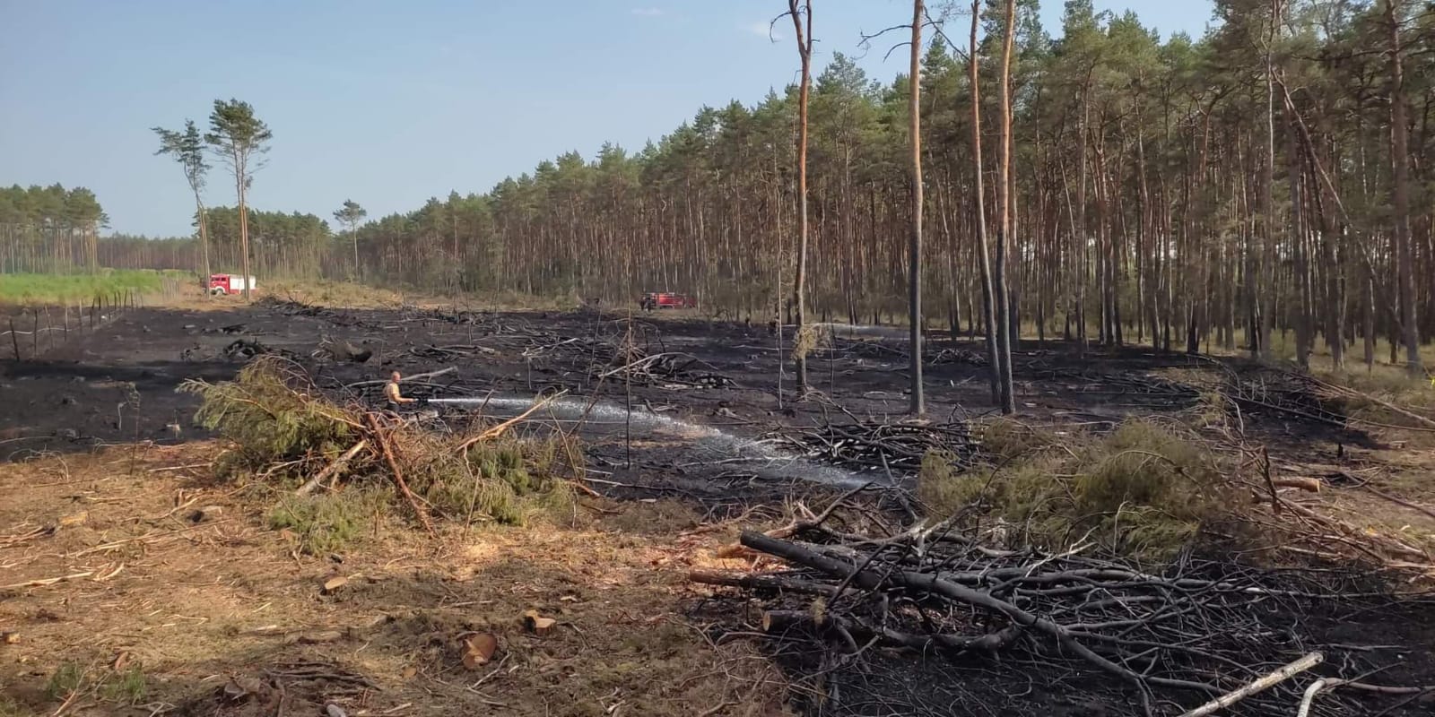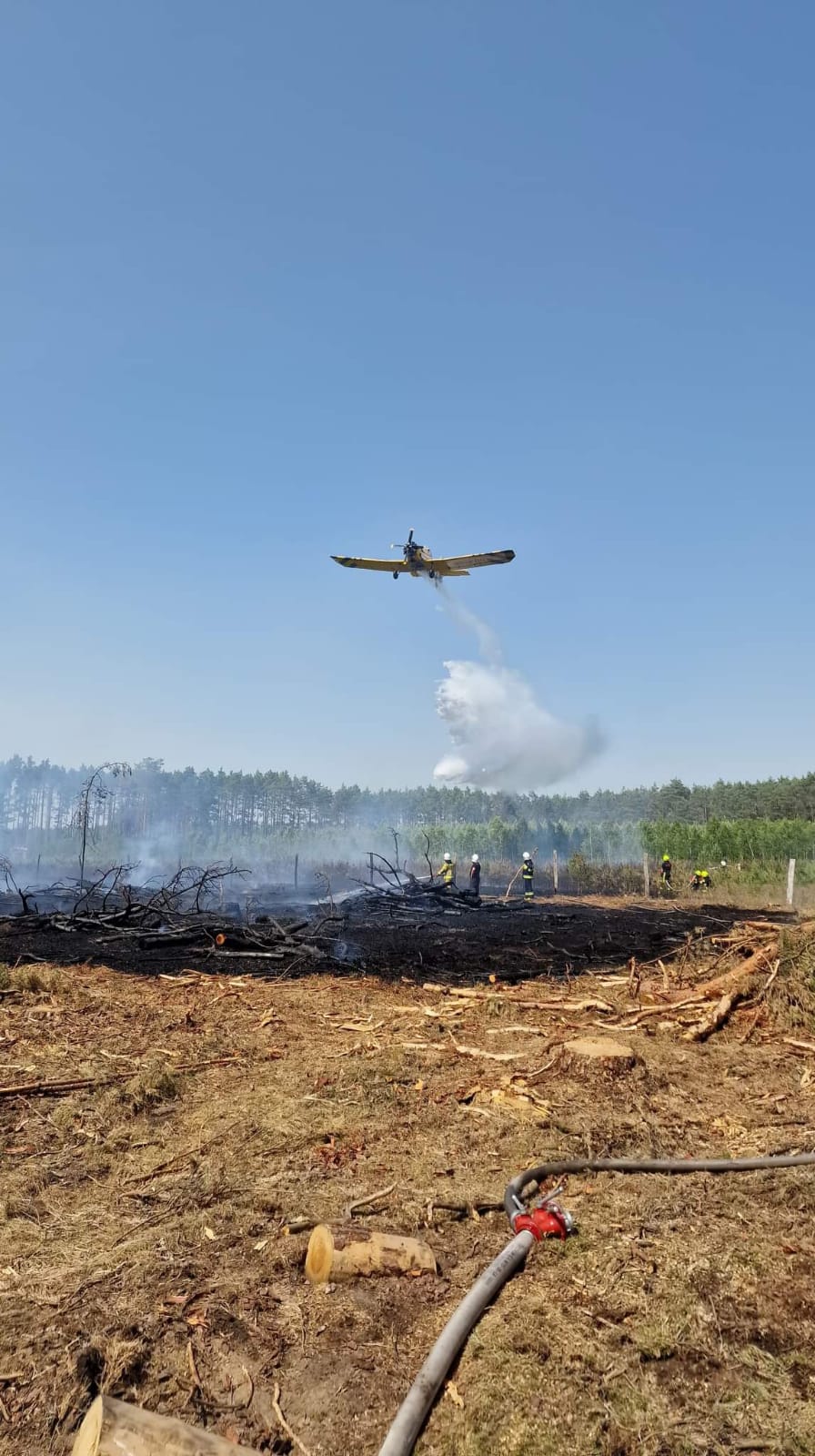Dnia 19 czerwca br. o godz. 13:30 do Stanowiska Kierowania Komendanta Powiatowego w Czarnkowie wpłynęło zgłoszenie o pożarze lasu w miejscowości Wrzeszczyna. Do zdarzenia niezwłocznie zadysponowano zastępy z JRG Czarnków, OSP KSRG Rosko, OSP KSRG Wieleń oraz OSP Miały. Silne podmuchy wiatru, duże zadymienie i sucha ściółka w lesie powodowały szybkie rozprzestrzenianie się pożaru, dlatego na miejsce zdarzenia zadysponowano kolejne zastępy straży pożarnej z terenu powiatu czarnkowsko-trzcianeckiego. Jednocześnie akcje gaśnicze prowadziły trzy samoloty. W trakcie trudnych działań Dyżurny Operacyjny Powiatu dostał zgłoszenie o kolejnym pożarze lasu w Puszczy Noteckiej w miejscowości Brzeźno, który powstał od przewróconego drzewa na linie średniego napięcia. Pożar również szybko się rozprzestrzeniał, dlatego dysponowano kolejne jednostki straży pożarnej, także z sąsiedniego powiatu. Po długich i wyczerpujących działaniach, bo trwających 7 h i 30 minut ugaszono pożar. Łącznie do pożaru zadysponowano 29 zastępów straży pożarnej, udział brało 142 strażaków. Samoloty dokonały 14 zrzutów wody, a ciągniki rolnicze oborały miejsce pożaru. W wyniku pożaru spaleniu uległo łącznie 2,37 ha lasu. W trakcie działań na miejsce przybył Oficer Operacyjny KP PSP w Czarnkowie, Przedstawiciele Nadleśnictwa Potrzebowice, Burmistrz Miasta i Gminy Wieleń.