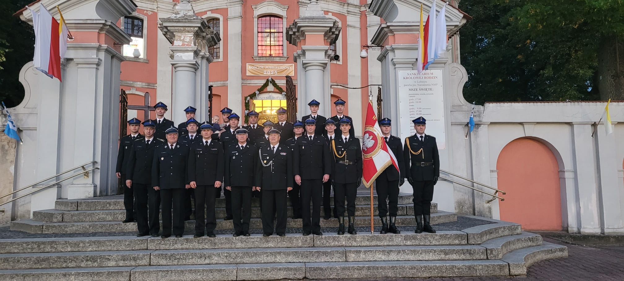 03.09.2025 r. o godz. 18:00 tradycyjnie jak każdego roku organizowany jest w czasie odpustu ku czci Matki Boskiej Lubaskiej Królowej Rodzin, dzień modlitw nie tylko w intencji wszystkich strażaków ale również w intencji innych służb mundurowych. Na zaproszenie Proboszcza Parafii pw. Narodzenia Najświętszej Maryi Panny w Lubaszu ks. kan. Macieja Grzesia - Kustosza Sanktuarium Maryjnego, zareagowało szereg służb mundurowych i umundurowanych tj.: Strażacy - funkcjonariusze Państwowej Straży Pożarnej i druhowie Ochotniczych Straży Pożarnej; Funkcjonariusze Policji; Leśnicy i Myśliwi. W trakcie mszy św. dziękczynnej z nowenną w XXV rocznicy koronacji obrazu Matki Bożej Lubaskiej Królowej Rodzin w Lubaszu na okoliczność rozpoczęcia odpustu uroczyście wprowadzono sztandary służb mundurowych. Msza św. przeprowadzona została pod przewodnictwem ks. abp. Metropolity Poznańskiego Zbigniewa Zielińskiego.