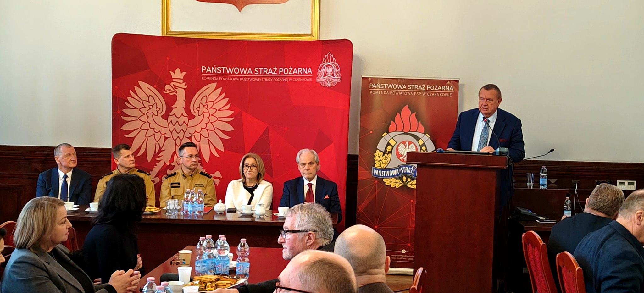 Komendant Powiatowy PSP w Czarnkowie mł. bryg. Michał Macyszyn w imieniu własnym oraz wszystkich funkcjonariuszy i pracowników cywilnych serdecznie przywitał wszystkich gości. Na odprawie zaszczycili swoją obecnością między innymi: