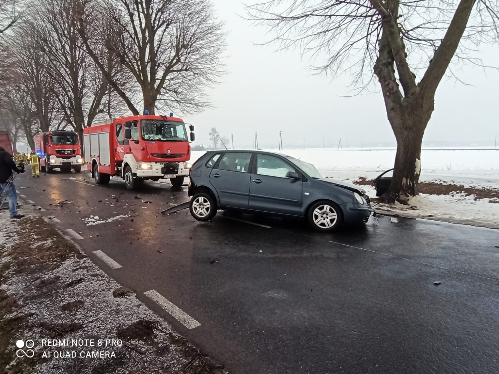 17.02.2020 r. około 7:45 funkcjonariusz JRG Trzcianka udając się pojazdem SHD-23 do firmy serwisowej najechał na wypadek. Informację o zdarzeniu przekazał dyżurnemu SKKP w Czarnkowie, który do działań zadysponował zastępy z JRG Trzcianka. Na miejscu zastano samochód ciężarowy znajdujący się częściowo w przydrożnym rowie, na przeciwnym pasie znajdował się Volkswagen Passat, a za samochodem ciężarowym na drodze znajdował się samochód osobowy Volkswagen Polo z pozostającą w środku kierującą. Na miejscu zdarzenia znajdował się również ZRM z Trzcianki, ratownicy udzielali pomocy poszkodowanej, u której podejrzewano urazy kończyn, miednicy, barku oraz obrażenia wewnętrzne. Strażacy zabezpieczyli miejsce zdarzenia, po przygotowaniu poszkodowanej do ewakuacji przez ratowników medycznych wykonano do niej dostęp przy użyciu narzędzi hydraulicznych. Następnie wraz z ratownikami ZRM ewakuowano ją do karetki. Podczas prowadzenia działań na miejsce przybył patrol Policji i dodatkowo zadysponowane Siły i Środki PSP i OSP. W trakcie działań KDR w porozumieniu z Policją zorganizowali objazd przez pobliskie miejscowości. Po zakończeniu czynności dochodzeniowych przez policję pojazdy zostały usunięte przez pomoc drogową. W wyniku tego zdarzenia poszkodowana została jedna osoba. Działania trwały ponad 4 godziny.