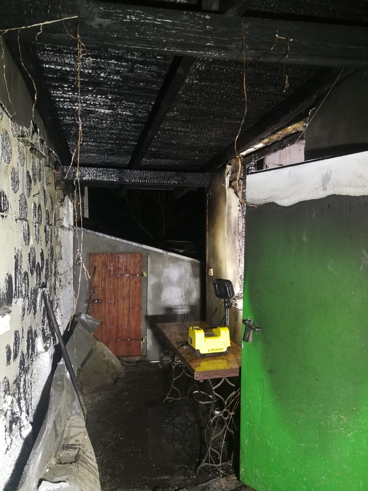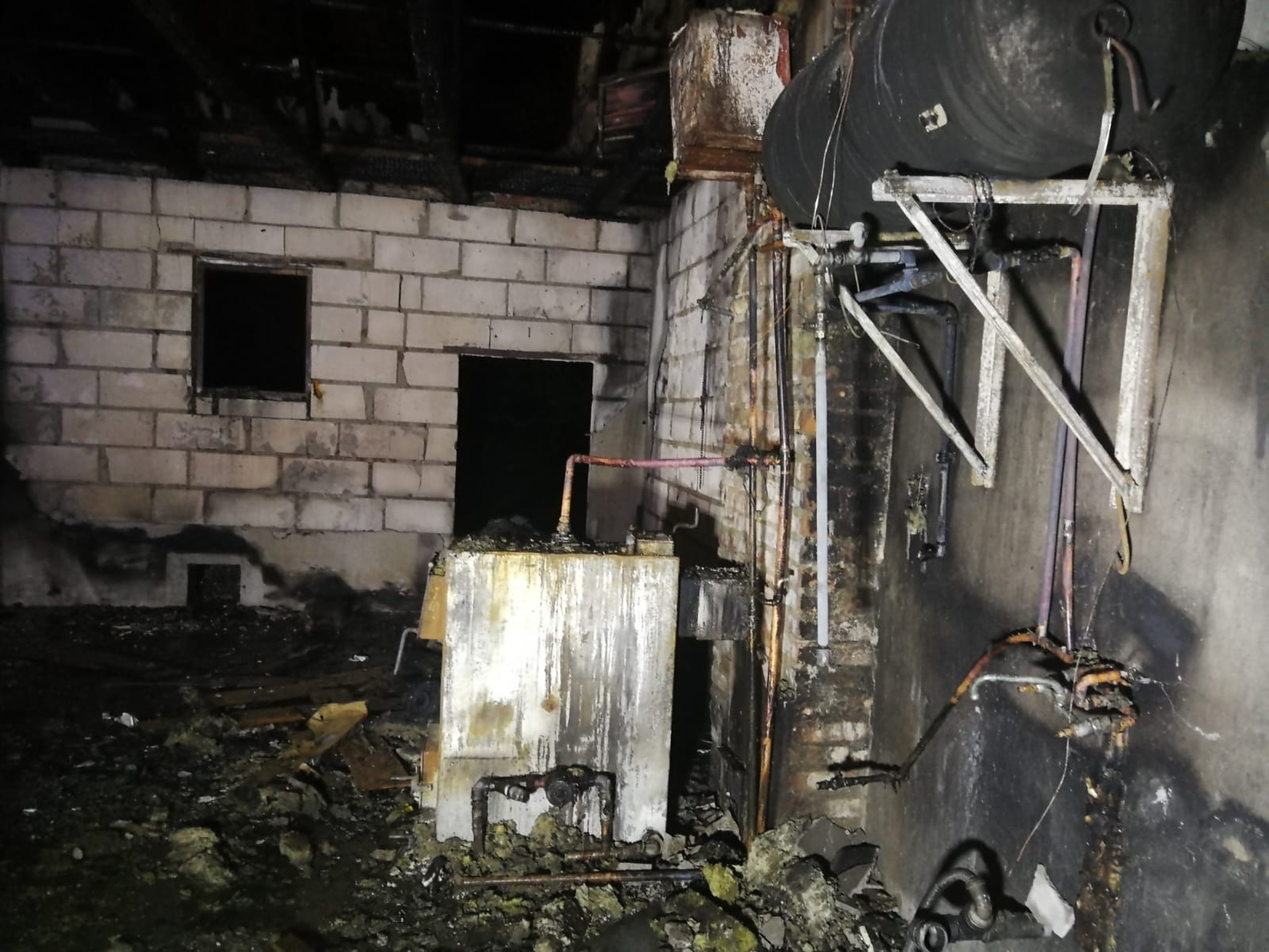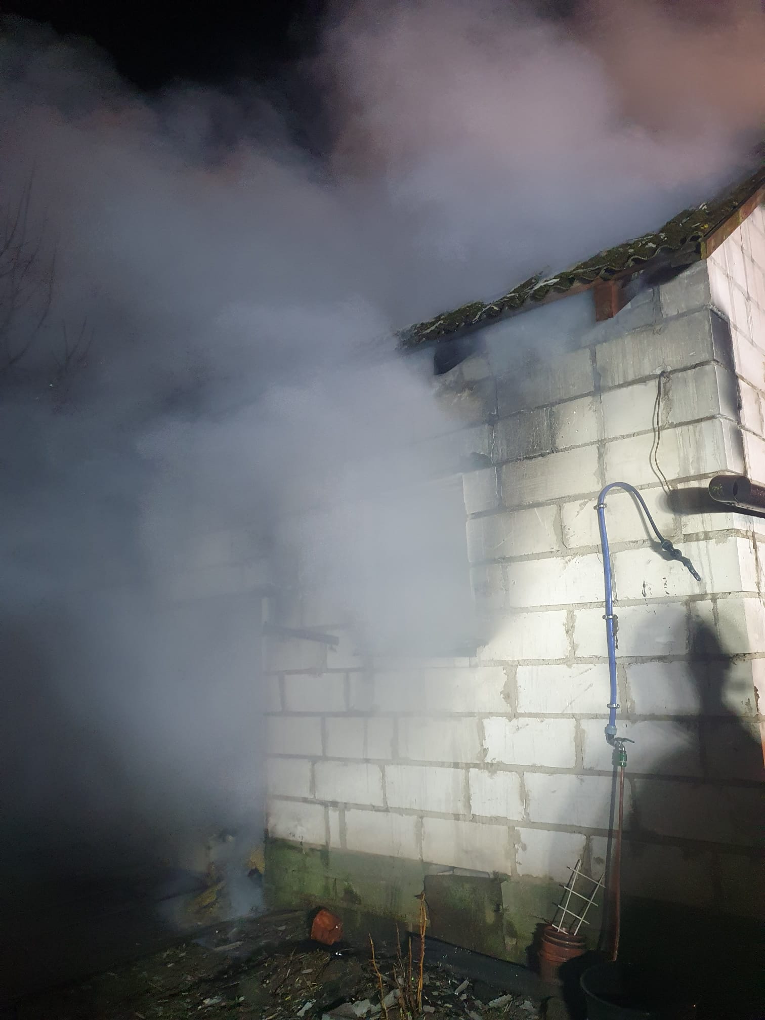 W momencie dojazdu na miejsce zdarzenia strażacy zastali rozwinięty pożar budynku gospodarczego oraz zarzewia ognia przechodzące na elewację, zadaszenie tarasu oraz podbitki dachowej budynku mieszkalnego. Wszyscy mieszkańcy opuścili budynek nie odnosząc obrażeń. Działania straży pożarnej polegały na zabezpieczeniu miejsca zdarzenia, oświetleniu terenu, podaniu trzech prądów gaśniczych na w/w budynki. Po ugaszeniu zarzewi przystąpiono do prac rozbiórkowych nadpalonych elementów konstrukcyjnych i usunięciu innych pozostałości po pożarze. Dalsze działania polegały na sprawdzeniu rozkładu temperatur oraz stanu atmosfery gazowej wewnątrz pomieszczeń objętych pożarem.