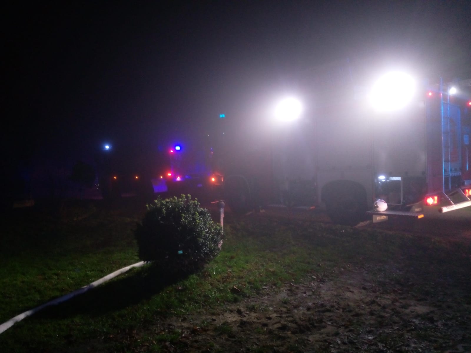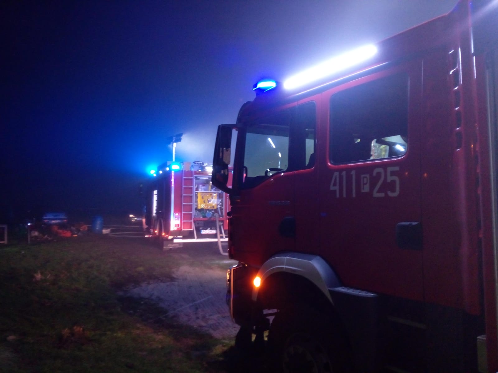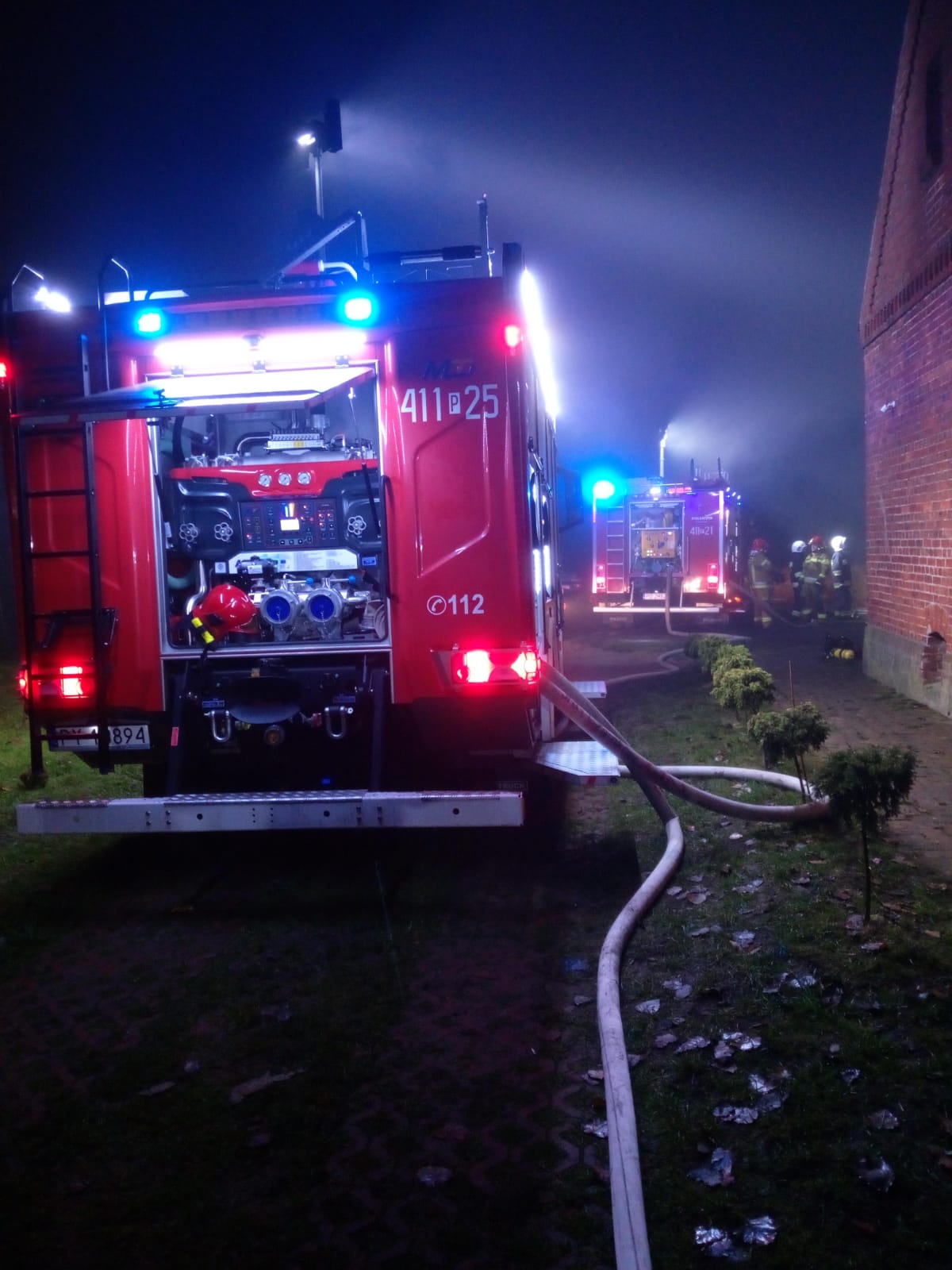 Po przyjeździe na miejsce zdarzenia pierwszego zastępu, zastano zadymiony budynek inwentarski oraz pomieszczenie kotłowni.