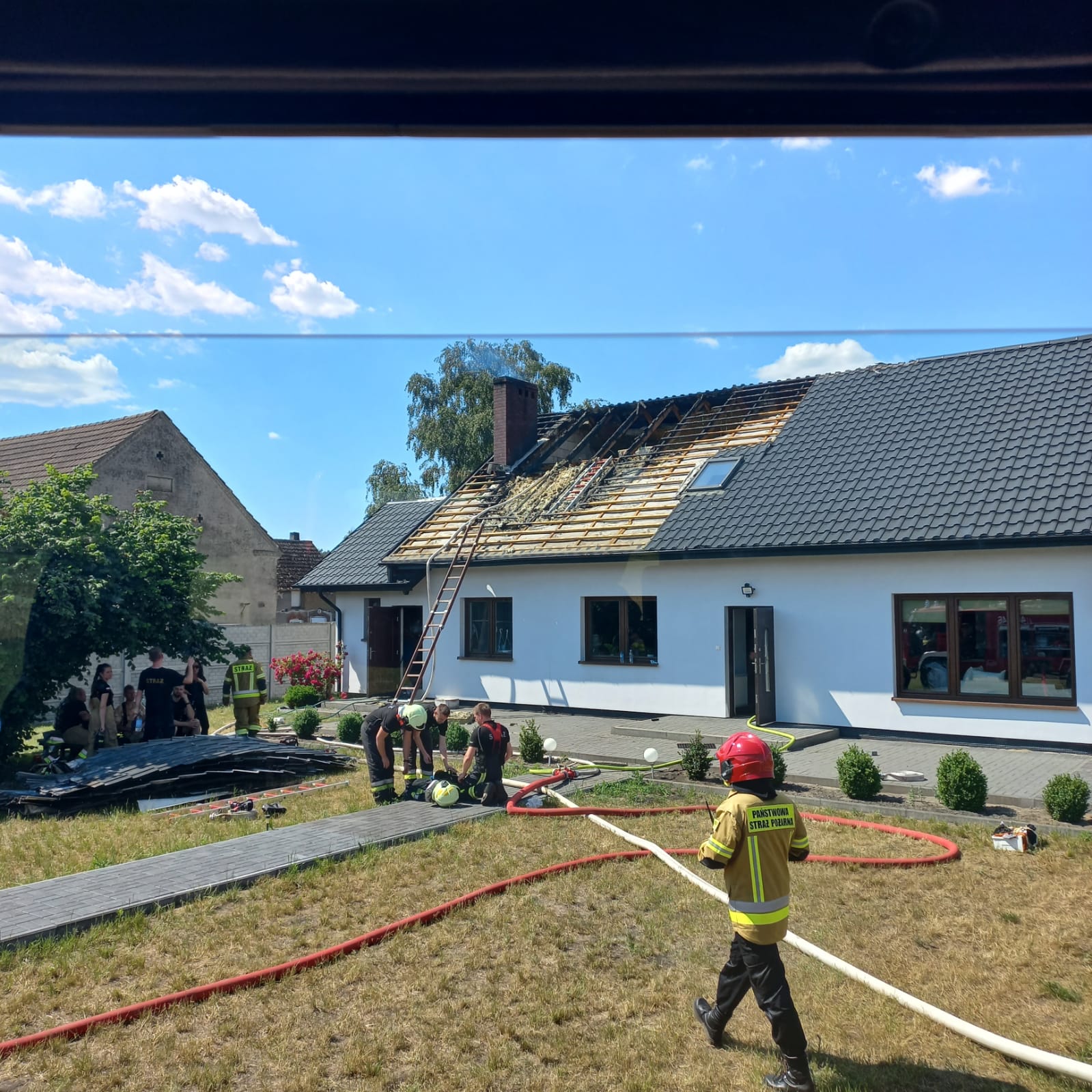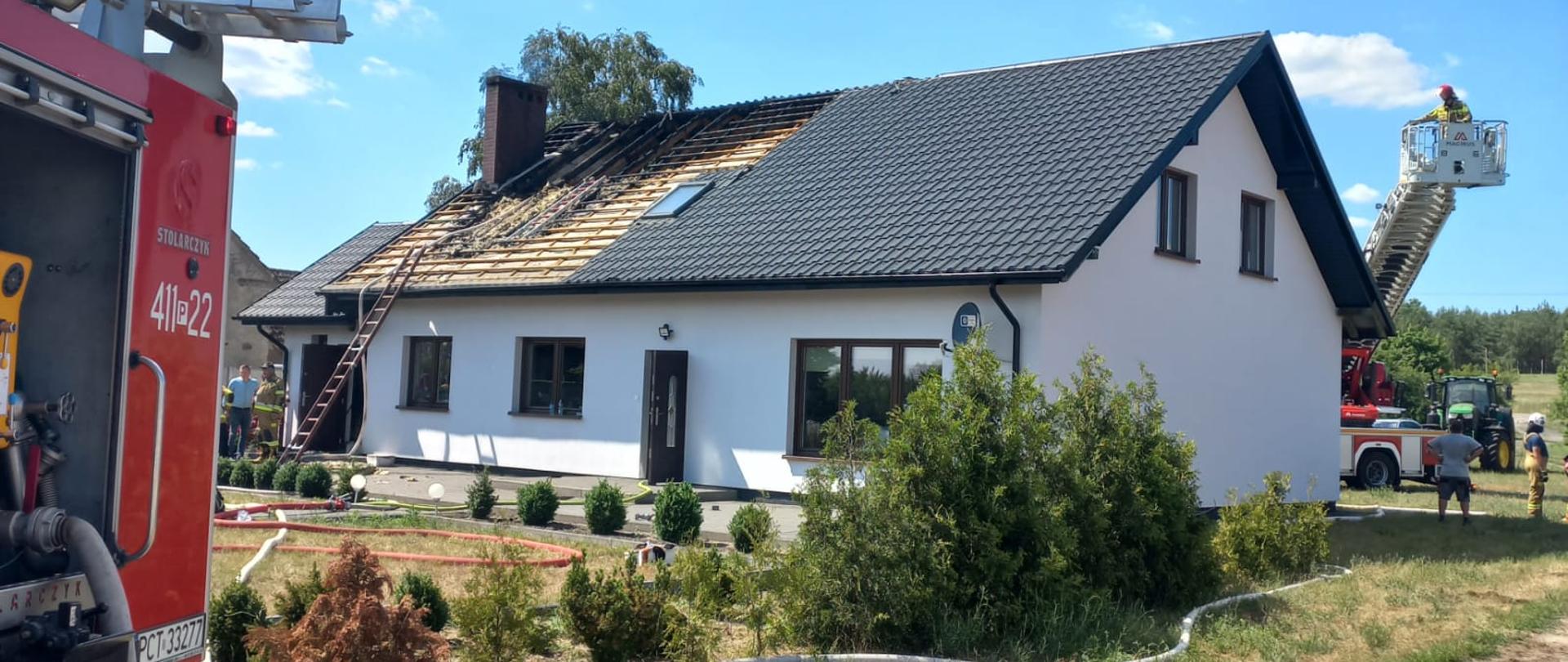 z JRG PSP w Czarnkowie oraz jednostki OSP z Gajewa Jędrzejewa i Wielenia. Do zdarzenia udali się również Komendant Powiatowy oraz dowódca JRG Trzcianka. Po przybyciu na miejsce zdarzenia zastano pożar dachu budynku mieszkalnego. Mieszkańcy wraz z sąsiadami podjęli próbę gaszenia pożaru przed przybyciem jednostek ochrony pożarowej. Główne działania polegały na zabezpieczeniu miejsca zdarzenia, podaniu prądów gaśniczych oraz wykonaniu zaopatrzenia wodnego na potrzeby prowadzenia działań gaśniczych. Konieczne było prowadzenie częściowej rozbiórki przekrycia dachowego oraz elementów izolacyjnych dachu. Podczas działań nikt nie odniósł obrażeń. W działaniach trwających około 3 godzin wzięło udział 8 zastępów strażackich w sile 22 ratowników.