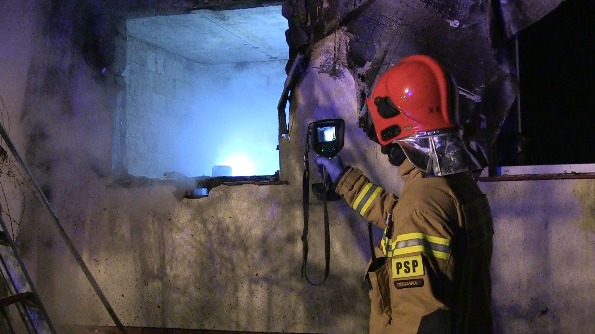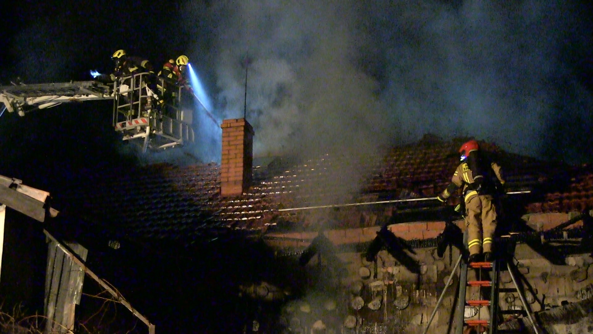w Czarnkowie przyjęło zgłoszenie o pożarze budynku mieszkalnego jednorodzinnego w miejscowości Wapniarnia III. Do zdarzenia zadysponowano siły i środki z Jednostek Ratowniczo-Gaśniczych w Trzciance i Czarnkowie, Ochotniczą Straż Pożarną z Białej, Stobna i Trzcianki oraz Oficera Operacyjnego z Komendy Powiatowej PSP w Czarnkowie. Na miejsce przybył również Zastępca Komendanta Powiatowego PSP w Czarnkowie. Po dojeździe zastępów na miejsce zdarzenia zastano w pełni rozwinięty pożar poddasza. Działania zastępów polegały na zabezpieczeniu miejsca zdarzenia oraz podaniu trzech prądów wody w natarciu na palące się łaty, belki stropowe, krokwie i trzech prądów wody do środka budynku. Ze względu na silne zadymienie zastosowano wentylację nadciśnieniową w celu poprawy widoczności. Po stłumieniu płomieni przystąpiono do rozbiórki poszycia dachowego w celu dogaszenia zarzewi ognia. Końcowym etapem działań było sprawdzenie kamerą termowizyjną wszystkich pomieszczeń oraz stanu atmosfery gazowej w budynku. W działaniach gaśniczych udział brało 9 zastępów 29 strażaków.