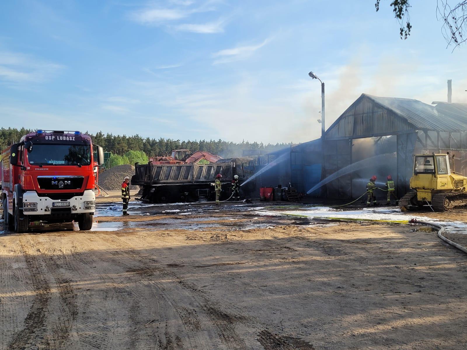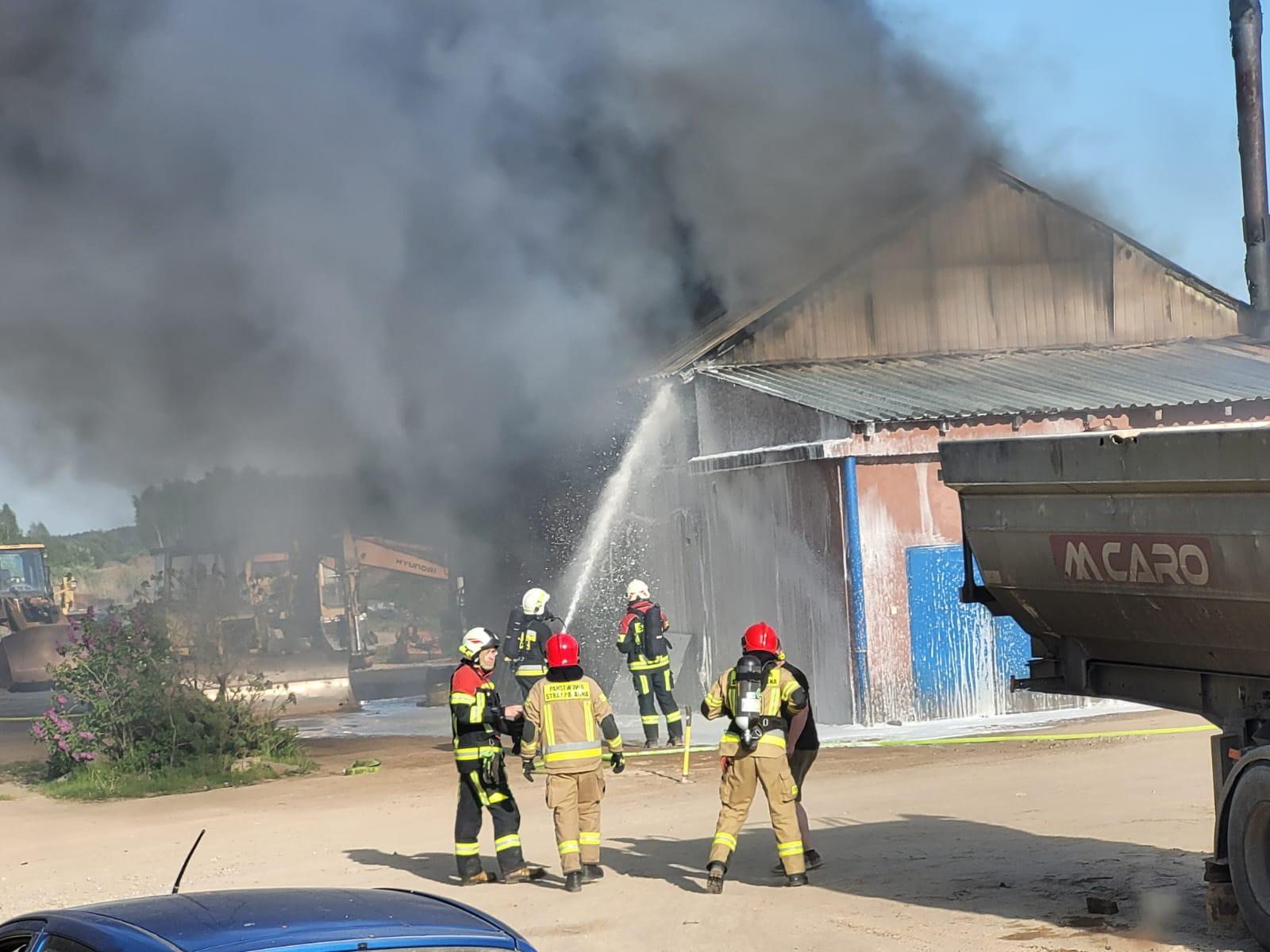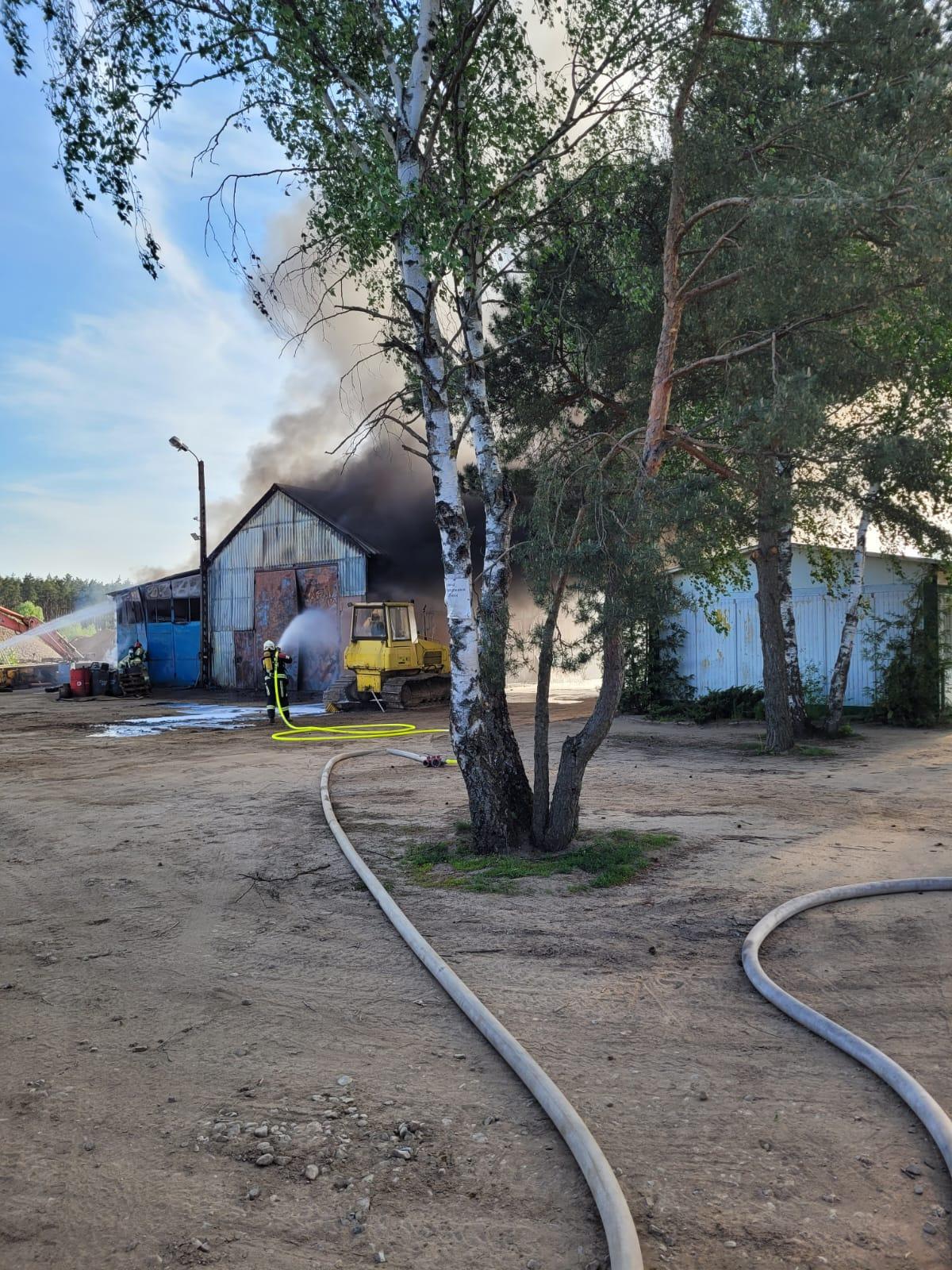 Pożar budynku warsztatowego w Rosku