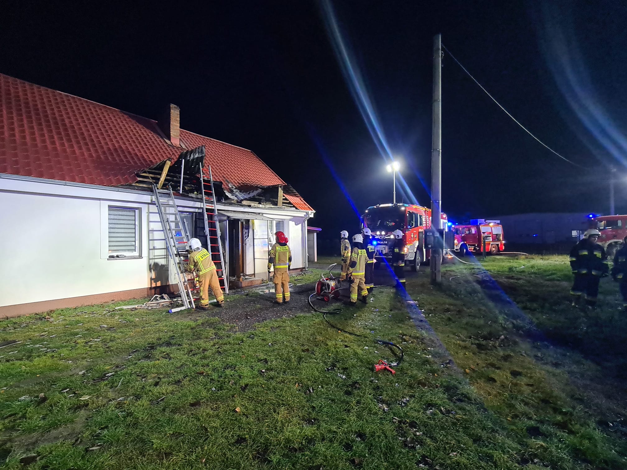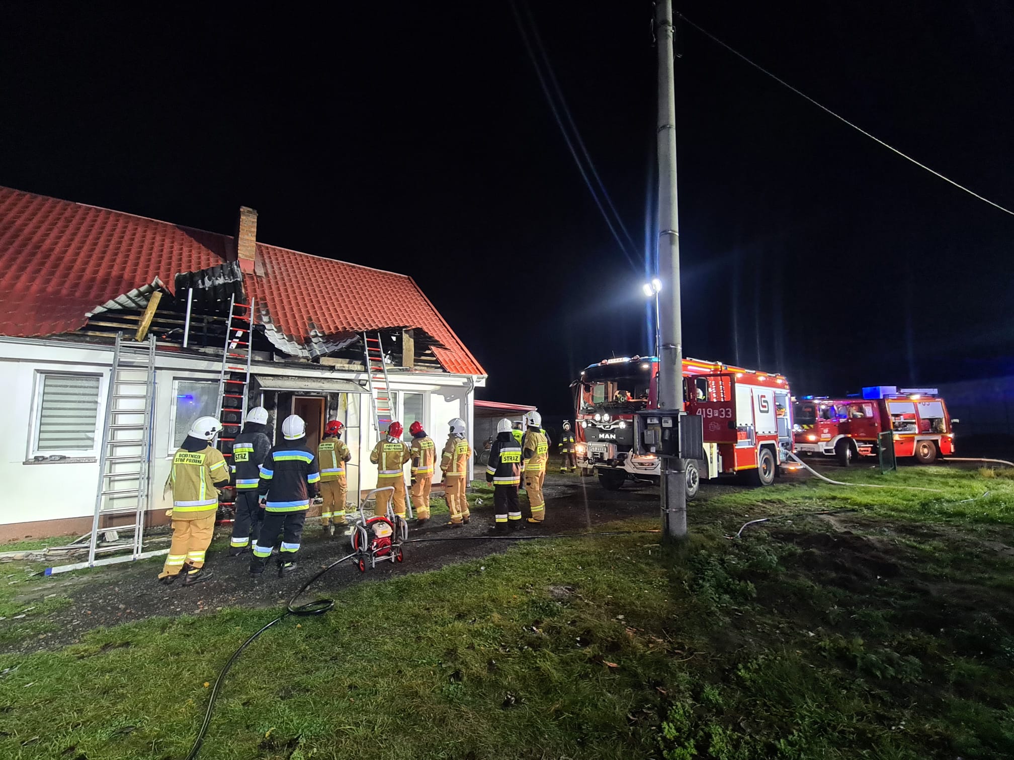 18.11.2023 o godz. 01:29 SKKP w Czarnkowie otrzymało zgłoszenie o pożarze elewacji budynku mieszkalnego w miejscowości Połajewo. Do działań zadysponowano jednostki z JRG Czarnków, OSP KSRG Połajdwo oraz OSP Sierakówko. Po dojeździe na miejsce zdarzenia zastano pożar elewacji budynku rozprzestrzeniający sie na poddasze, mieszkańcy opuścili obiekt przed przybyciem zastępów straży pożarnej. Działania polegały na lokalizacji źródła pożaru, jego ugaszeniu, oświetleniu terenu działań a następnie częściowej rozbiórki dachu. Na koniec działań wszystkie pomieszczenia sprawdzono urządzeniami pomiarowymi – zagrożeń nie stwierdzono. W działaniach brało udział 6 zastępów. Działania trwały ponad 2 godziny.