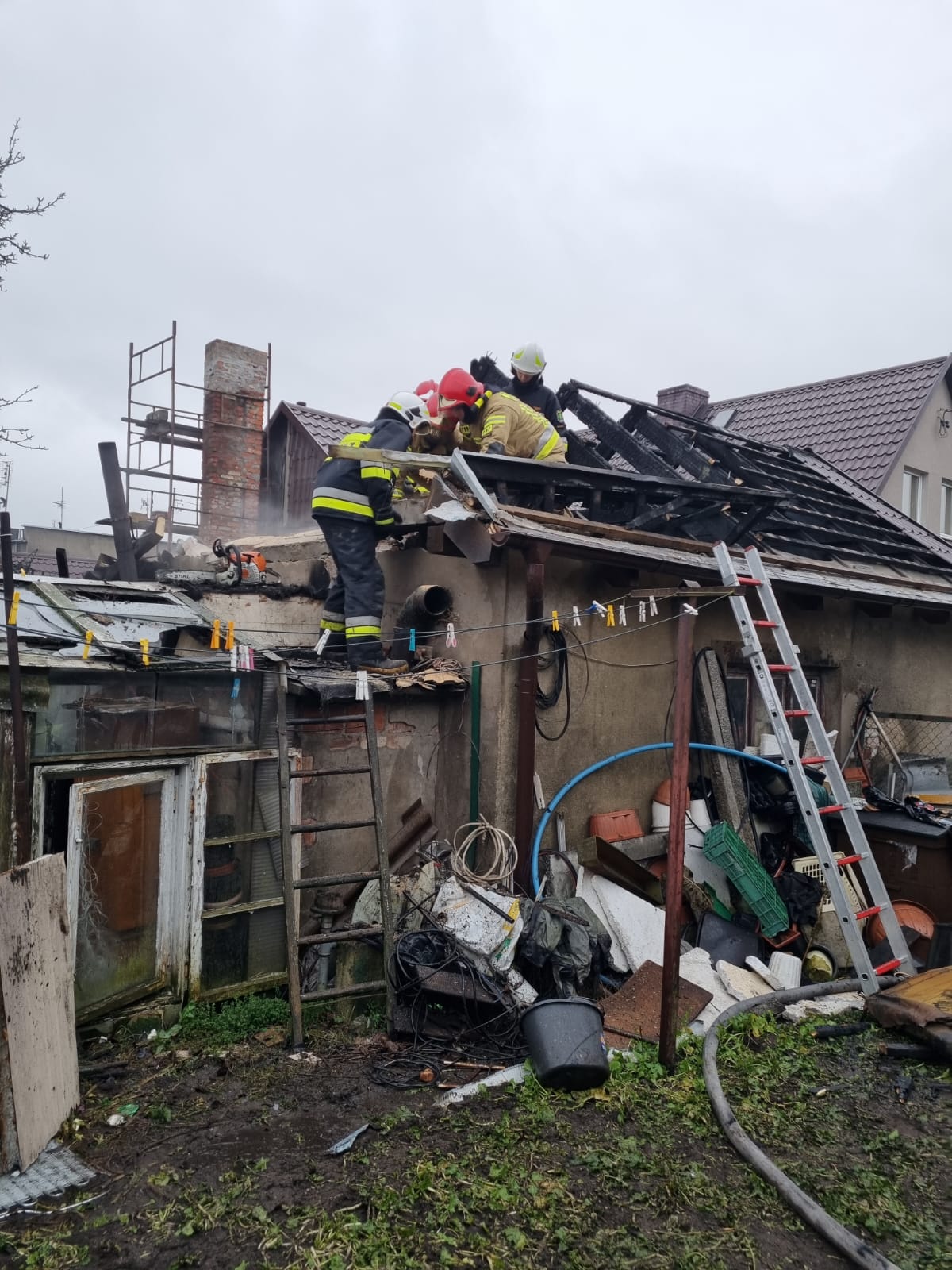 29 listopada 2021 roku o godzinie 13:27 Dyżurny Stanowiska Kierowania Komendanta Powiatowego w Czarnkowie przyjął zgłoszenie o pożarze w miejscowości Krzyż Wlkp.. Do zdarzenia zadysponowano jednostki ochrony przeciwpożarowej z Czarnkowa, Trzcianki Krzyża Wlkp., Kuźnicy Żelichowskiej, Drawska i Wielenia. Po dojeździe na miejsce zdarzenia pierwszego zastępu stwierdzono, że pożarem objęta jest cała konstrukcja dachu budynku garażowego oraz zagrożony jest budynek mieszkalny. Działania zastępów polegały na podaniu dwóch prądów gaśniczych w natarciu na garaż w celu ugaszenia. Po ugaszeniu rozebrano drewnianą konstrukcję dachu. Po usunięciu drewnianych elementów okazało się że szczyt ściany chwieje się, dla tego też KDR polecił rozbiórkę szczytu ściany do poziomu stropu betonowego. Całkowitemu spaleniu uległ dach budynku wraz ze składowanym wyposażeniem. Wszyscy mieszkańcy opuścili teren posesji przed przybyciem jednostek ochrony przeciwpożarowej i nie odnieśli w wyniku zdarzenia obrażeń. Na miejsce pożaru przybył Dowódca Jednostki Ratowniczo-Gaśniczej w Trzciance.