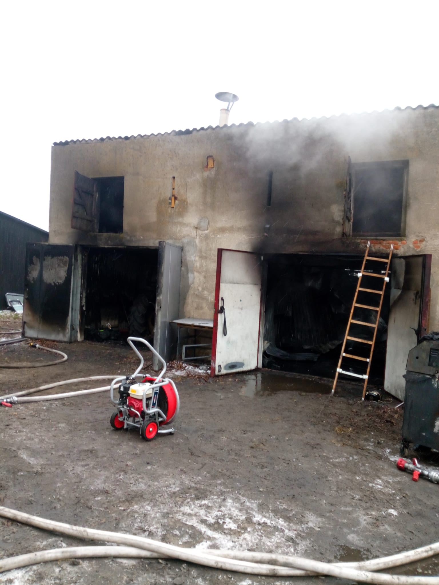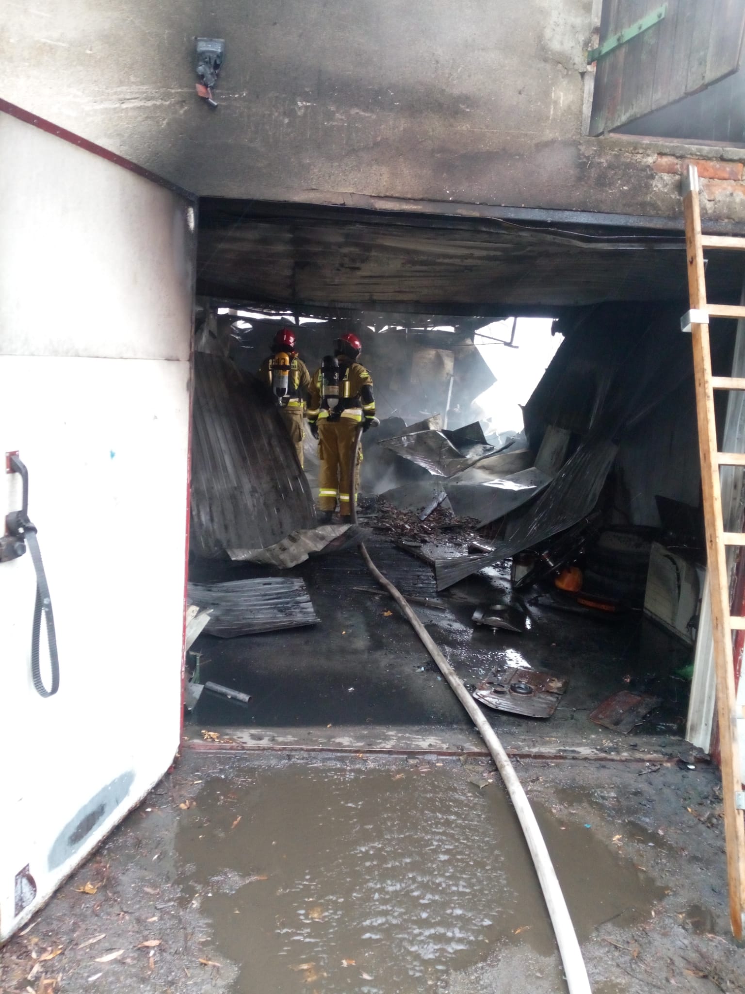 Po dojeździe na miejsce zdarzenia zastano rozwinięty pożar budynku gospodarczego i przylegającej do niego wiaty. Działania straży pożarnej polegały na podaniu trzech prądów wody w natarciu na palące się elementy garażu, oraz jeden prąd wody w obronie przyległych zabudowań. Dalsze działania polegały na wentylacji pomieszczenia oraz sprawdzeniu rozkładu temperatur w budynku. W działaniach gaśniczych, które trwały ponad pięć godzin udział brało 10 zastępów Państwowej i Ochotniczych Straży Pożarnych.