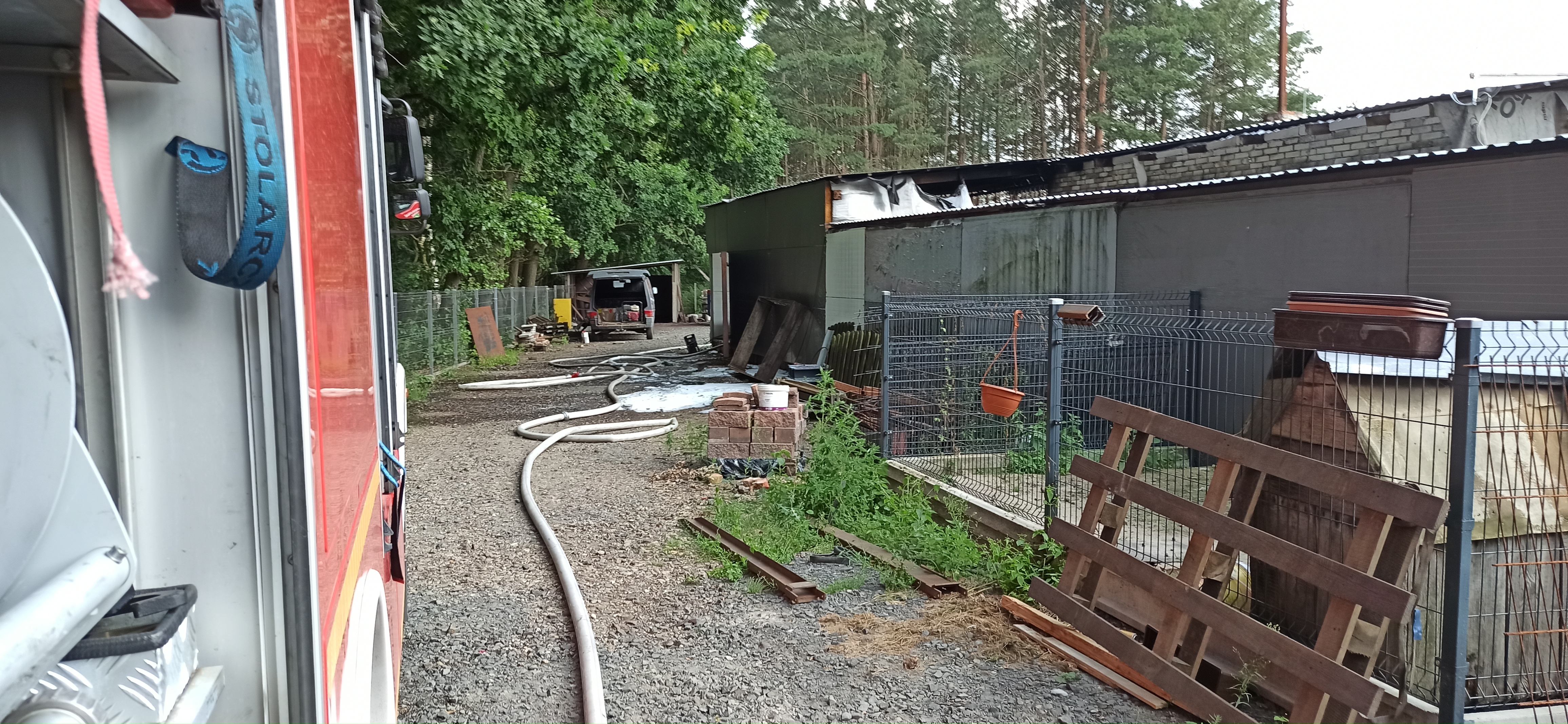 23 lipca 2021r. o godzinie 14:40 do SKKP PSP w Czarnkowie wpłynęło zgłoszenie o pożarze pieca w budynku gospodarczym w Lubczu Wielkim. Do zdarzenia zadysponowano zastępy z OSP Krzyż, OSP Wieleń, OSP Drawsko, OSP Pęckowo oraz zastęp Państwowej Straży Pożarnej z JRG Trzcianka. Po przyjeździe pierwszych zastępów straży pożarnej w wyniku rozpoznania stwierdzono, że pożarem objęta jest w całości wiata pod którą znajdowała się malarnia. Strażacy podali dwa prądy wody w natarciu na palącą się wiatę oraz maszyny i urządzenia znajdujące się w malarni oraz w jej pobliżu. Wiata tworzyła zwartą zabudowę z budynkami gospodarczymi oraz warsztatem. Ryzyko rozprzestrzenienia pożaru na inne obiekty było duże, gdyż nadpaleniu uległa konstrukcja drewniana budynku sąsiadującego z wiatą. Strażacy podczas gaszenia pożaru, przystąpili do częściowej rozbiórki poszycia dachowego wiaty oraz sufitu podwieszanego w budynku sąsiednim. Szybkie działania straży pożarnej spowodowały, że pożar nie rozprzestrzenił się na pozostałe budynki. Po ugaszeniu pożaru sprawdzono pogorzelisko przy użyciu kamery termowizyjnej.