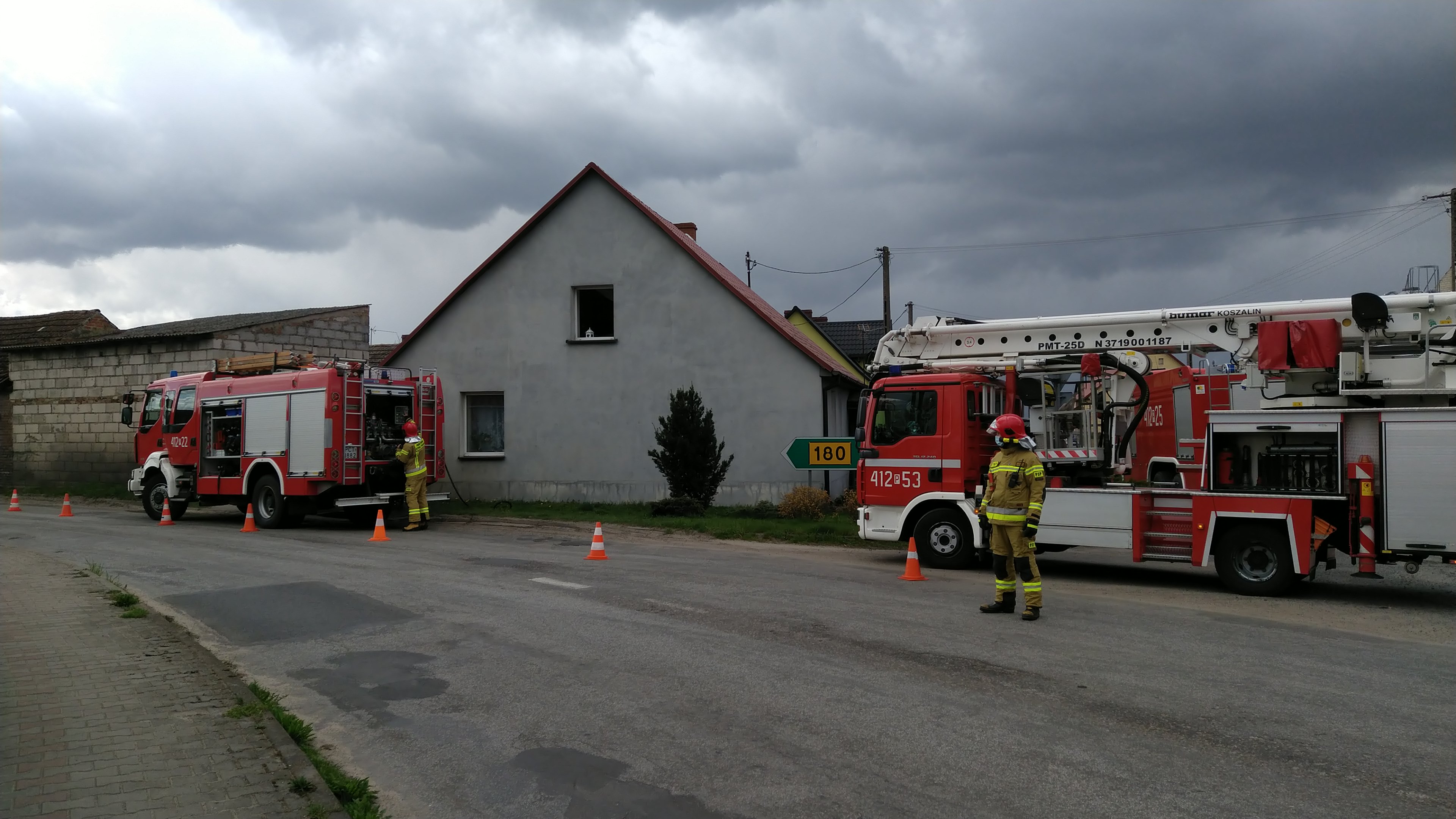 Do zdarzenia zadysponowane zostały zastępu z JRG PSP Trzcianka i OSP KSRG Siedlisko oraz Pogotowie Energetyczne. Po dojeździe zastępów na miejsce zdarzenia zastano pożar poddasza, którego prawdopodobną przyczyną było zwarcie instalacji elektrycznej. Działania zastępów polegały na zabezpieczeniu miejsca zdarzenia oraz podaniu jednego prądu wody w natarciu na palące się łaty i krokwie oraz oddymianiu budynku. Końcowym etapem działań było sprawdzenie kamerą termowizyjną wszystkich pomieszczeń oraz stanu atmosfery gazowej w budynku. Szybkie zauważanie pożaru i zgłoszenie do SKKP oraz sprawna akcja spowodowały, że straty pożarowe były stosunkowo niewielkie.