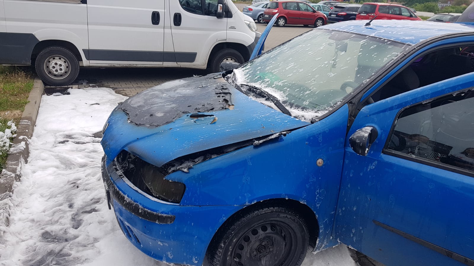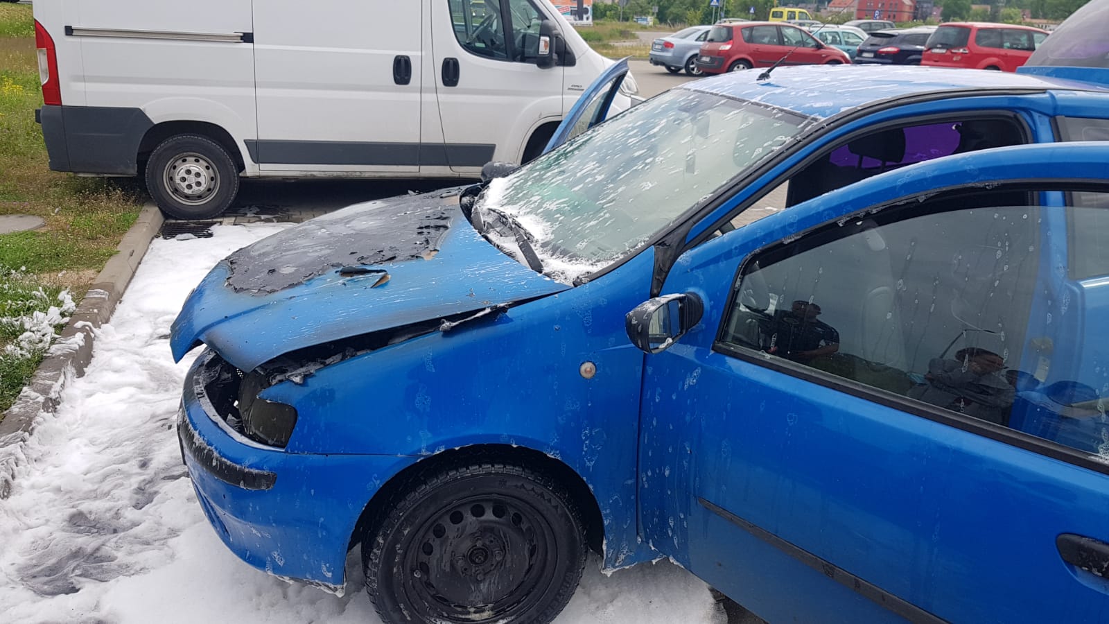 Po dojeździe na miejsce zdarzenia pierwszego zastępu stwierdzono, że pożarem jest objęta komora silnika samochód znajduję się na parkingu, a kierujący opuścił pojazd. Strażacy zabezpieczeni w sprzęt ochrony układu oddechowego, podali jeden prąd piany ciężkiej . Po ugaszeniu pożaru samochód przekazano właścicielowi celem zabezpieczenia.