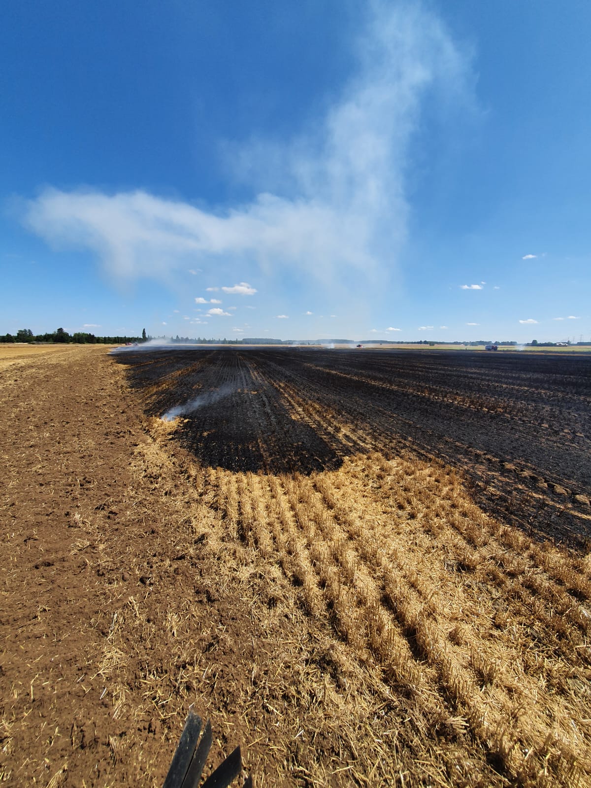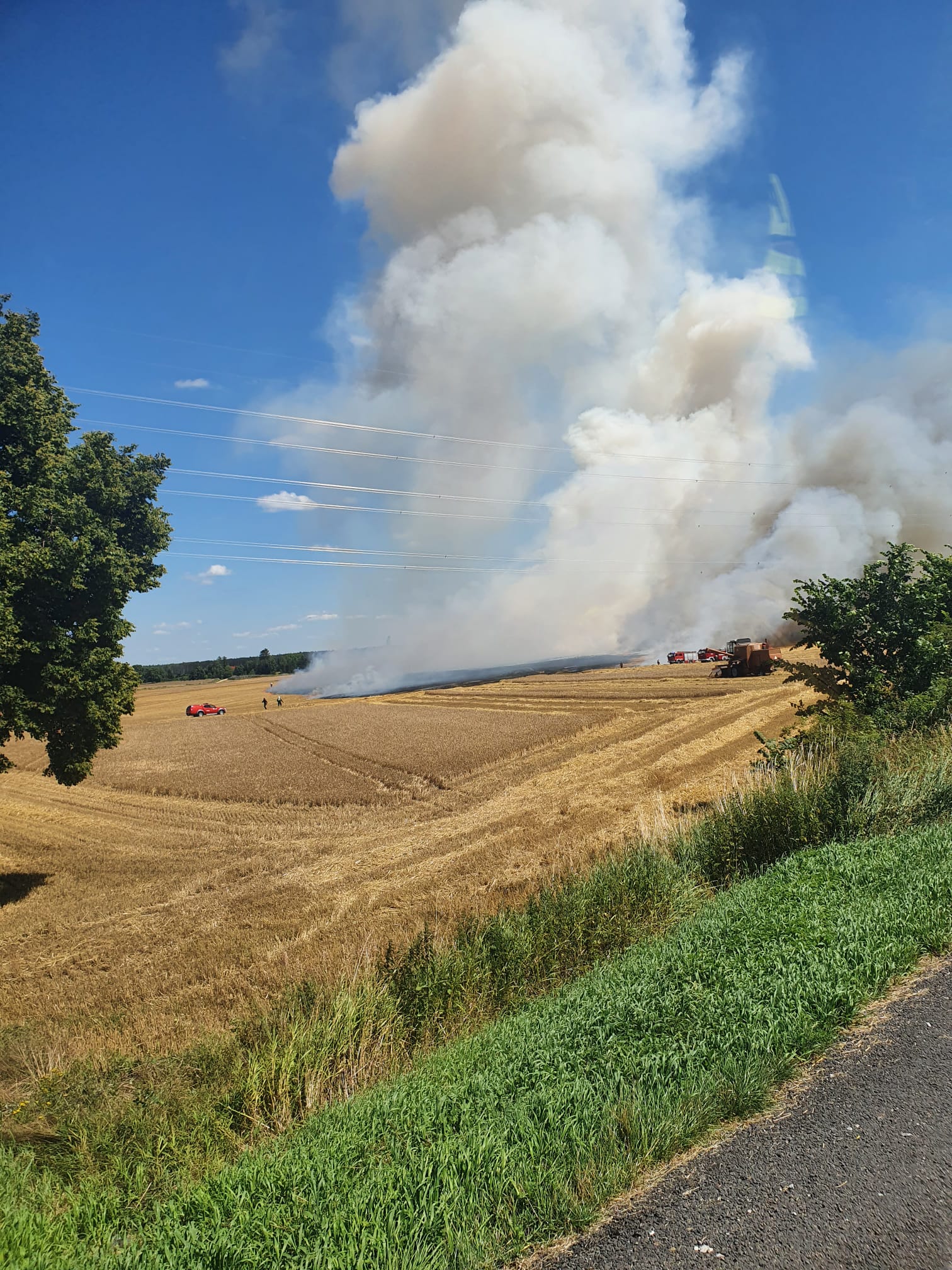 14.07.2022 roku w godzinach o godz. 13:45 w wyniku prowadzonych prac żniwnych doszło do pożaru ścierniska. Panujący silny wiatr spowodował bardzo szybki rozwój