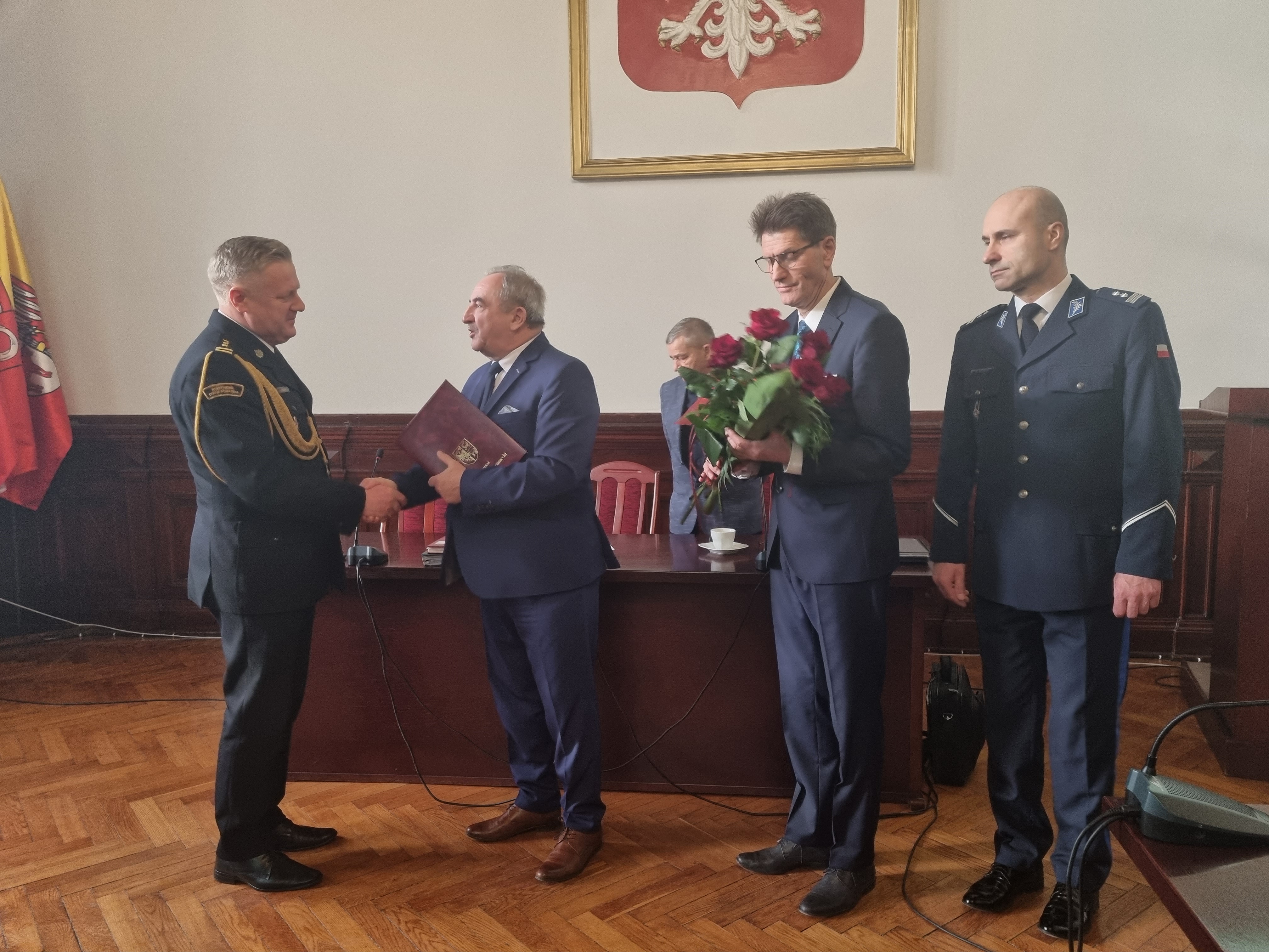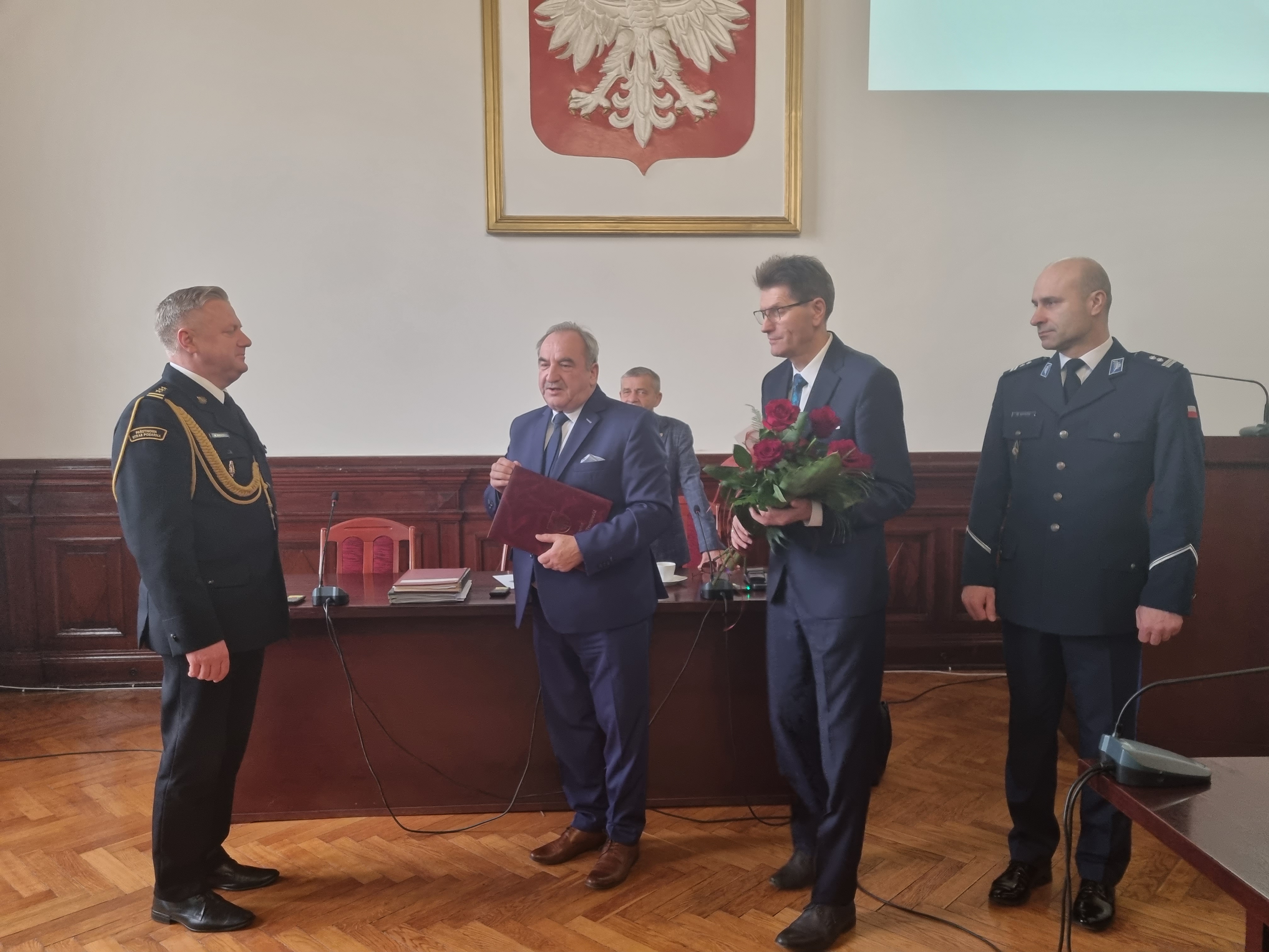 W dniu 29 grudnia 2023 r. podczas sesji Rady Powiatu Starosta Powiatu Feliks Łaszcz wraz Przewodniczącym Rady Powiatu Wiesławem Maszewskim i przy asyście Komendanta Powiatowego Policji mł. insp. Mikołaja Szydzika złożyli podziękowania Komendantowi Powiatowemu Państwowej Straży Pożarnej w Czarnkowie st. bryg. Maciejowi Kubackiemu w związku z zakończeniem przez niego służby, za owocną ponad 7 - mio letnią współpracę na rzecz bezpieczeństwa na terenie powiatu czarnkowsko-trzcianeckiego. W krótkim przemówieniu st. bryg. Maciej Kubacki podziękował za zrozumienie i pomoc finansową w realizacji wykonanych zadań w zakresie zakupu sprzętu pożarniczego i środków ochrony indywidualnej strażaków PSP oraz OSP z terenu powiatu oraz udziału w zadaniach inwestycyjnych dotyczących pojazdów pożarniczych i związanych z obiektami strażnic. Na koniec Komendant Powiatowy Państwowej Straży Pożarnej w Czarnkowie st. bryg. Maciej Kubacki w związku z nadchodzącym nowym 2024 rokiem złożył życzenia zdrowia, pomyślności i skutecznej realizacji powziętych zamierzeń.