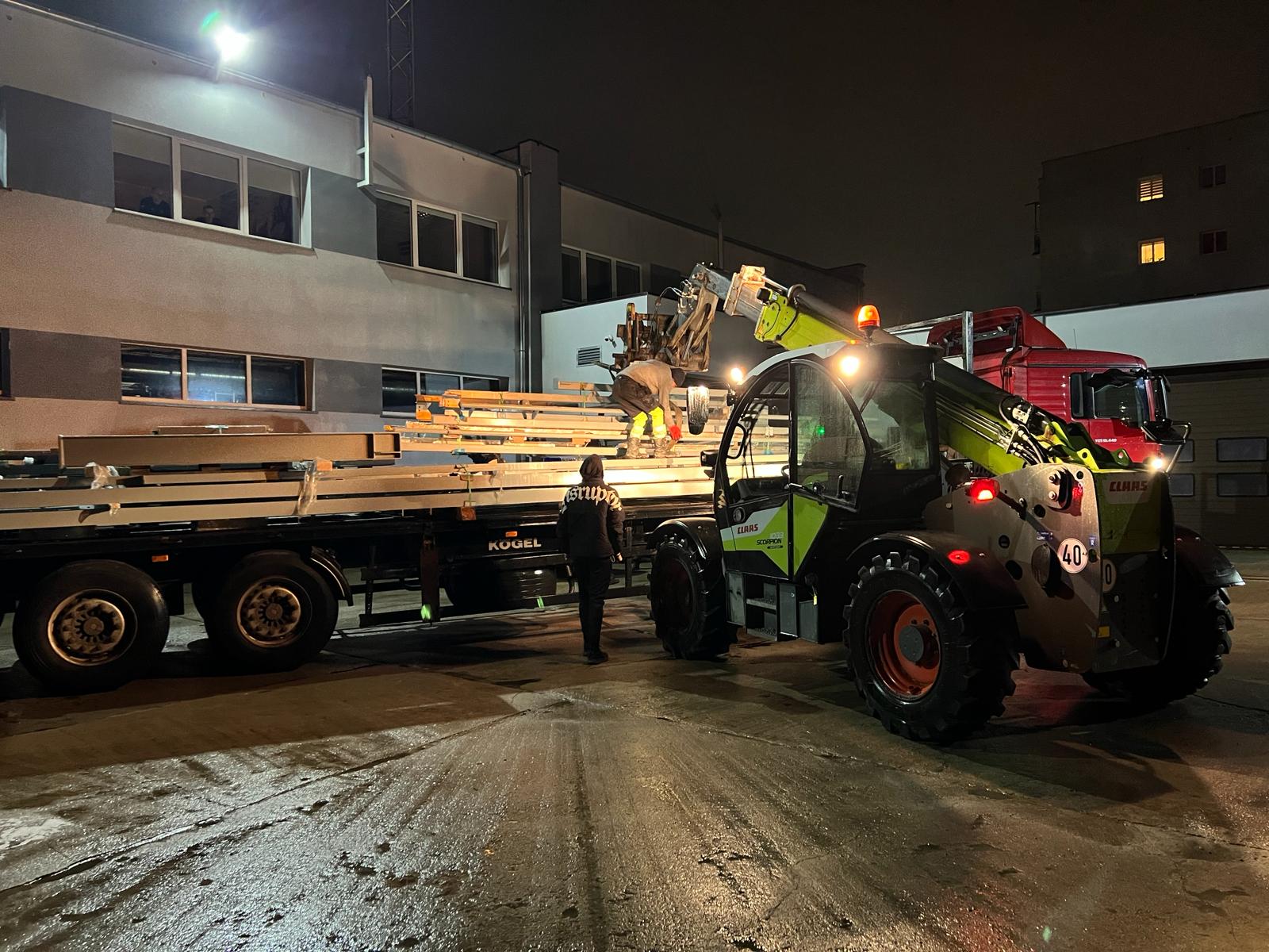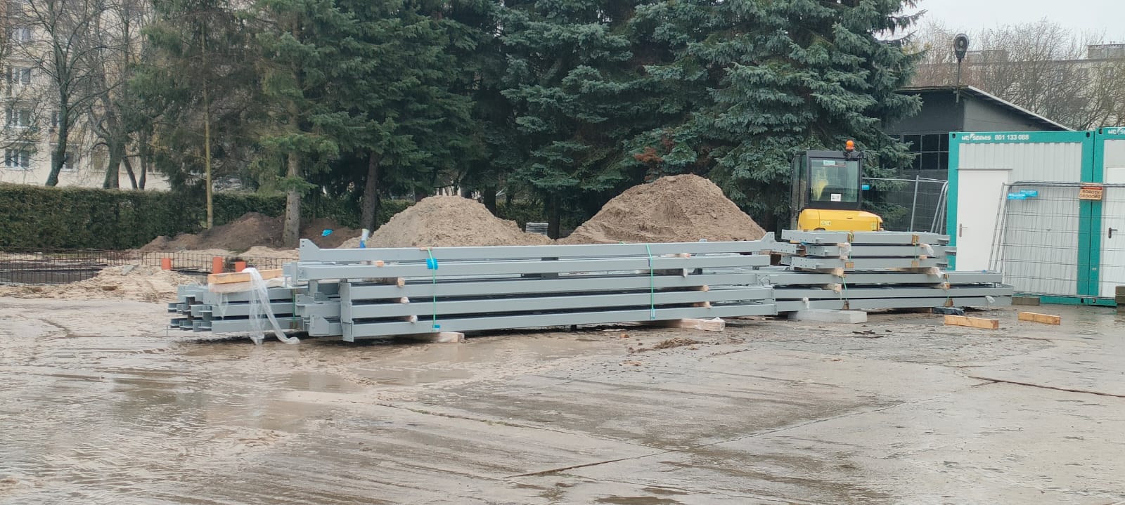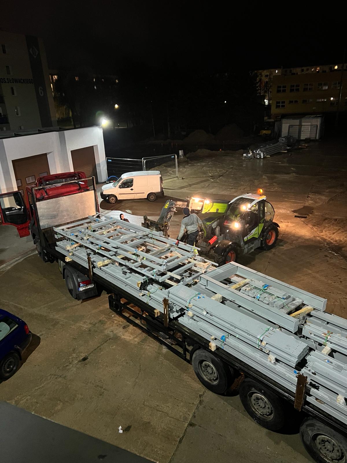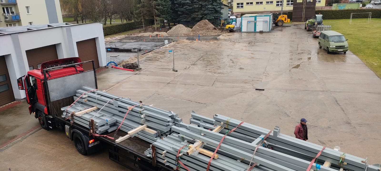 Pomimo niesprzyjających warunków atmosferycznych prace rozbudowy JRG Nr 2 w Trzciance przebiegają zgodnie z harmonogramem. W dniu 22 lutego 2024 r. zostały dostarczane niezbędne stalowe elementy konstrukcji budowlanej. Rozpoczęte już i prowadzone od ubiegłego roku prace budowlane mają na celu zwiększenie ilości miejsc garażowych, prace więc nabierają tempa. Po przygotowaniu szkieletu konstrukcji w halach montażowych wykonawcy, nadchodzi czas na ich montaż na placu budowy. Dotychczas zakres wykonanych prac objął rozbiórkę starych obiektów, przygotowanie gruntu pod budowę oraz wykonanie fundamentów wraz z ich izolacją pionową.