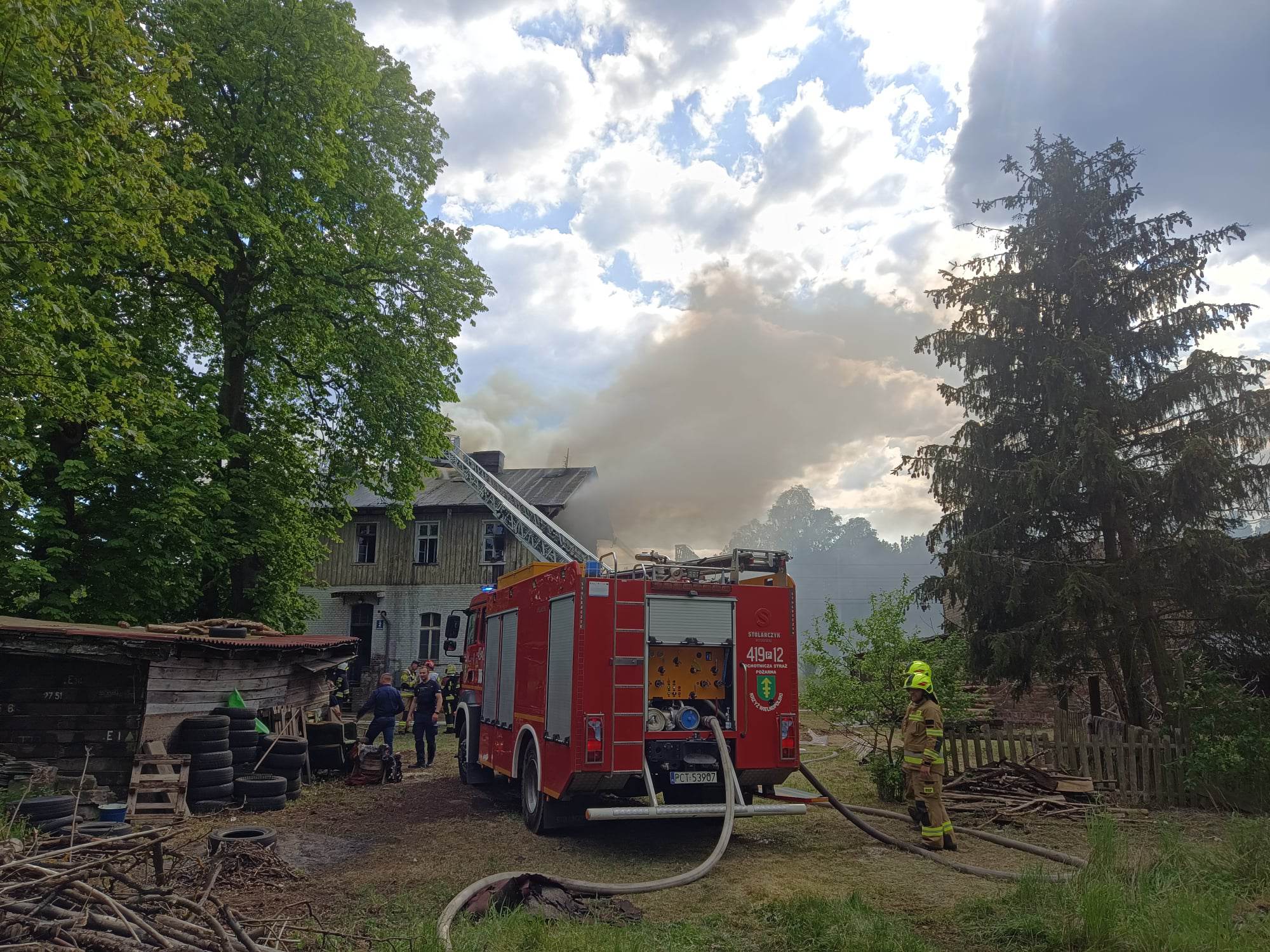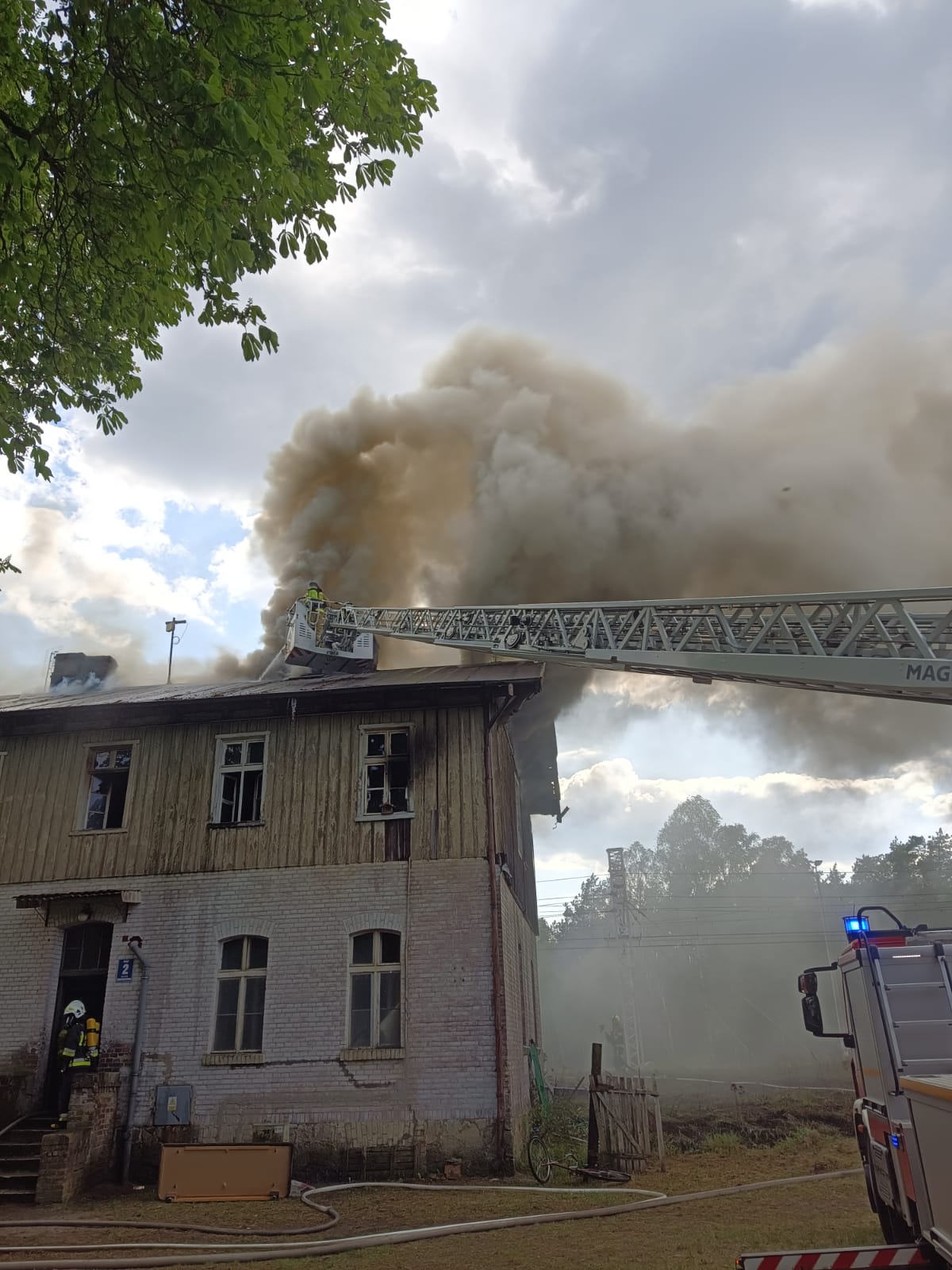 Następnie przed godz. 14 Dyżurny SKKP otrzymał zgłoszenie o pożarze budynku mieszkalnego w miejscowości Drawski Młyn. W wyniku tego zdarzenia 1 osoba została poszkodowana – rozległe oparzenia ciała. Poszkodowany został zabrany do szpitala przez śmigłowiec Lotniczego Pogotowia Ratunkowego. Interwencję gaśniczą podejmowało 65 ratowników w tym Komendant Powiatowy PSP w Czarnkowie. Działania okazały się długotrwałe ze względu na skomplikowaną możliwość dotarcia do źródeł ognia.