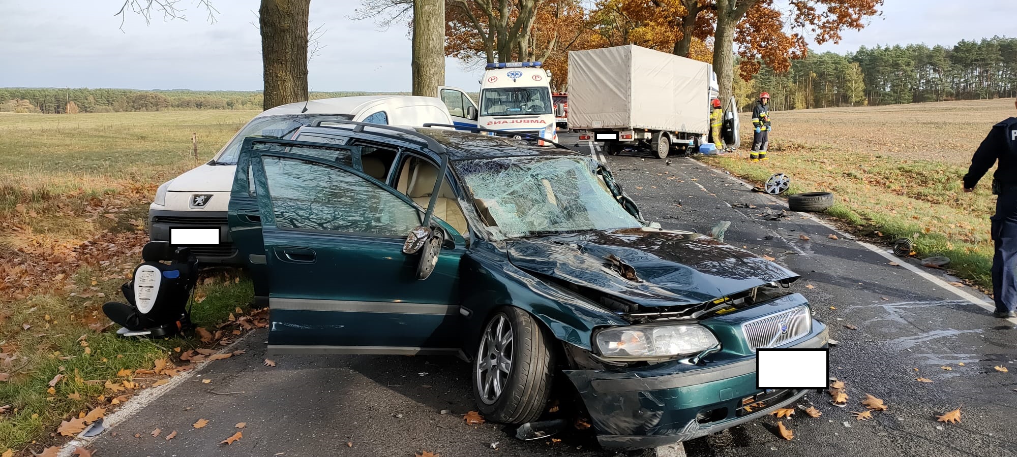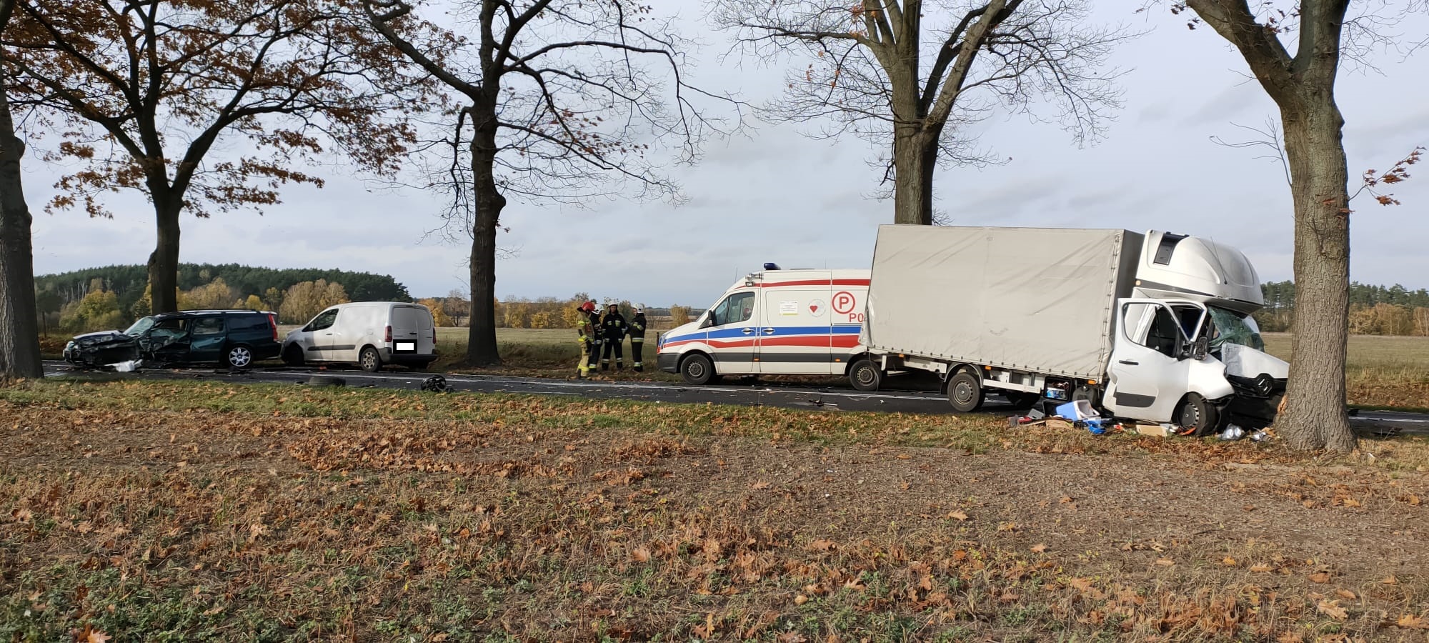 w zdarzeniu najechał na stojące pojazdy i uległ otarciu. Działania ratowników polegały m. in. na zabezpieczeniu terenu działań, odłączenia zasilania w pojazdach oraz kierowania uczestników drogi na wyznaczone objazdy podczas zamknięcia drogi wojewódzkiej.