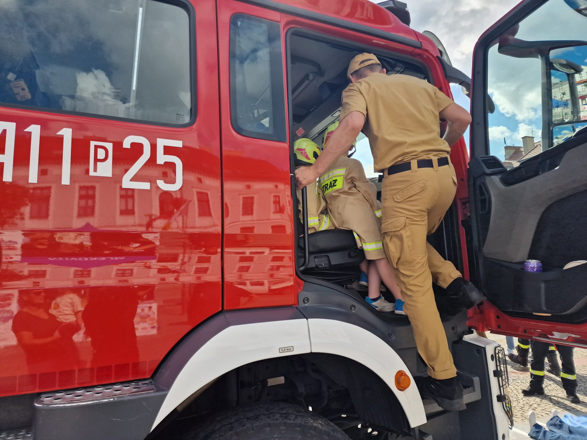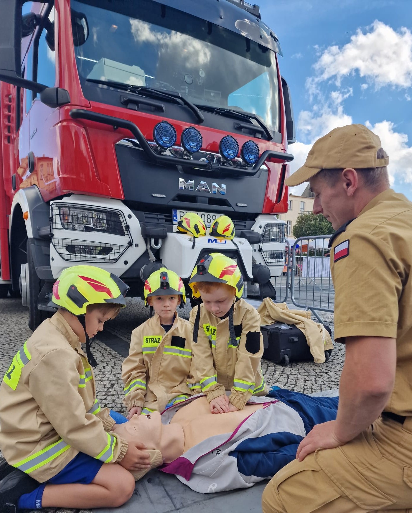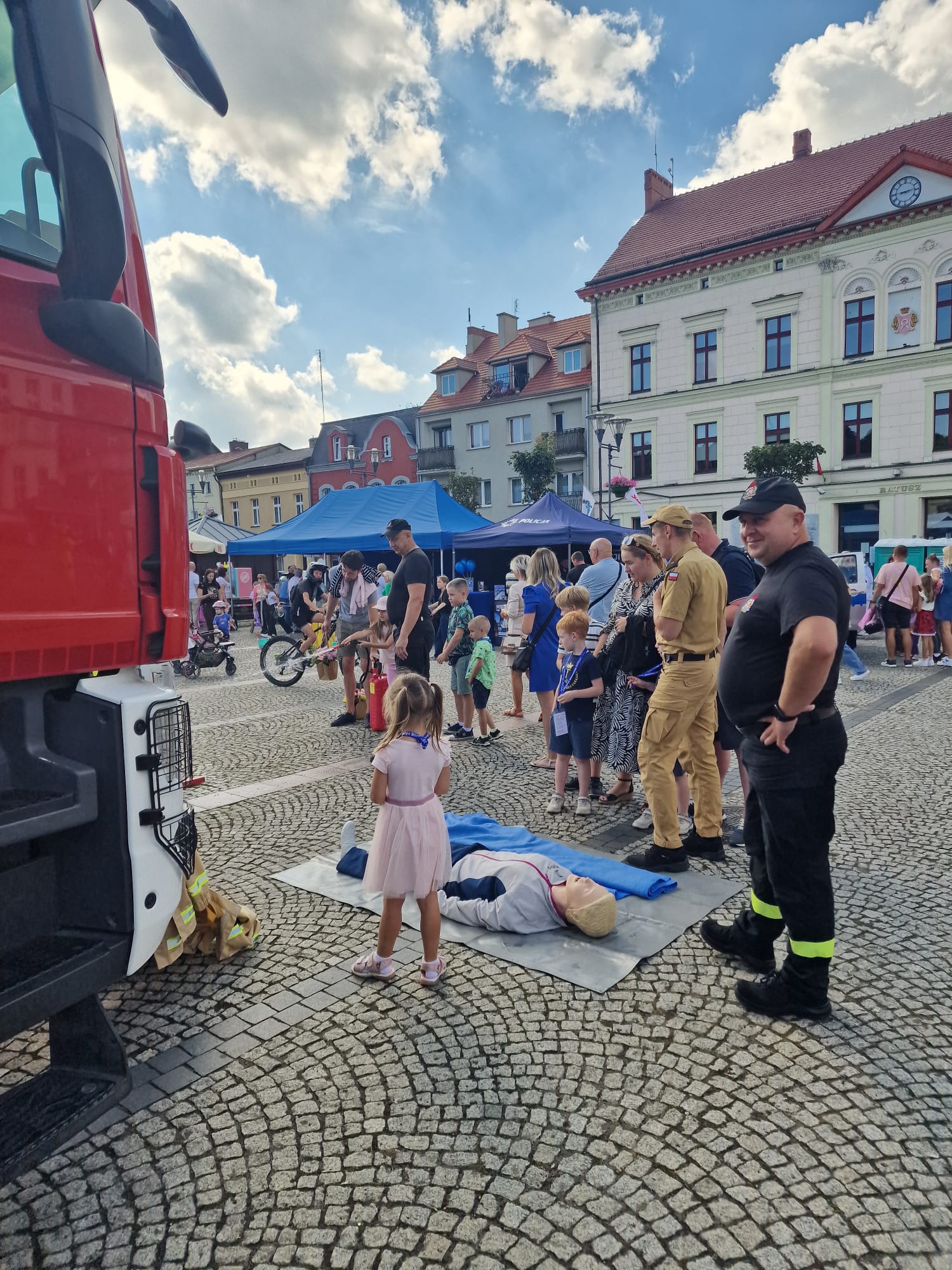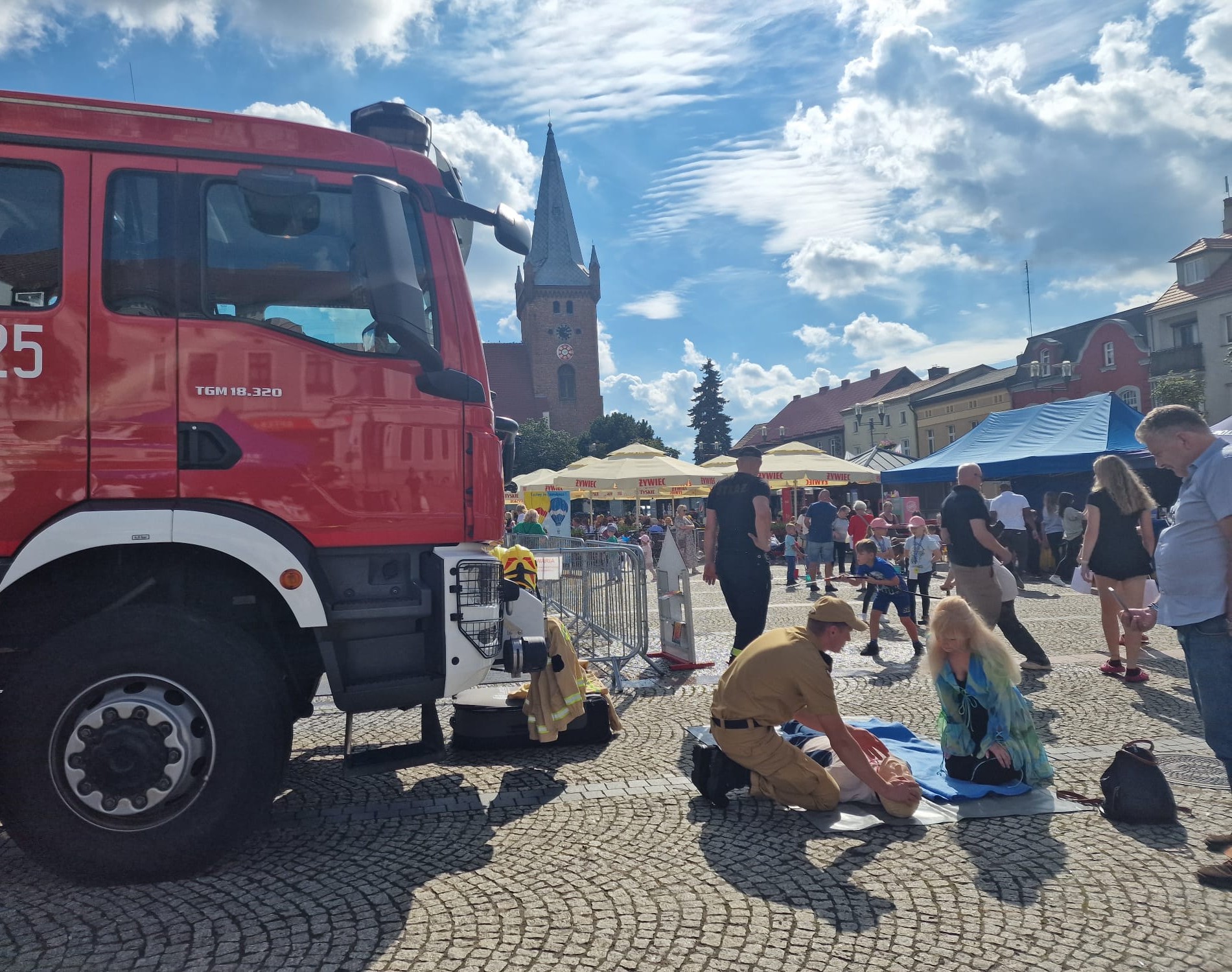 30.08.2025 r., na Placu Wolności w Czarnkowie jak co roku odbył się zorganizowany przez Miejskie Centrum Kultury tzw. „Dzień Spieczonego Bliźniaka”. W tegorocznych przedsięwzięciach aktywny udział wzięli funkcjonariusze z JRG PSP Nr 1 w Czarnkowie. Strażacy przygotowali dla uczestników wydarzenia punkt edukacyjno-pokazowy. Na profilaktycznym stoisku strażackim można było zobaczyć z bliska profesjonalny sprzęt znajdujący się na wyposażeniu samochodów ratowniczo-gaśniczych. Dzieci mogły wsiąść do środka wozu, przymierzyć hełmy oraz zapoznać się ze sprzętem, który strażacy na co dzień wykorzystują w trakcie działań ratowniczo – gaśniczych. Podczas takich spotkań ratownicy nie tylko dzielą się swoją wiedzą, ale budują zaufanie społeczne i pokazują, jak zostać przewodnikami w zakresie codziennego bezpieczeństwa. Dodatkową atrakcją były także pokazy kwalifikowanej pierwszej pomocy, podczas których strażacy zaprezentowali techniki udzielania pomocy ewentualnym osobom poszkodowanym. Mieszkańcy mogli zobaczyć również m.in. jak prawidłowo prowadzić resuscytację krążeniowo oddechową, jak korzystać z defibrylatora AED oraz jak reagować w sytuacjach nagłego zagrożenia życia lub zdrowia. Wszystkim zainteresowanym osobom strażacy udzielili informacji na temat codziennej pracy strażaka, a także zwrócili uwagę na to, jak postępować w razie zagrożenia, jak wezwać pomoc oraz co zrobić, aby uniknąć niebezpiecznych sytuacji. Obecność strażaków podkreśliła, jak ważna jest ich rola w życiu lokalnej społeczności – nie tylko podczas akcji ratowniczych, ale także w edukacji mieszkańców i budowaniu świadomości najmłodszych.
