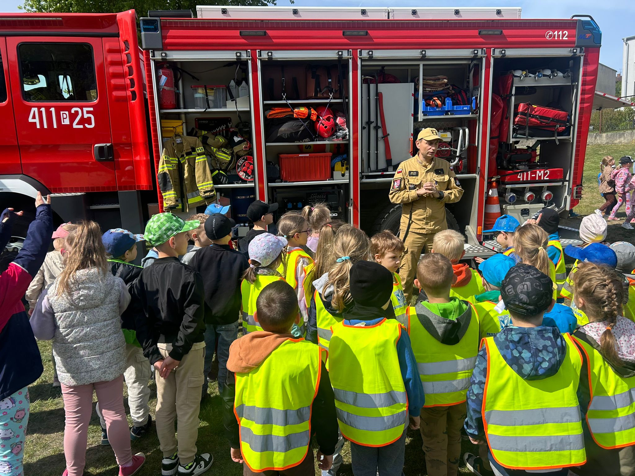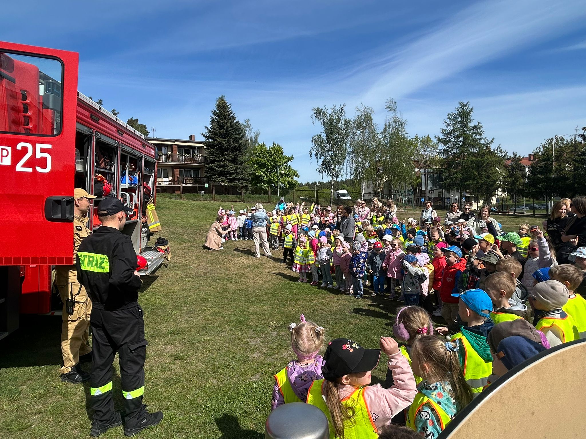 7 - 8 maja 2025 roku strażacy z Komendy Powiatowej Państwowej Straży Pożarnej w Czarnkowie odwiedzili Przedszkole nr 1 „Bajkowy Świat” w Czarnkowie. Funkcjonariusze rozpoczęli wizytę od krótkiej prelekcji na temat codziennej pracy strażaka, a następnie zwrócili uwagę na to, jak postępować w razie zagrożenia, jak wezwać pomoc oraz co zrobić, aby uniknąć niebezpiecznych sytuacji w okresie letnim. Największą atrakcją dla dzieci było oglądanie sprzętu oraz wozów strażackich. Na koniec podopieczni przedszkola mogli przymierzyć ubranie specjalne wykorzystywane w działaniach ratowniczo-gaśniczych. W ramach podziękowania strażacy otrzymali od dzieci laurki oraz życzenia z okazji Dnia Strażaka. Po powrocie do strażnicy czekała na nich kolejna grupa — tym razem byli to uczniowie z Technikum Leśnego w Goraju, którzy odwiedzili strażaków z Komendy Powiatowej Państwowej Straży Pożarnej w Czarnkowie. Celem wycieczki było spotkanie z funkcjonariuszami straży pożarnej, zrozumienie specyfiki ich pracy oraz zapoznanie się ze sprzętem, jakim straż dysponuje na co dzień. Uczniowie dowiedzieli się również, na czym polega praca Zintegrowanego Stanowiska Alarmowo-Dyspozycyjnego Państwowej Straży Pożarnej i Lasów Państwowych.