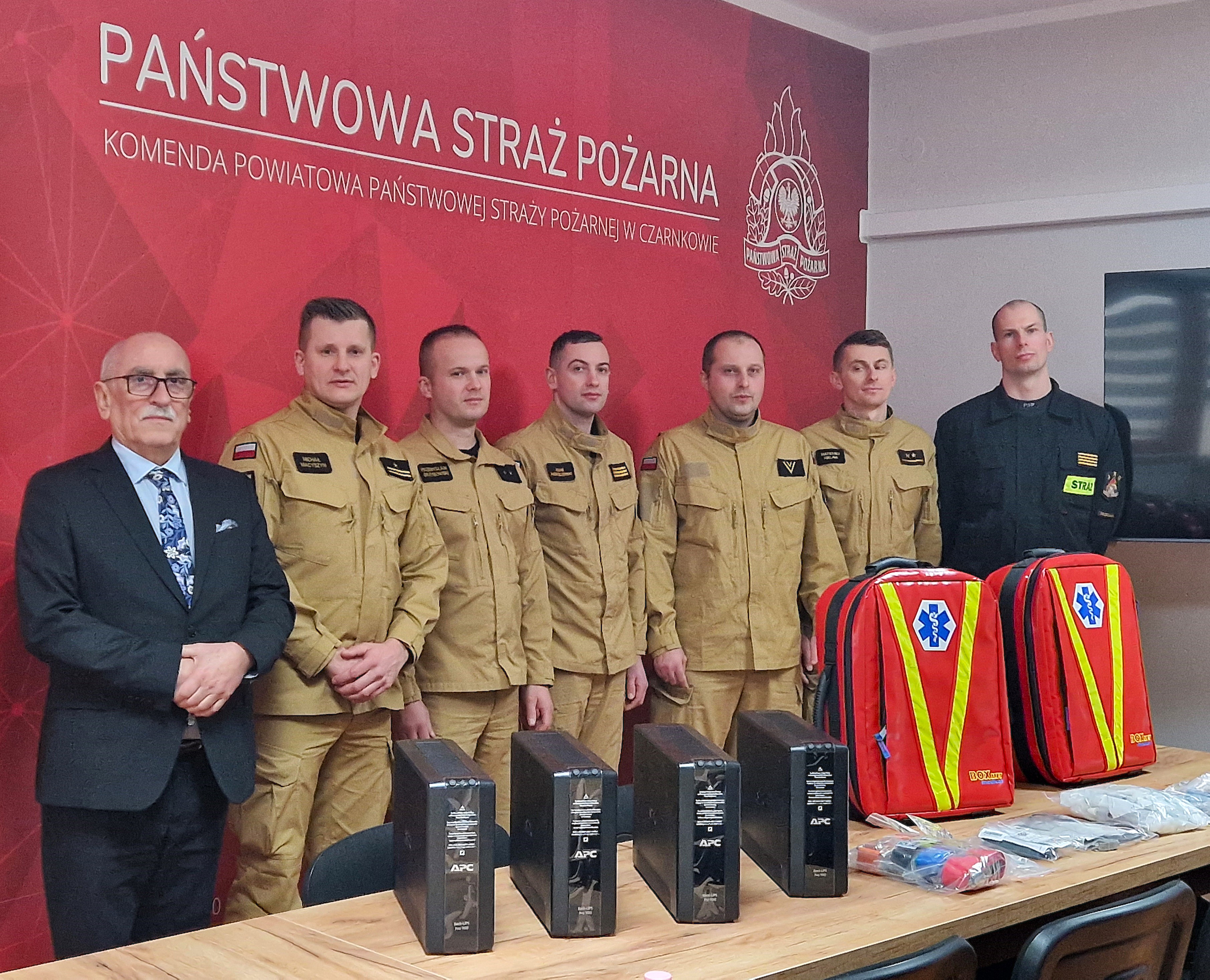 W dniu 14 stycznia 2025 r. na terenie Komendy Powiatowej Państwowej Straży Pożarnej w Czarnkowie, Starosta Czarnkowsko-Trzcianecki, Pan Grzegorz Bogacz, przekazał dla funkcjonariuszy Państwowej Straży Pożarnej z Trzcianki i Czarnkowa sprzęt medyczny oraz urządzenia wspierające infrastrukturę systemu SWD-ST (system wspomagania decyzji).