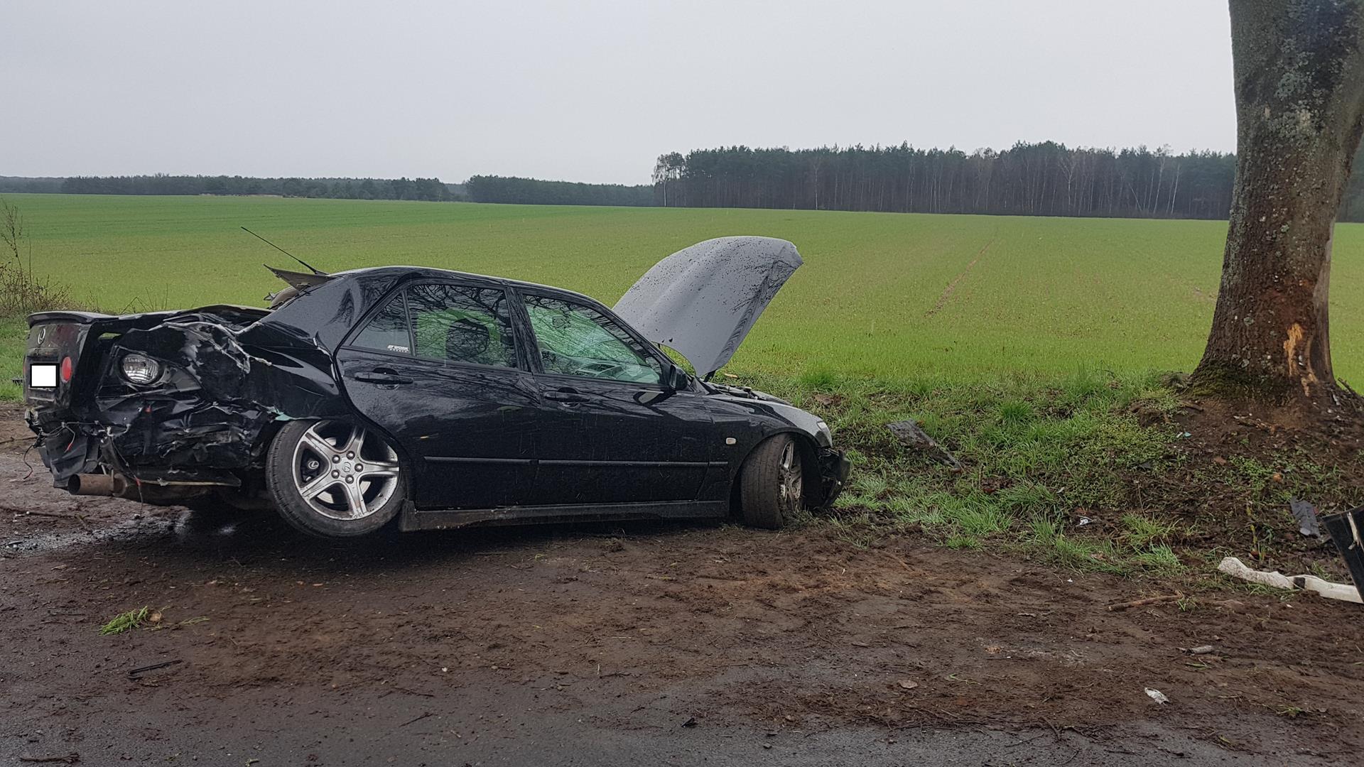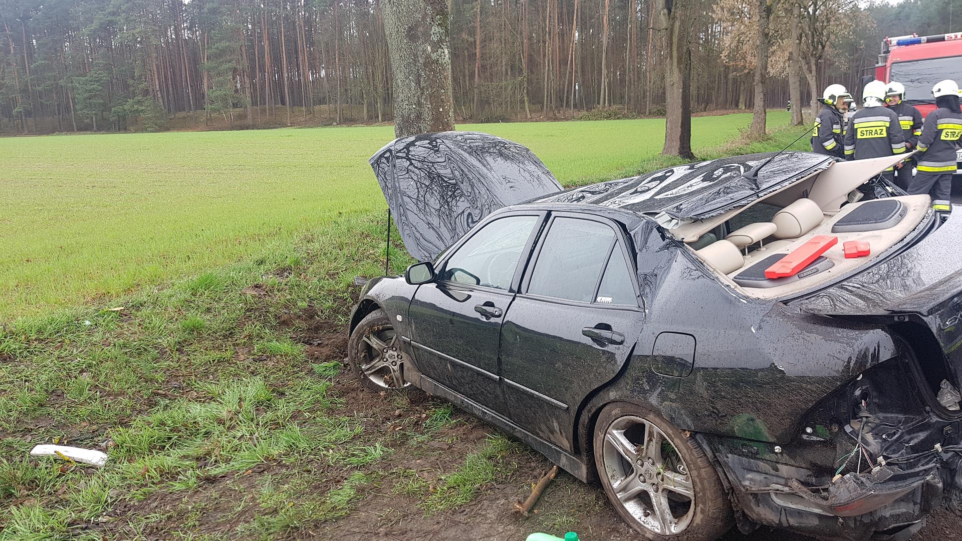 SAMOCHÓD OSOBOWY UDERZYŁ W DRZEWO