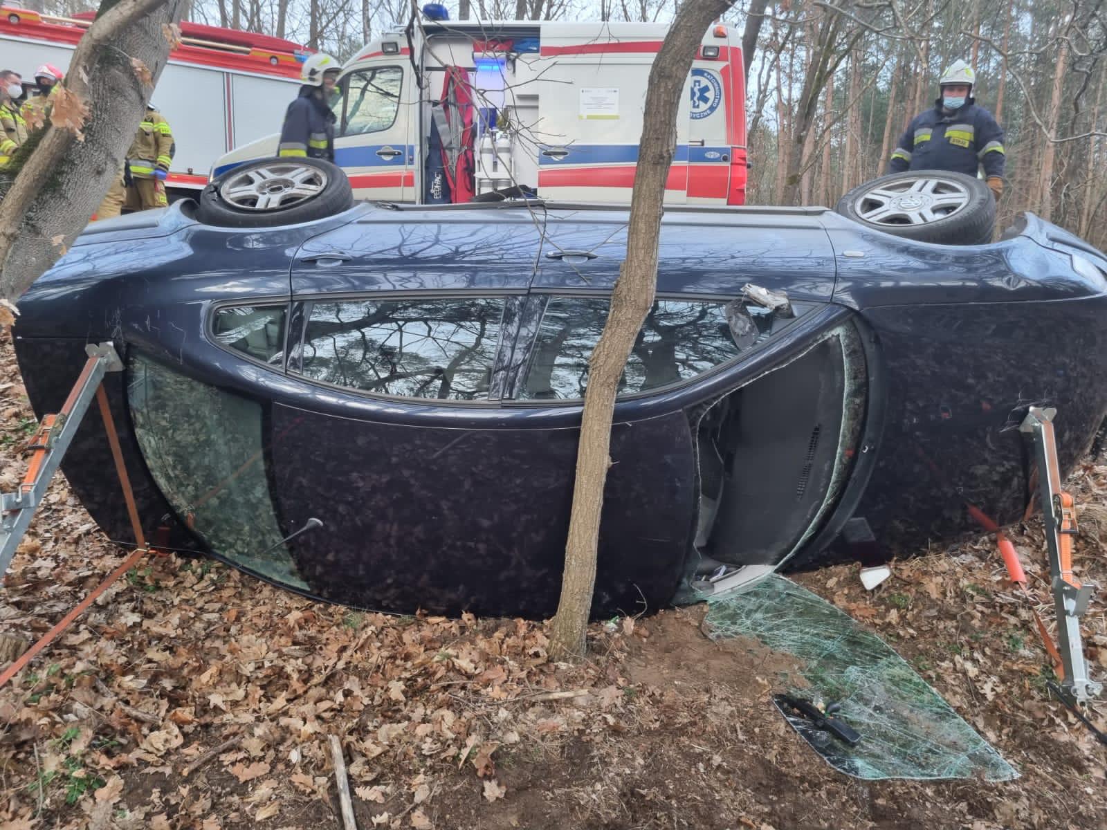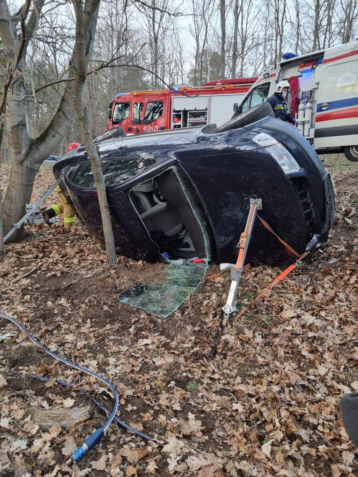 SAMOCHÓD OSOBOWY W ROWIE NA DRODZE WOJEWÓDZKIEJ 177.