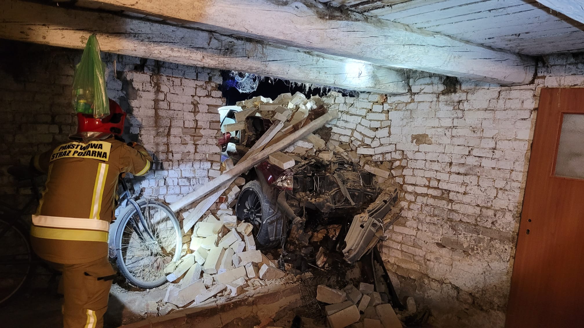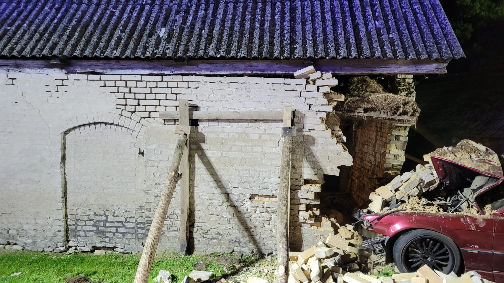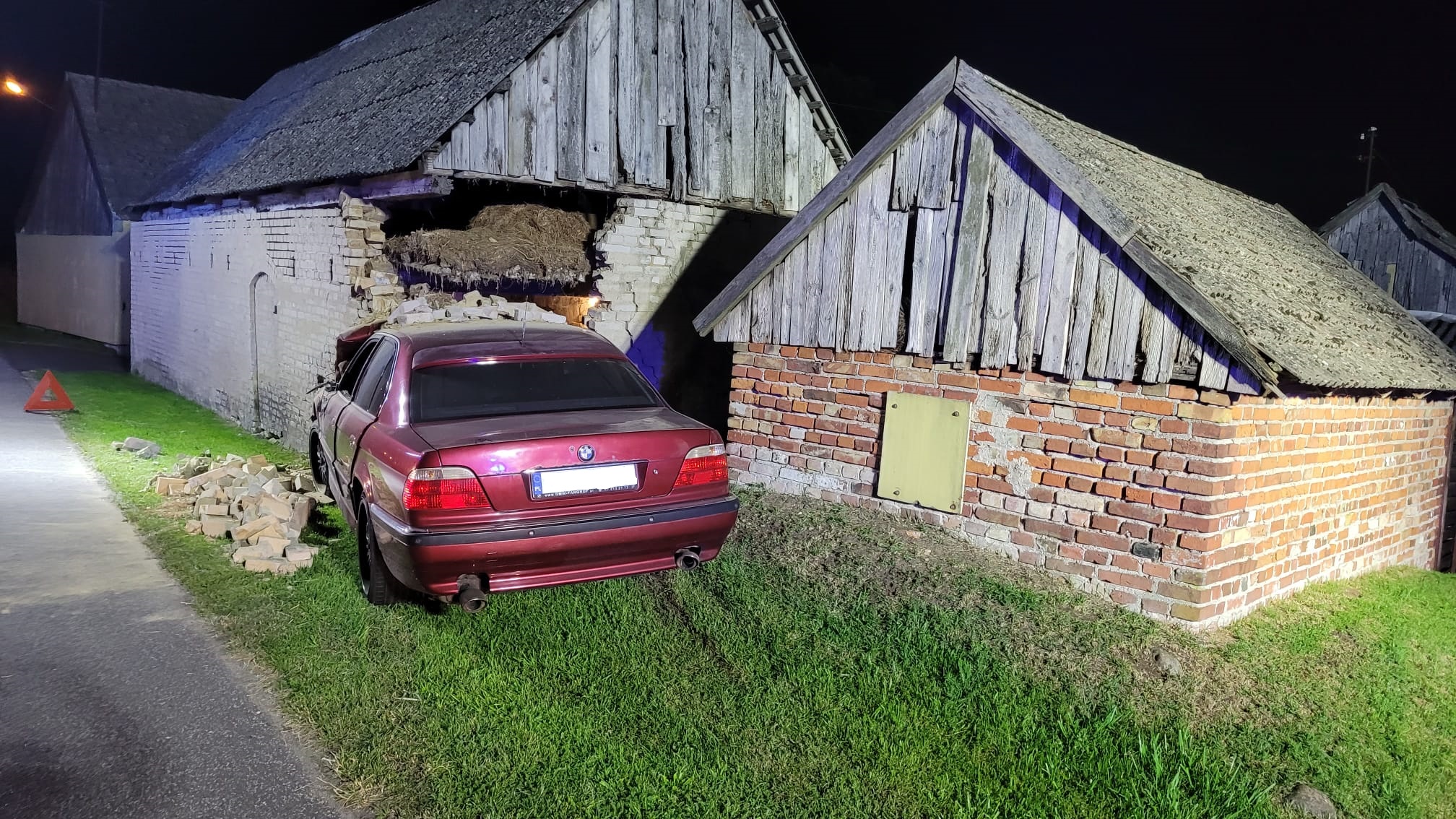SAMOCHÓD OSOBOWY WJECHAŁ W BUDYNEK GOSPODARCZY