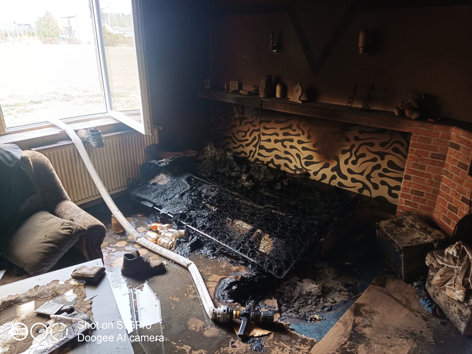 Po przyjeździe na miejsce zdarzenia pierwszego zastępu, zastano pożar w jednym pomieszczeń w budynku mieszkalnego.