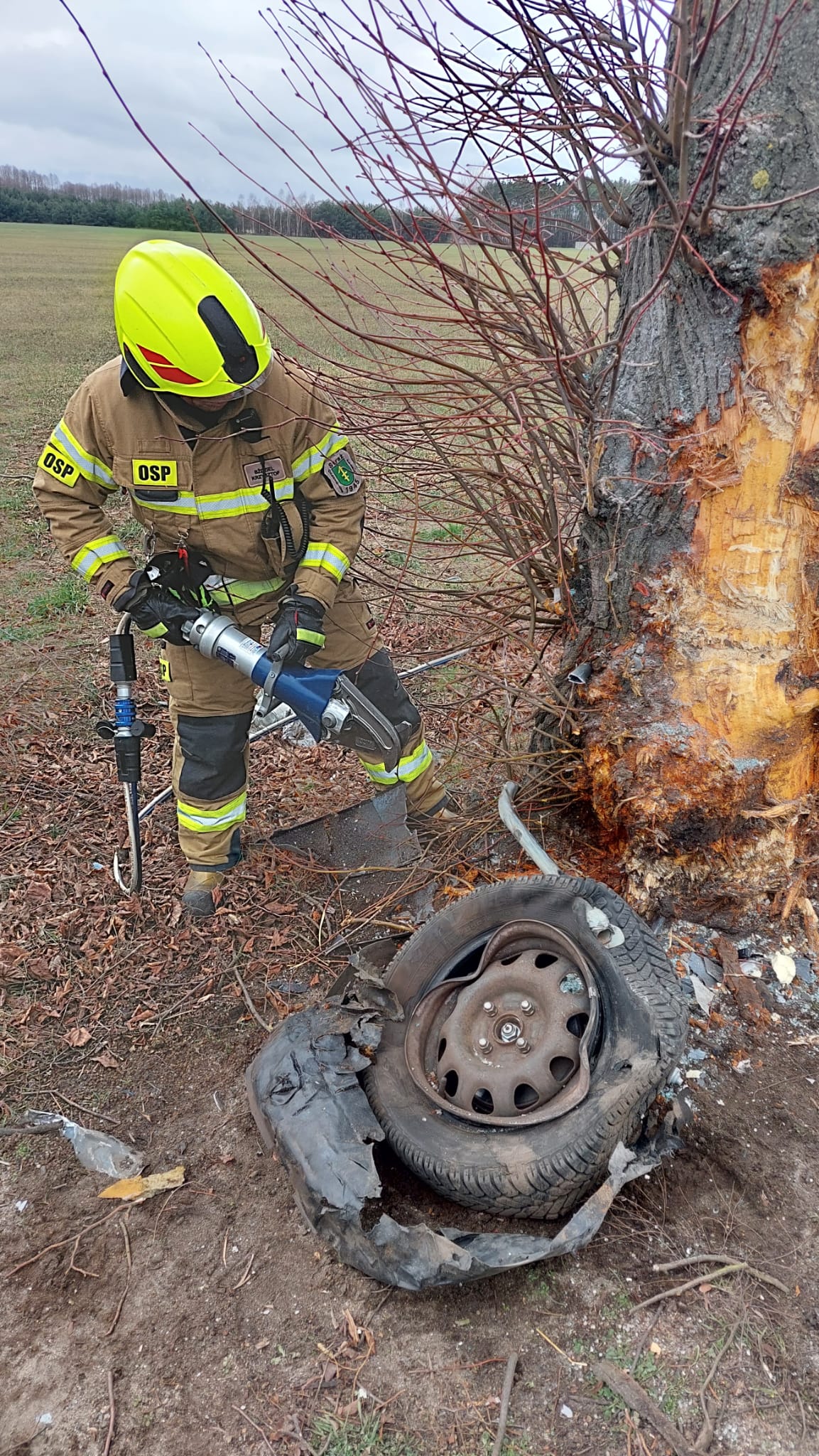 w Czarnkowie przyjęło zgłoszenie o wypadku samochodowym, który miał miejsce na drodze wojewódzkiej nr 174 na trasie Huta Szklana - Wieleń. Do zdarzenia zadysponowano zastępy z JRG Trzcianka, dwa zastępy z OSP KSRG Krzyż Wielkopolski oraz dwa zastępy OSP KSRG Kuźnica Żelichowska. Po dojeździe na miejsce zdarzenia zastano samochód, który po uderzeniu w przydrożne drzewo leżał na dachu blokując drogę w obu kierunkach. Działania zastępów polegały na zabezpieczeniu miejsca zdarzenia, następnie ratownicy przy pomocy narzędzi hydraulicznych utworzyli dostęp, aby ewakuować poszkodowanego kierowcę i jednocześnie przekazać zespołowi ratownictwa medycznego. Zespół ratownictwa medycznego ze względu na liczne ciężkie obrażenia zewnętrzne odstąpił od medycznych czynności ratunkowych. Działania zastępów polegały na kierowaniu ruchem, usunięciu płynów eksploatacyjnych przy użyciu sorbentów oraz odłączeniu zasilania. W działaniach trwających blisko 4 godziny udział brały zastępy JRG Trzcianka, OSP KSRG Krzyż Wielkopolski, OSP KSRG Kuźnica Żelichowska, Policja, Prokurator oraz Zespół Ratownictwa Medycznego.