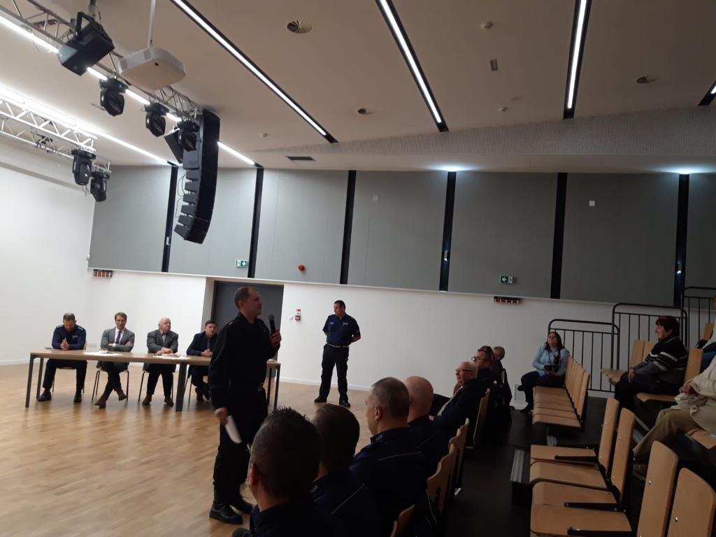 Reprezentujący KP PSP w Czarnkowie funkcjonariusz poruszył tematy zagrożeń związanych z nadchodzącym sezonem grzewczym oraz tlenkiem węgla. W swej wypowiedzi zachęcał seniorów do zainstalowania czujek tlenku węgla w swoich domostwach.