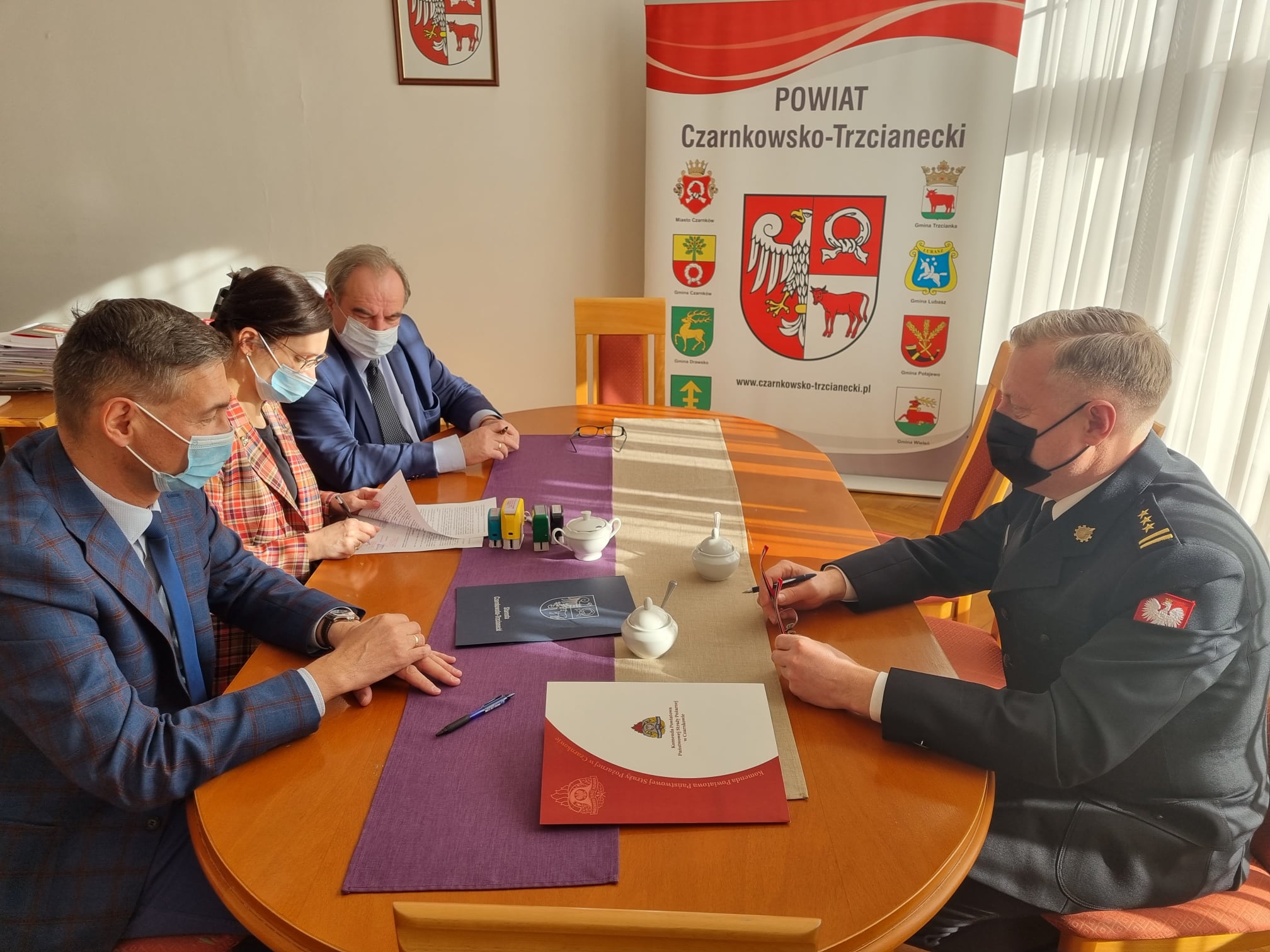 Komendant Powiatowy Państwowej Straży Pożarnej w Czarnkowie st. bryg. Maciej Kubacki podpisał umowy w ramach Funduszu Wsparcia Państwowej Straży Pożarnej, dotyczące dofinansowania zakupu ciężkiego samochodu ratowniczo-gaśniczego. Umowy zawarto z następującymi podmiotami: Powiat Czarnkowsko-Trzcianecki, Gmina Miasta Czarnków, Gmina Czarnków, Gmina Krzyż Wielkopolski i Hydro Extrusion Poland sp. z o.o. z Trzcianki. Łączna wartość podpisanych umów opiewa na kwotę 400 000 zł (wartość całkowita pojazdu wynosi 1 178 340 zł).