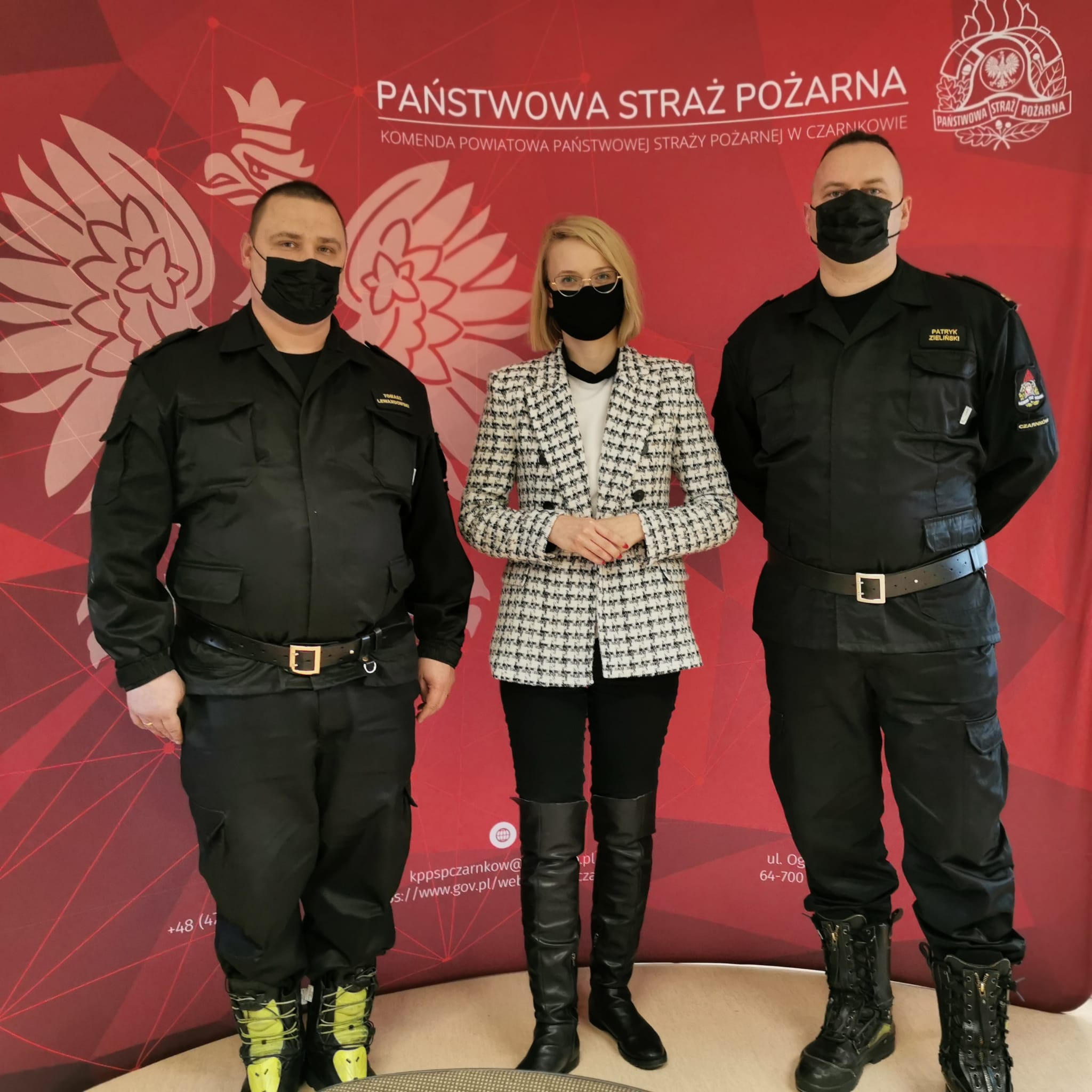 W dniu 19.01.2022 roku w Komendzie Powiatowej Państwowej Straży Pożarnej w Czarnkowie odbyła się wizyta robocza z udziałem Pani Marty Kubiak Poseł na Sejm Rzeczpospolitej Polskiej. Zastępca Komendanta Powiatowego PSP w Czarnkowie mł. bryg. Patryk Zieliński omówił pokrótce obecnie realizowane zadania oraz plany inwestycyjne na najbliższą przyszłość. Poruszono również kwestię Ochotniczych Straży Pożarnych m. in. sukcesywnego doposażania jednostek w niezbędny sprzęt oraz Ustawy o ochotniczych strażach pożarnych.