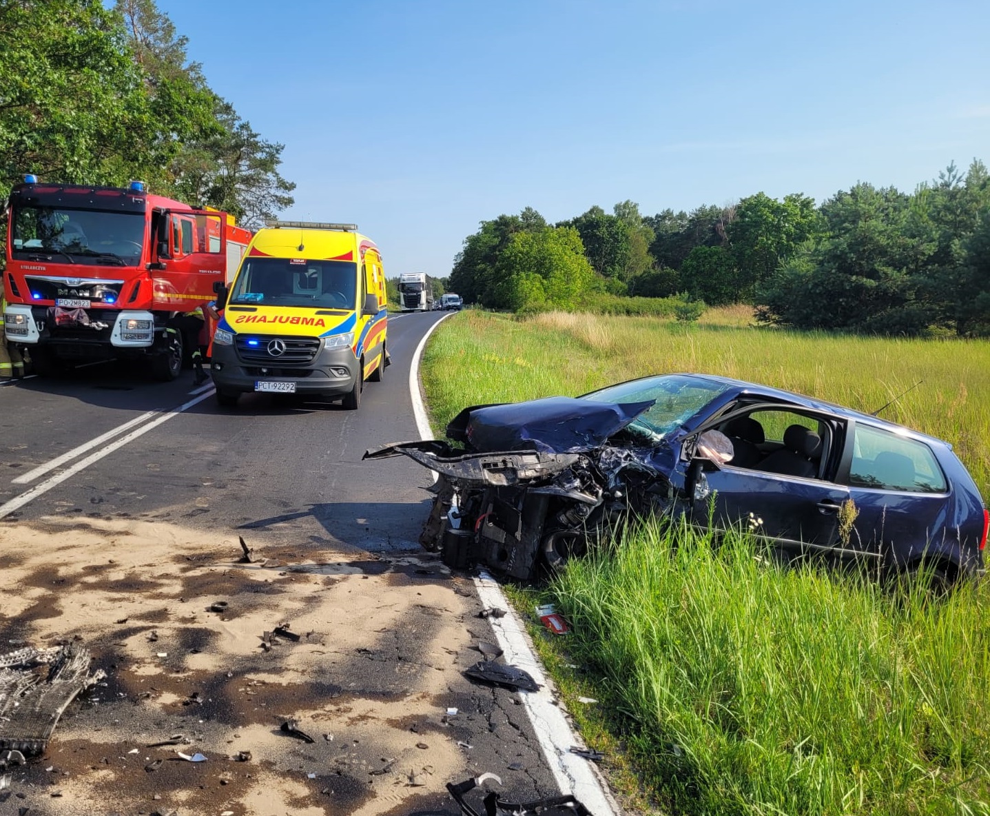 Do zdarzenia zadysponowano jednostki ochrony przeciwpożarowej z JRG Czarnków. Po dojeździe na miejsce zdarzenia zastano rozbite samochody osobowe marki Volkswagen oraz Volvo. Trzy osoby uczestniczące w zdarzeniu opuściły pojazdy o własnych siłach. Całkowicie zablokowana była droga wojewódzka nr DW178.