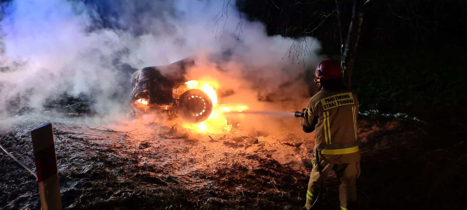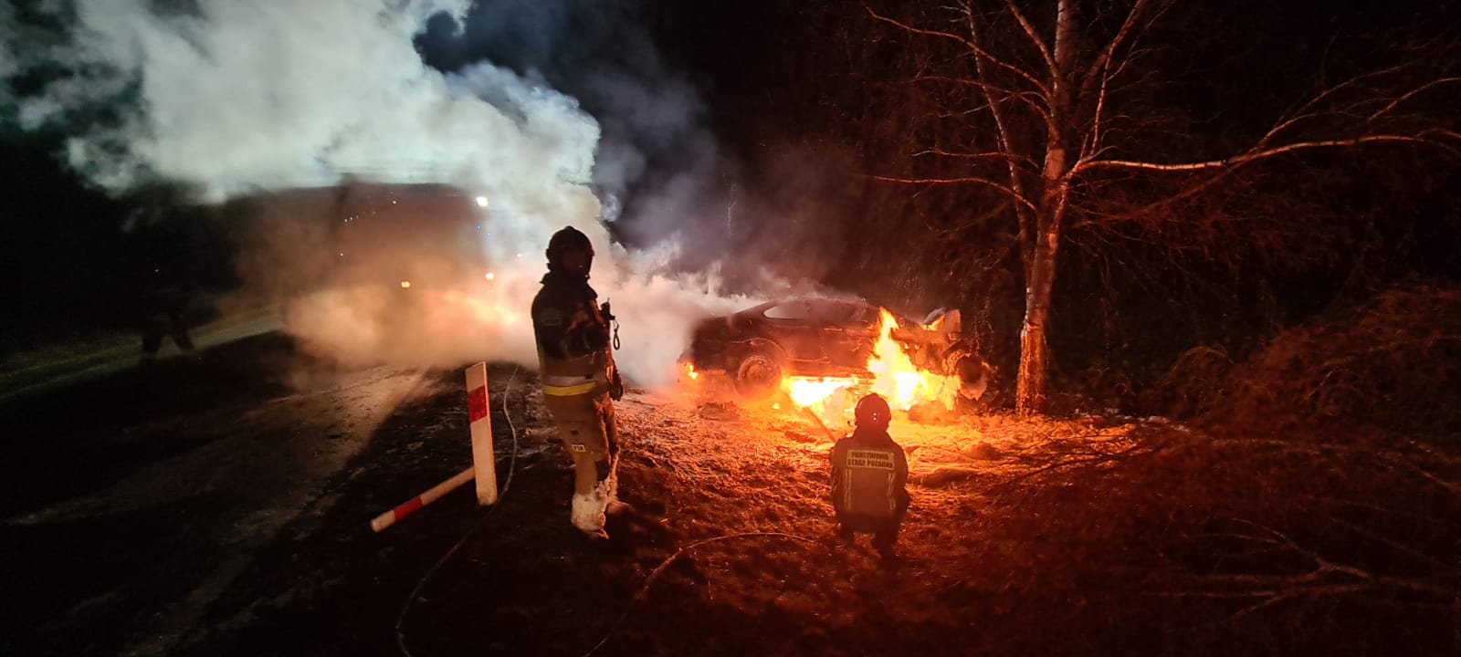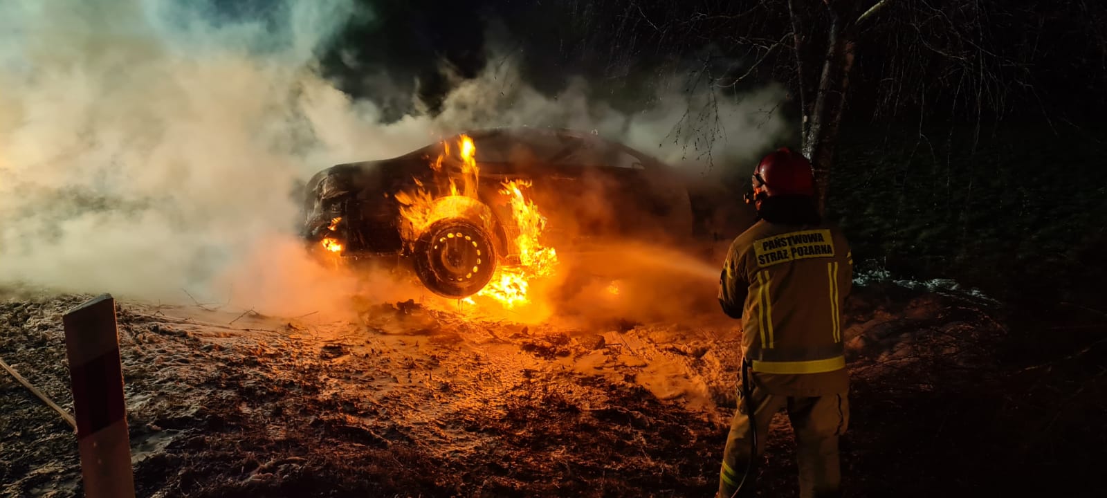 Kilka minut po północy 16.01.22r. do SKKP w Czarnkowie wpłynęło zgłoszenie o wypadku samochodu osobowego na trasie Czarnków – Kużnica Czarnkowska. Na miejsce wysłano dwa zastępy z JRG Czarnków. Po dotarciu na miejsce zdarzenia zastano samochód osobowy po uderzeniu w drzewo. W wyniku zderzenia pojazd zapalił się. Kierowca sam opuścił pojazd przed przyjazdem zastępów straży pożarnej. Działania polegały na zabezpieczeniu miejsca zdarzenia oraz ugaszeniu pojazdu przez podanie jednego prądu piany ciężkiej. Po ugaszeniu pożaru pojazd został zabrany przez pomoc drogową.